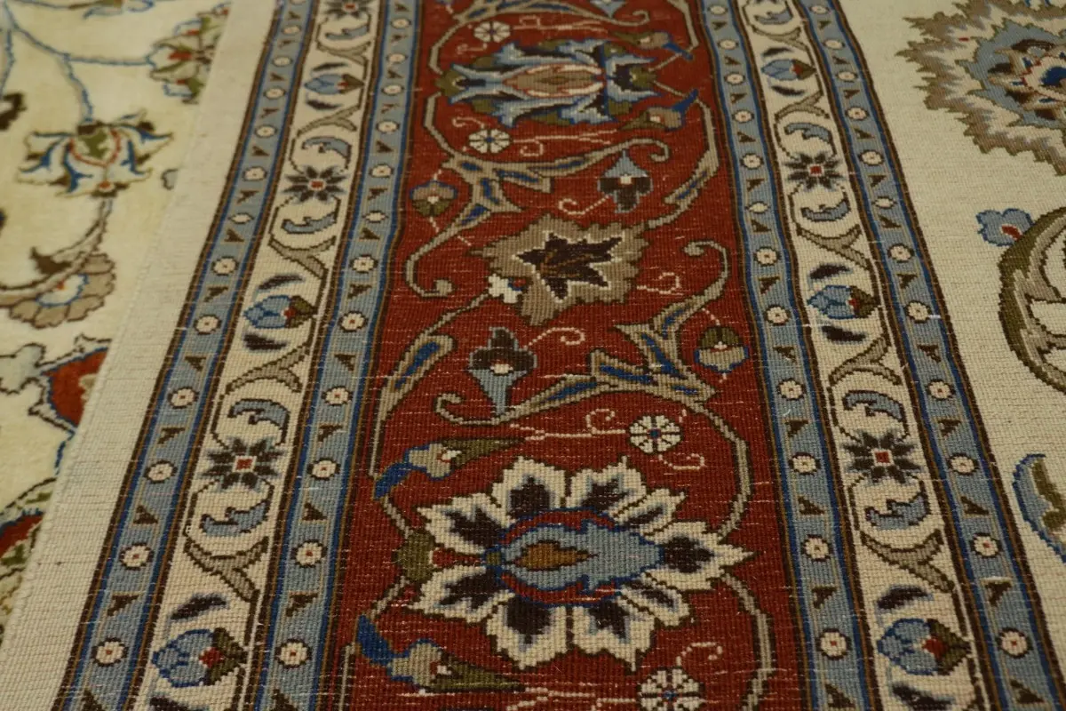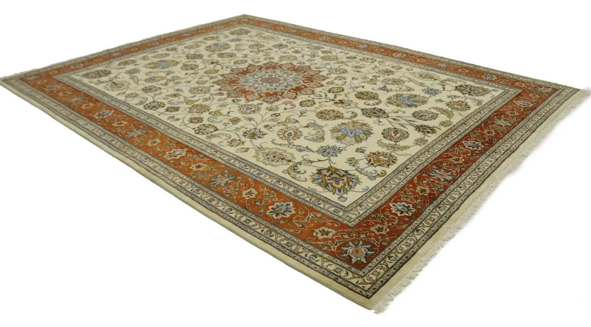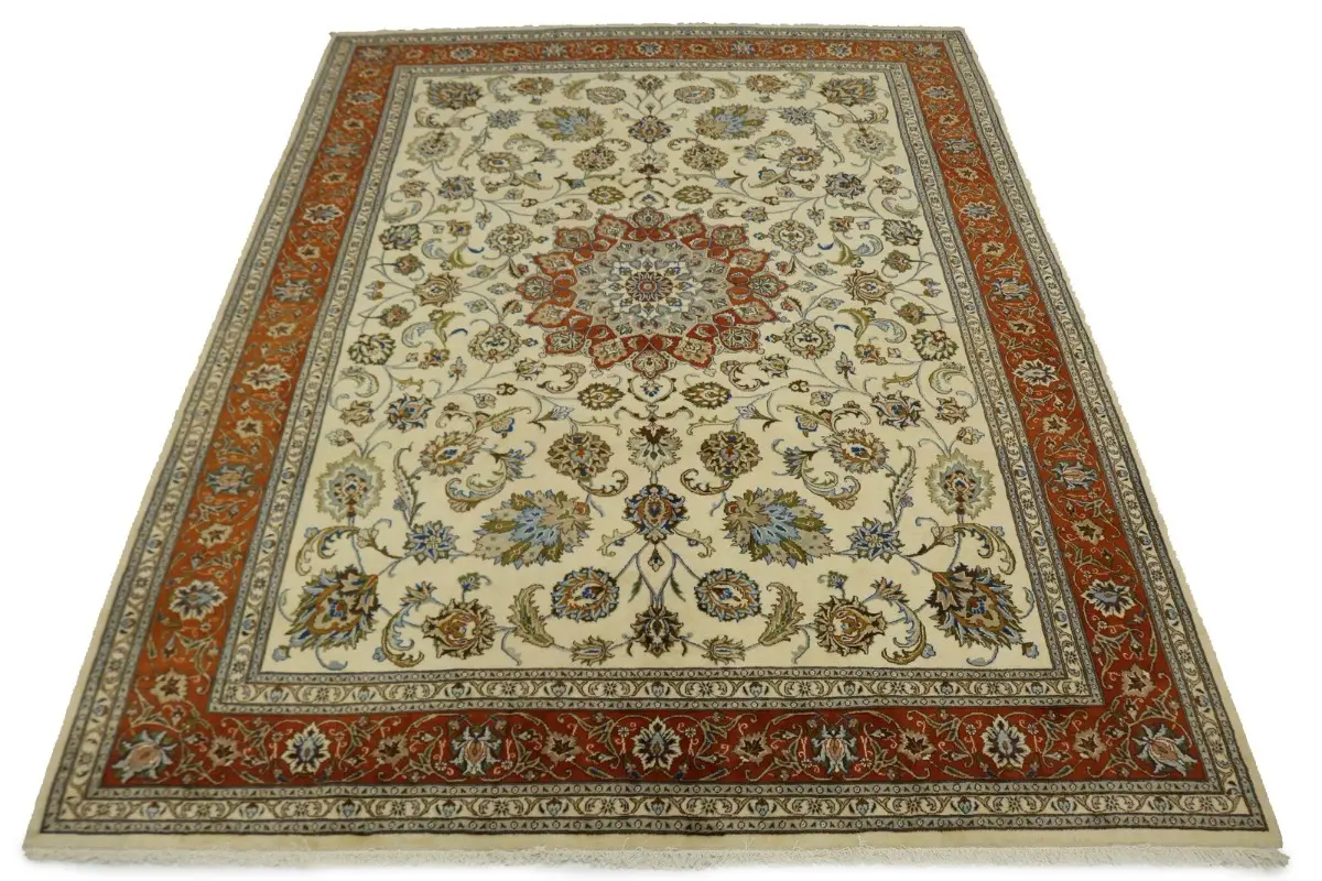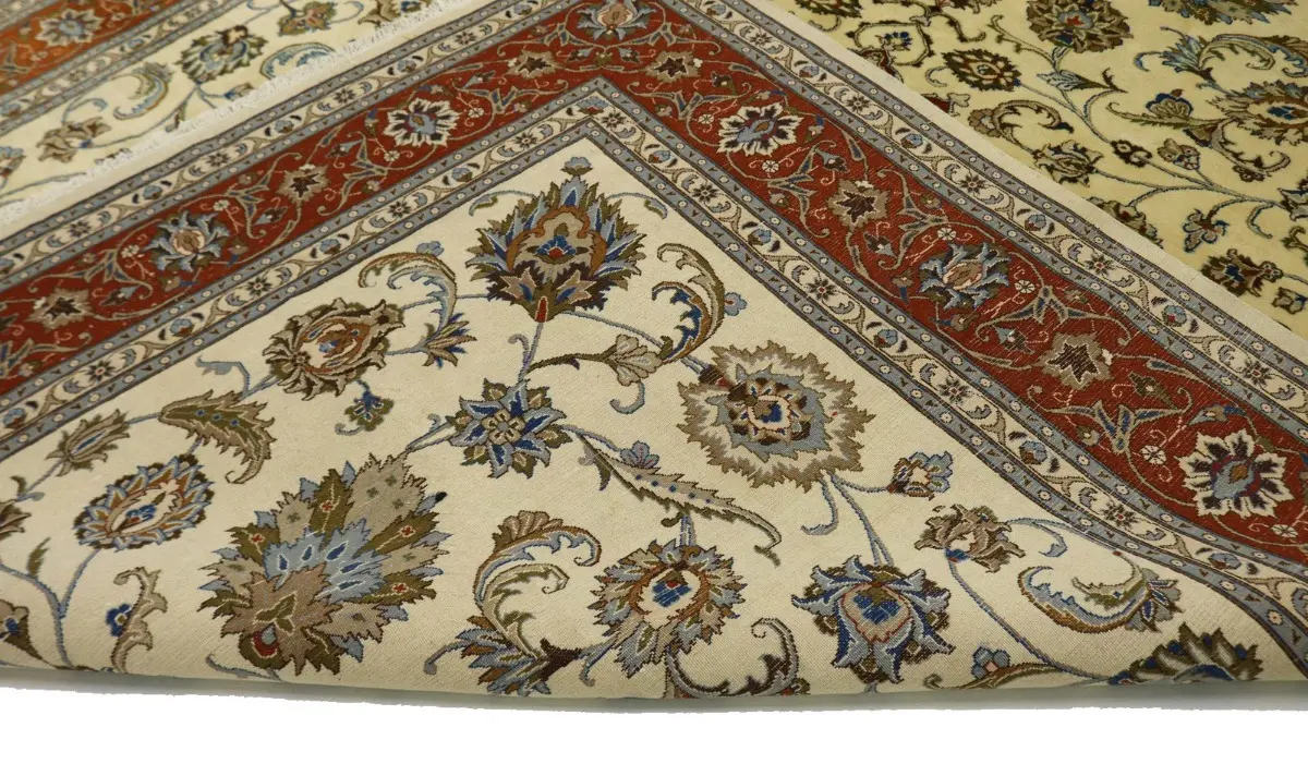 This authentic 10X13 beige vintage Persian rug was made by the hands of gifted weavers inspired by a variety of spectacular artistic designs, to recreate the aged look of the original piece with a richness of color and ornately patterned floral background field. What set this traditional Oriental area rug from the others are the material and dye used (wool pile and cotton foundation), knot count, ancient designs, fantastic grades, and its regional historical connection: it has deep roots, from the story of the people who produced it to the meaning of the symbols and colors displayed across its canvas that have been praised for centuries. This classic home decor carpet will be completely cozy and inviting that never will go out of style! Also, this Oriental rug would be among your most valuable treasures, it is a great investment that accrues value over time, and it will last for generations because was woven with high-quality, all-natural wool; it won’t rip, tear, or shed. Environmentally friendly, opulent yet affordable; this Persian rug will give you a thorough amount of character to help define your living space with elegance and warmth that will capture the eyes and attention of your audience (homeowners, designers, decorators, family and friends). RT-6600