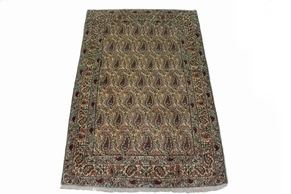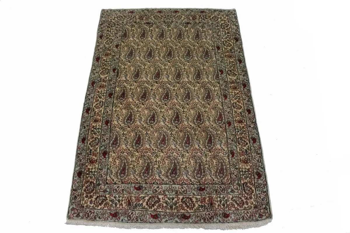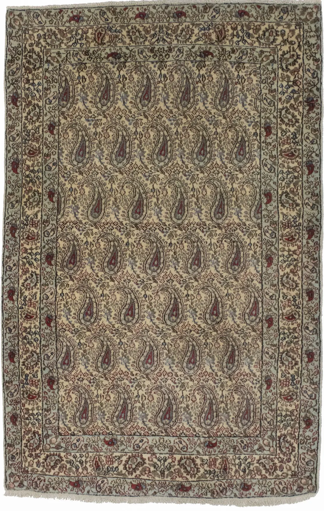 Vintage Beige Floral 3X5 Kashan Boteh Persian Rug