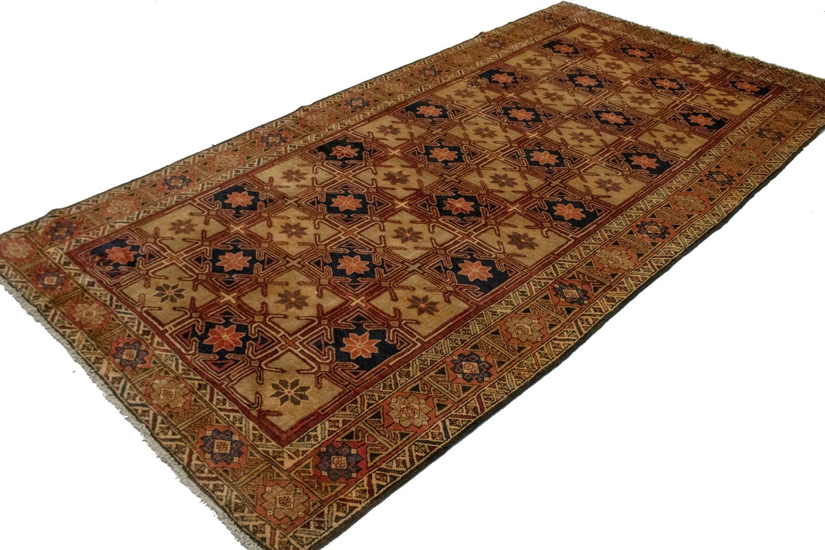 This genuine 5X10 vintage Persian runner was made by the hands of gifted weavers inspired by a variety of spectacular artistic designs, to recreate the aged look of the original piece with a richness of color and ornately patterned background field. What set this geometric Oriental area runner from the others are the material and dye used (wool pile and cotton foundation), knot count, ancient designs, fantastic grades, and its regional historical connection: it has deep roots, from the story of the people who produced it to the meaning of the symbols and colors displayed across its canvas that have been praised for centuries. This home décor carpet will be completely cozy and inviting that never will go out of style! Also, this Oriental runner would be among your most valuable treasures, it is a great investment that accrues value over time, and it will last for generations because was woven with high-quality, all-natural wool; it won’t rip, tear, or shed. Environmentally friendly, opulent yet affordable; this Persian rug will give you a thorough amount of character to help define your living space with elegance and warmth that will capture the eyes and attention of your audience (homeowners, designers, decorators, family and friends). RT-3822