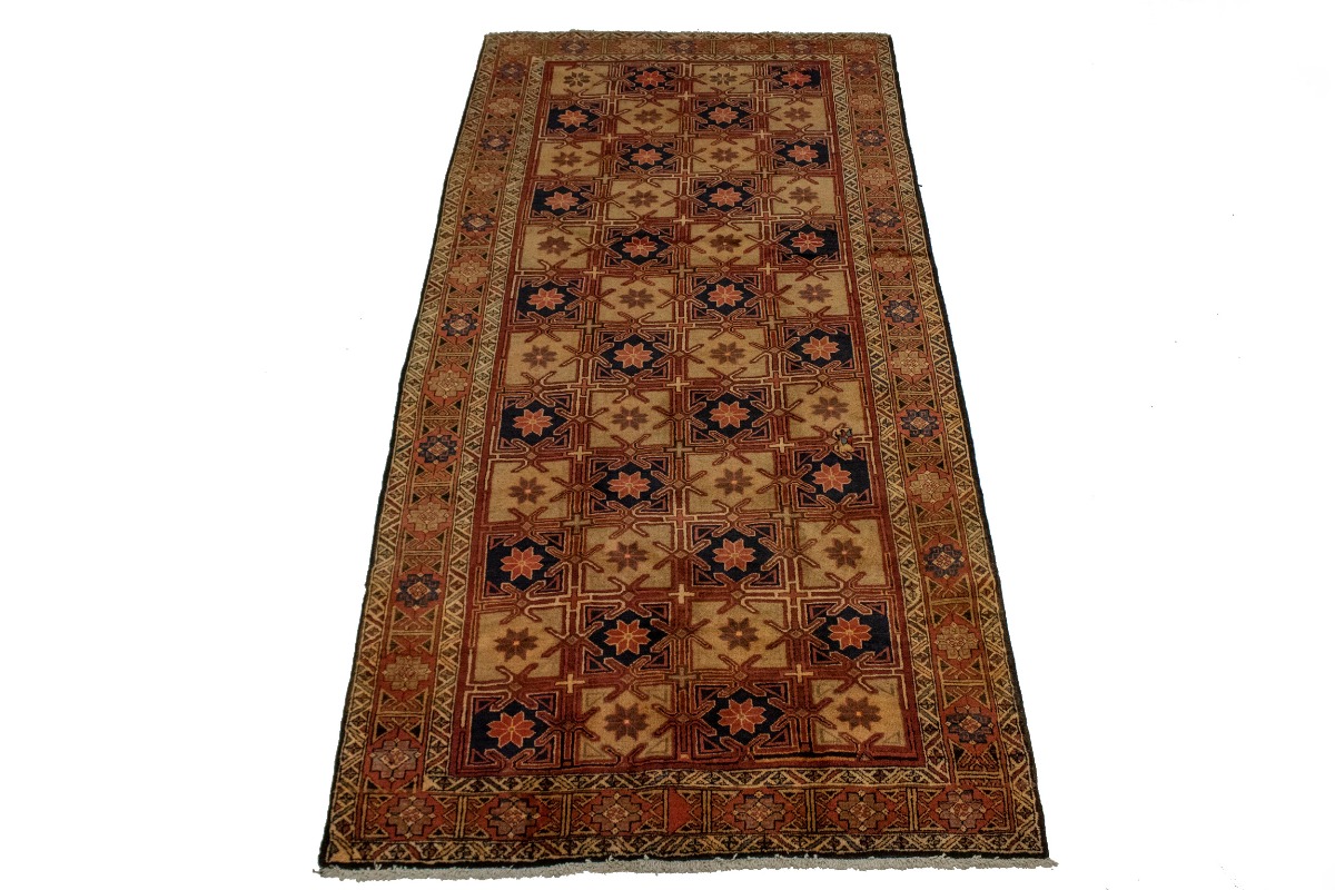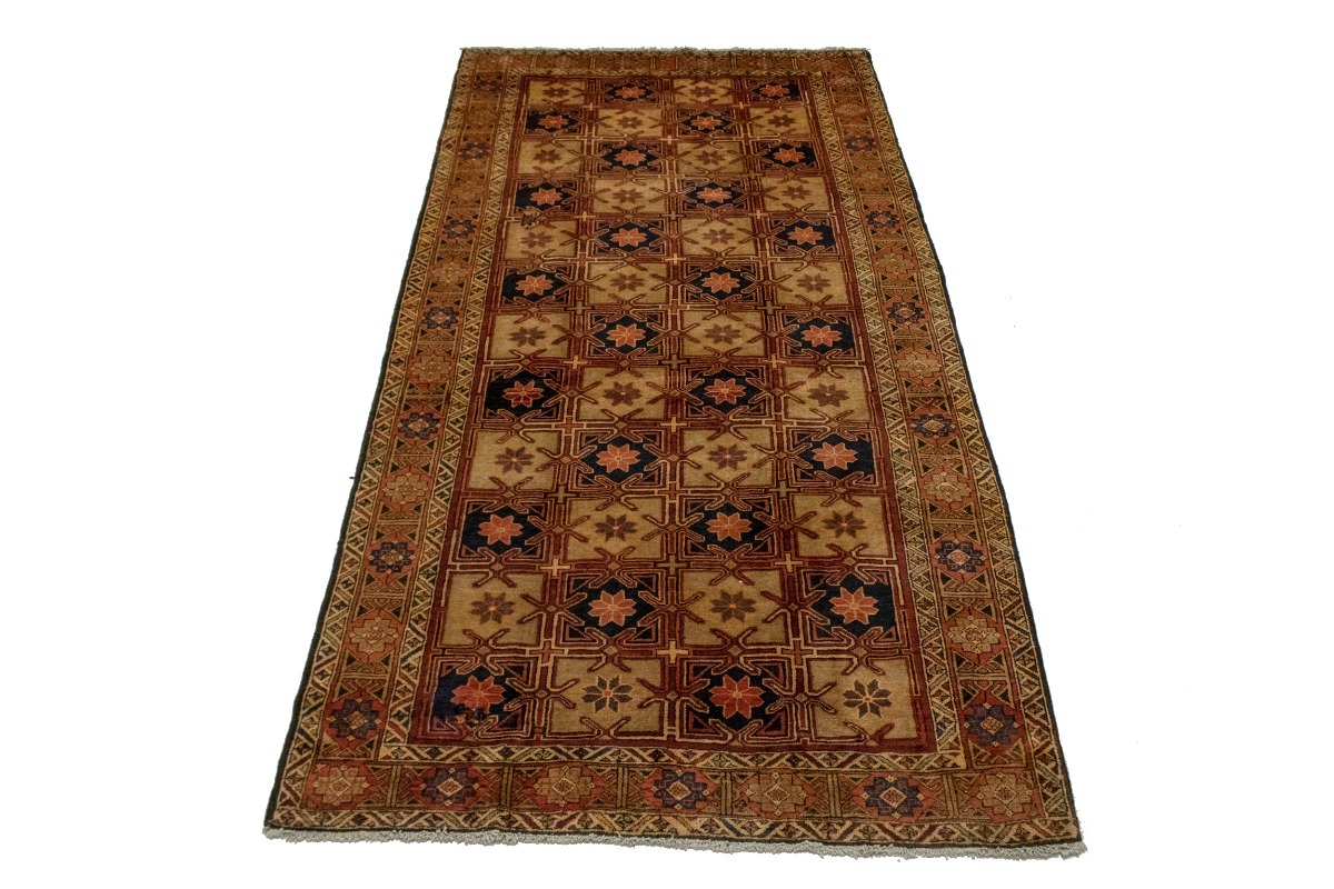Vintage Beige Geometric 5X10 Meshkin Persian Runner Rug