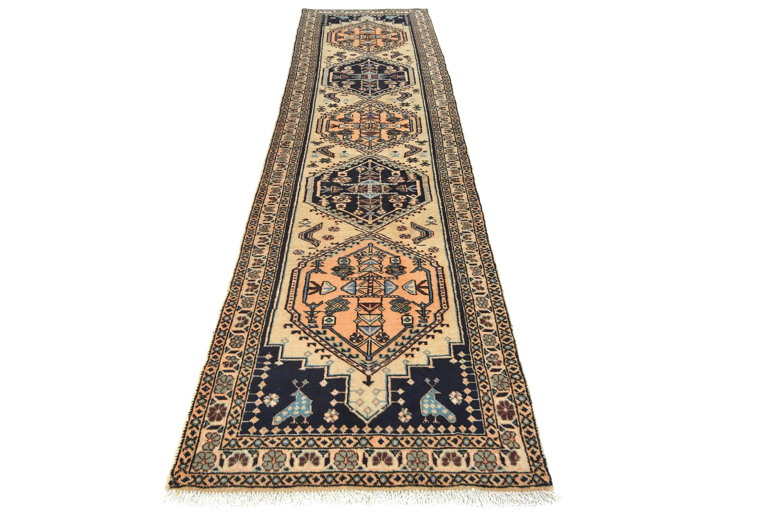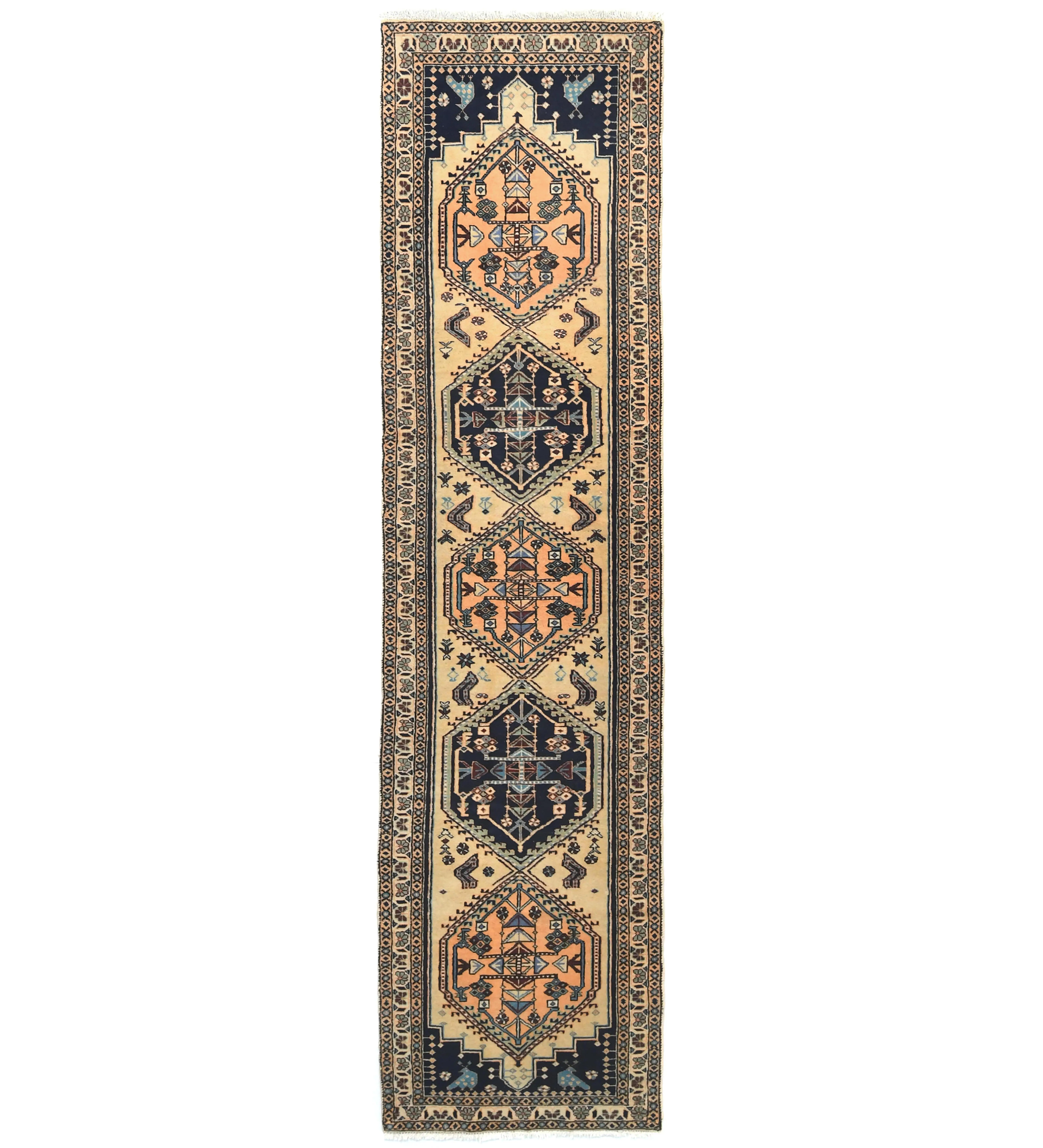 This genuine 2X10 beige vintage Persian rug was made by the hands of gifted weavers inspired by a variety of spectacular artistic designs, to recreate the aged look of the original piece with a richness of color and ornately patterned background field. What set this geometric Oriental area rug from the others are the material and dye used (wool pile and cotton foundation), knot count, ancient designs, fantastic grades, and its regional historical connection: it has deep roots, from the story of the people who produced it to the meaning of the symbols and colors displayed across its canvas that have been praised for centuries. This home decor carpet will be completely cozy and inviting that never will go out of style! Also, this Oriental rug would be among your most valuable treasures, it is a great investment that accrues value over time, and it will last for generations because was woven with high-quality, all-natural wool; it won’t rip, tear, or shed. Environmentally friendly, opulent yet affordable; this Persian rug will give you a thorough amount of character to help define your living space with elegance and warmth that will capture the eyes and attention of your audience (homeowners, designers, decorators, family and friends). RT-7039