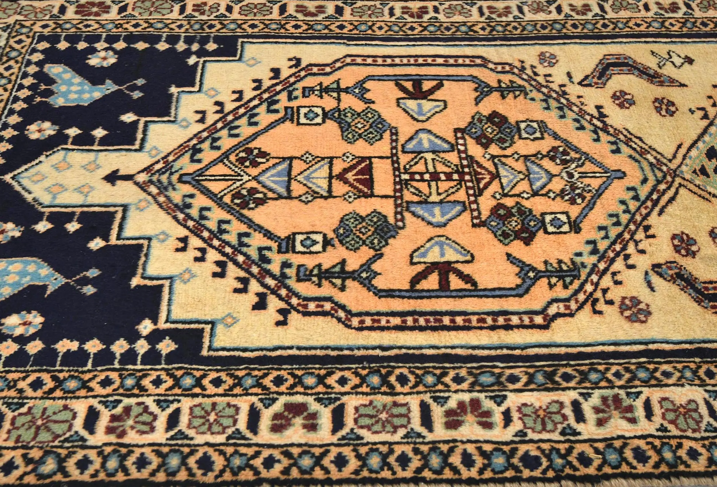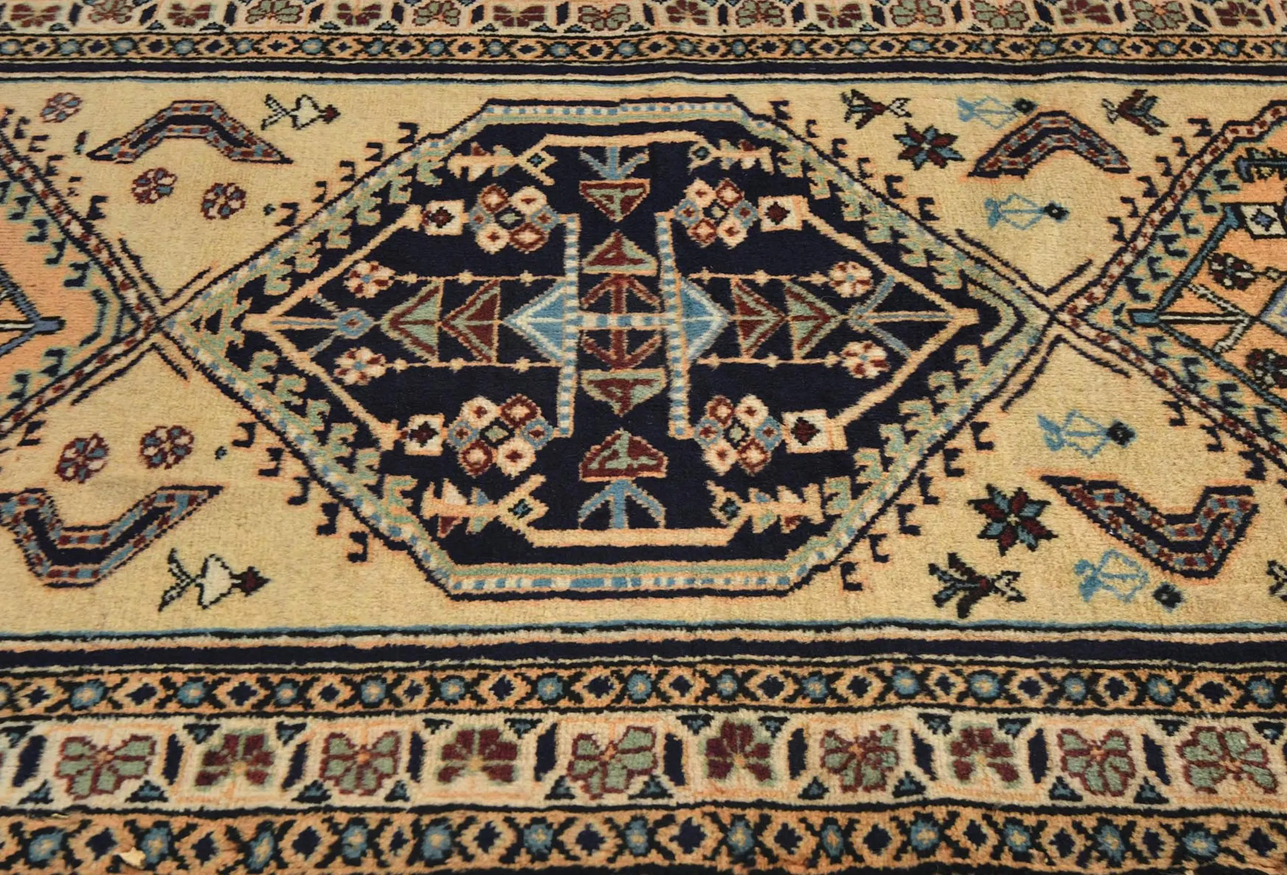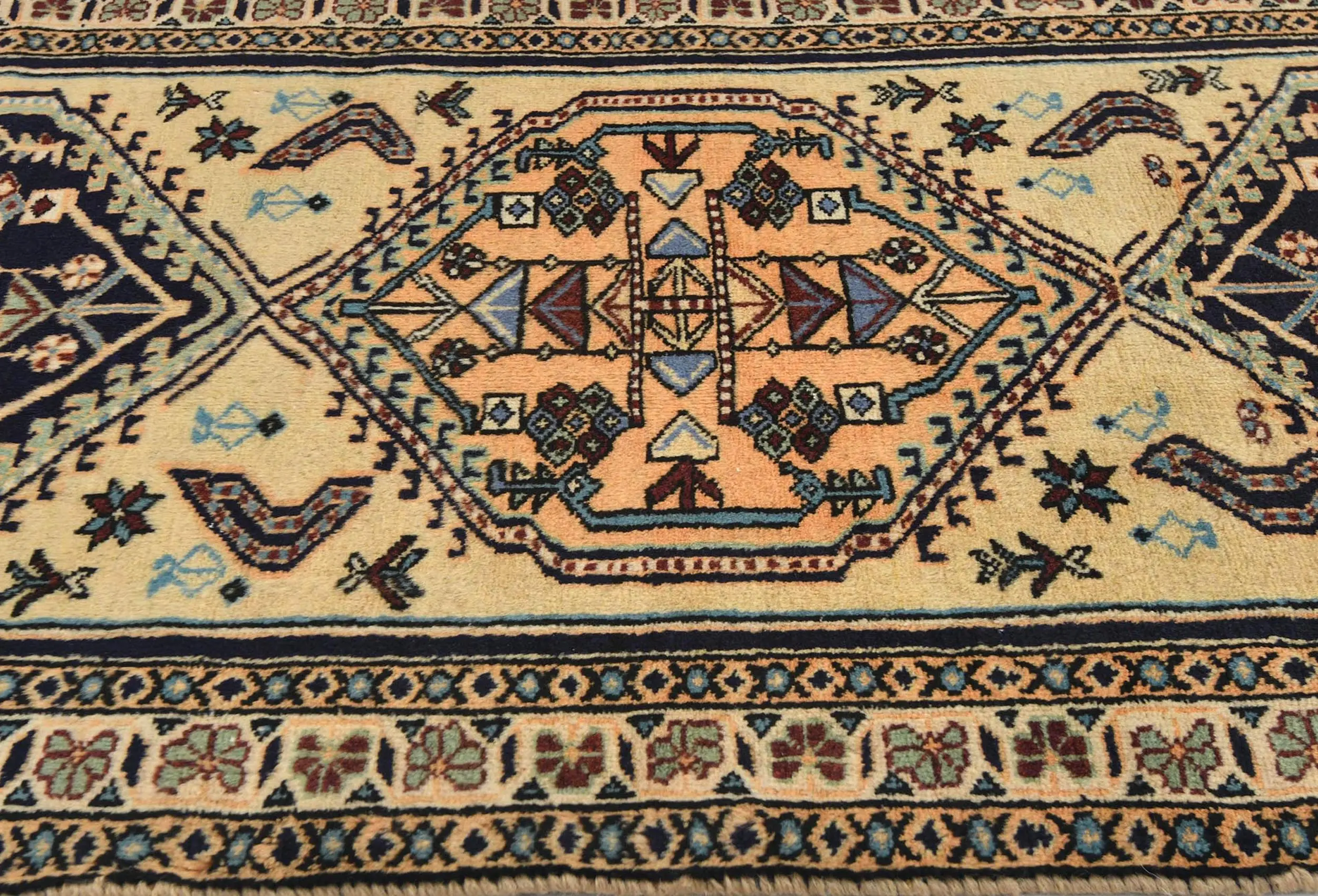 Handmade vintage 2X10 beige Persian rug made with vegetable dyes (fine wool pile and cotton foundation), superior knot count, and appealing ancient designs. This Oriental rug never will go out of style and would be among your most valuable treasures.rt 7279