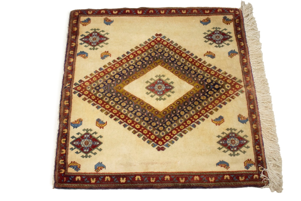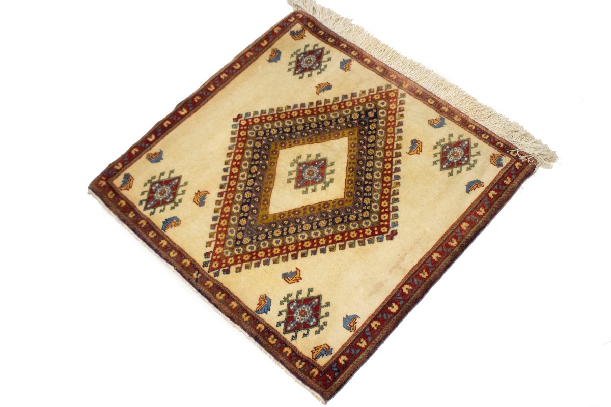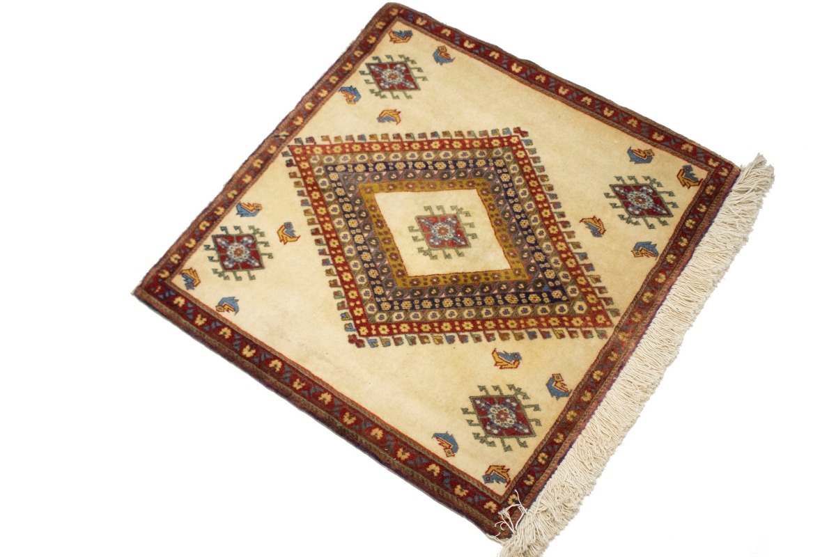 This authentic 2X2 beige vintage Persian rug was finely knotted by the hands of weavers influenced by a variety of amazing artistic designs, to recreate the aged look of the exceptional piece with a richness of color and embellished background field. What set this tribal Oriental area rug from the others are the material and dye used (wool pile and cotton foundation), knot count, antique designs, fantastic grades, and its regional historical connection: it has deep roots, from the story of the people who produced it to the meaning of the symbols and colors displayed across its canvas that have been praised for centuries. This home décor carpet will be completely cozy and inviting that never will go out of style! Also, this Oriental rug would be among your most valuable treasures, it is a great investment that increase in value over time, and it will last a lifetime because was woven with high-quality, all-natural wool; it won’t rip, tear, or shed. Eco-friendly, opulent yet affordable; this Persian rug will give you an extra pop of character to help define your home environment with luxury and warmth that will capture the eyes and attention of your audience (homeowners, designers, decorators, family and friends). RT-1489