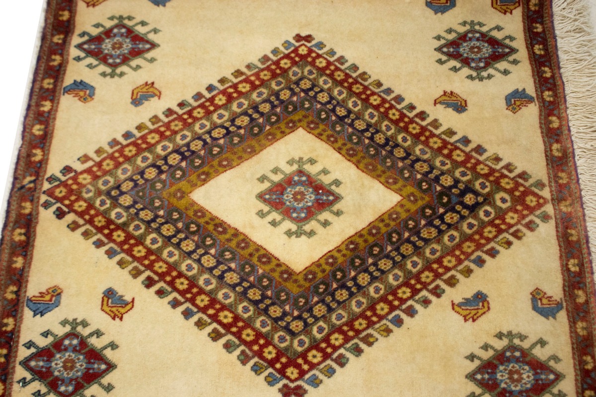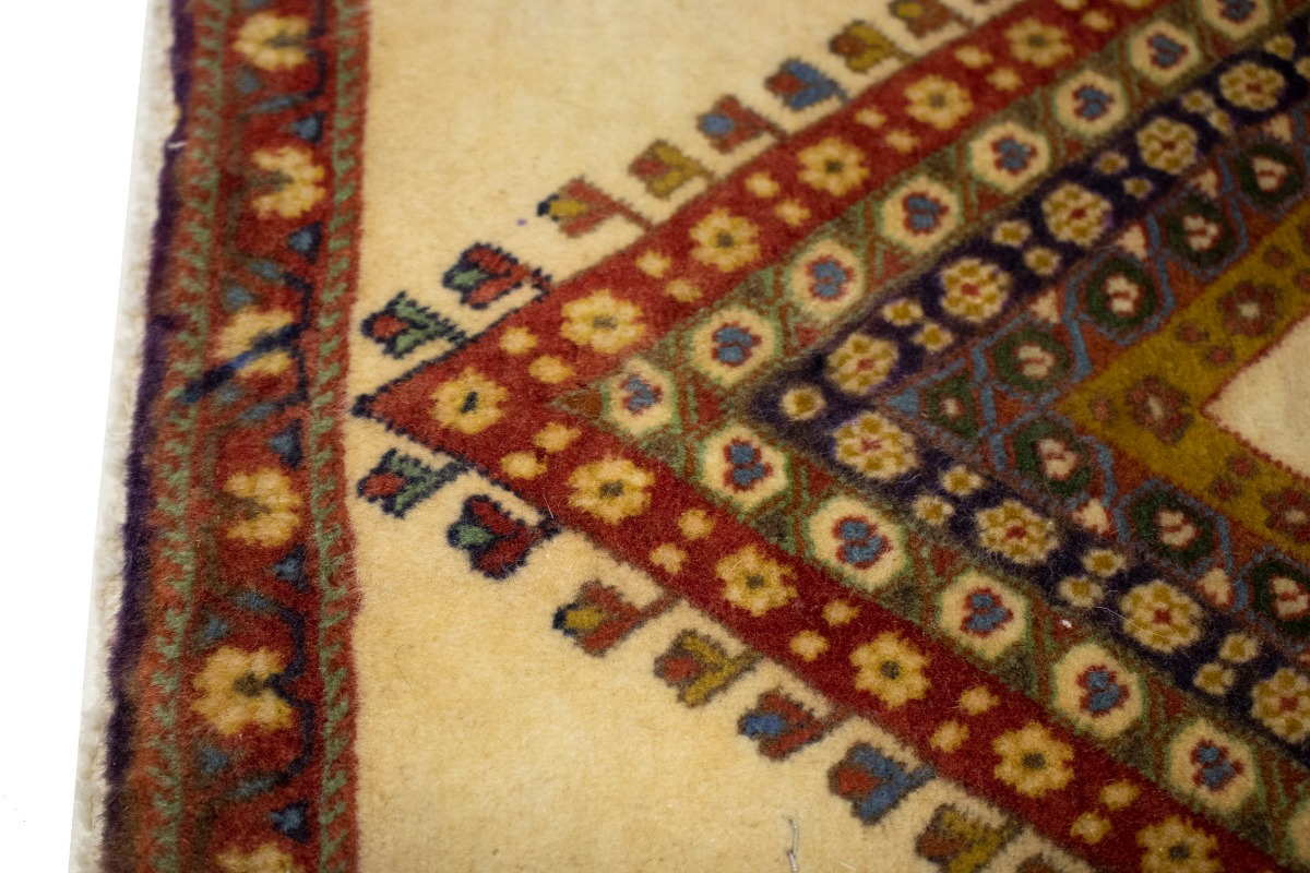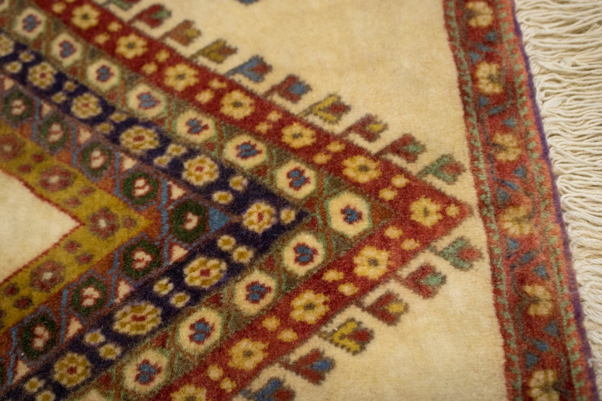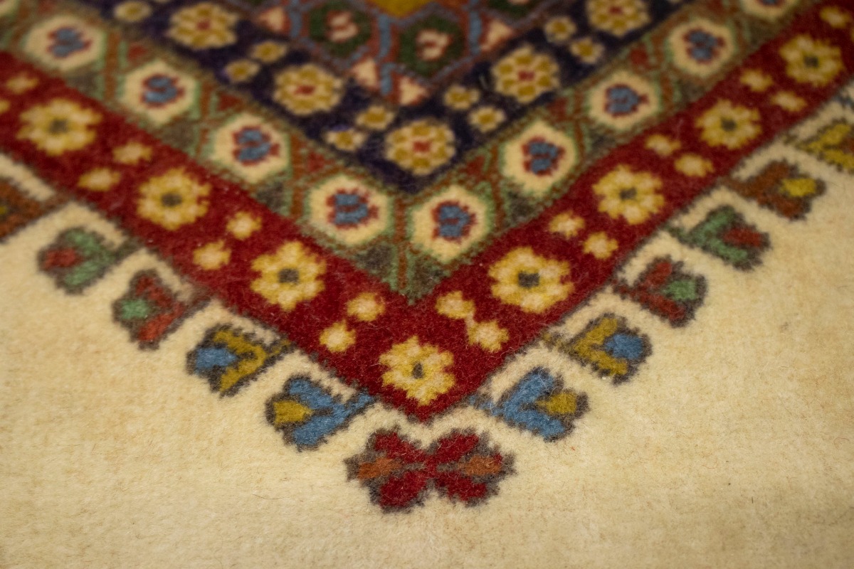 This authentic 2X2 beige vintage Persian rug was finely knotted by the hands of weavers influenced by a variety of amazing artistic designs, to recreate the aged look of the exceptional piece with a richness of color and embellished background field. What set this tribal Oriental area rug from the others are the material and dye used (wool pile and cotton foundation), knot count, antique designs, fantastic grades, and its regional historical connection: it has deep roots, from the story of the people who produced it to the meaning of the symbols and colors displayed across its canvas that have been praised for centuries. This home décor carpet will be completely cozy and inviting that never will go out of style! Also, this Oriental rug would be among your most valuable treasures, it is a great investment that increase in value over time, and it will last a lifetime because was woven with high-quality, all-natural wool; it won’t rip, tear, or shed. Eco-friendly, opulent yet affordable; this Persian rug will give you an extra pop of character to help define your home environment with luxury and warmth that will capture the eyes and attention of your audience (homeowners, designers, decorators, family and friends). RT-1489