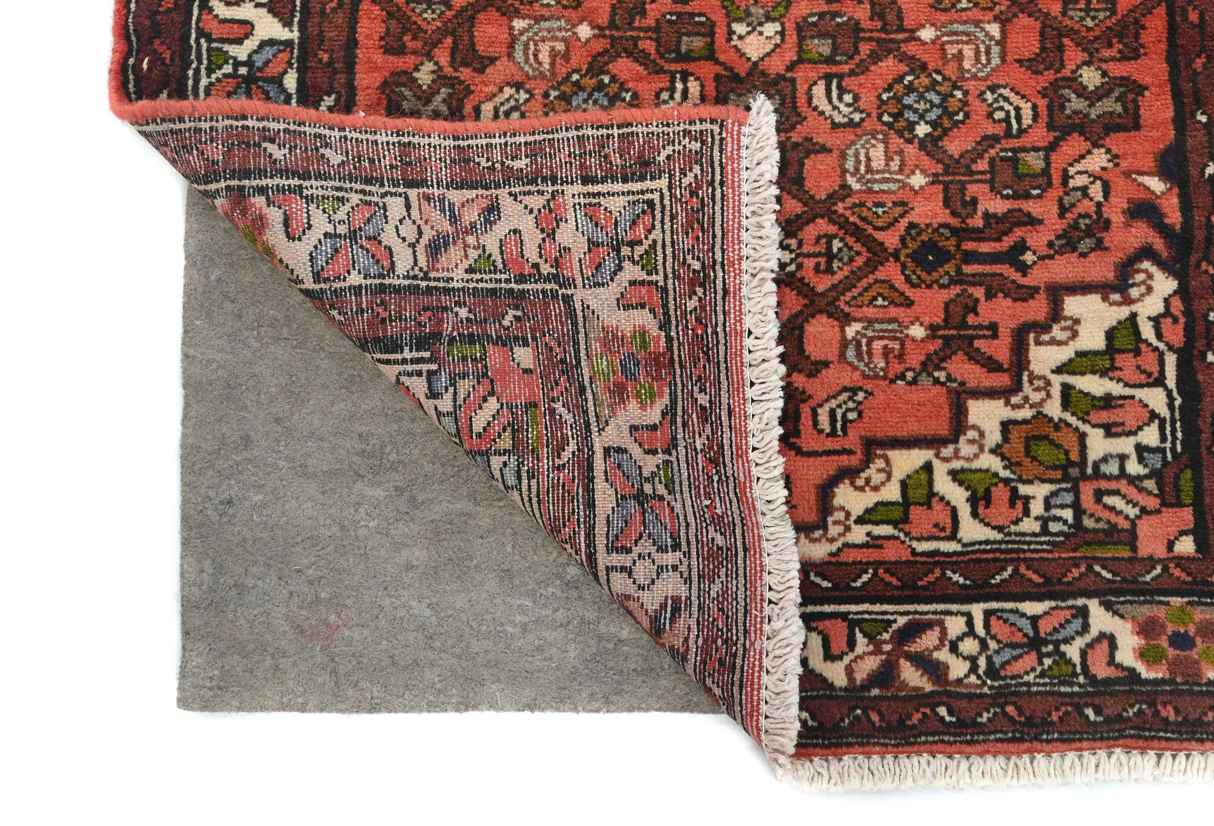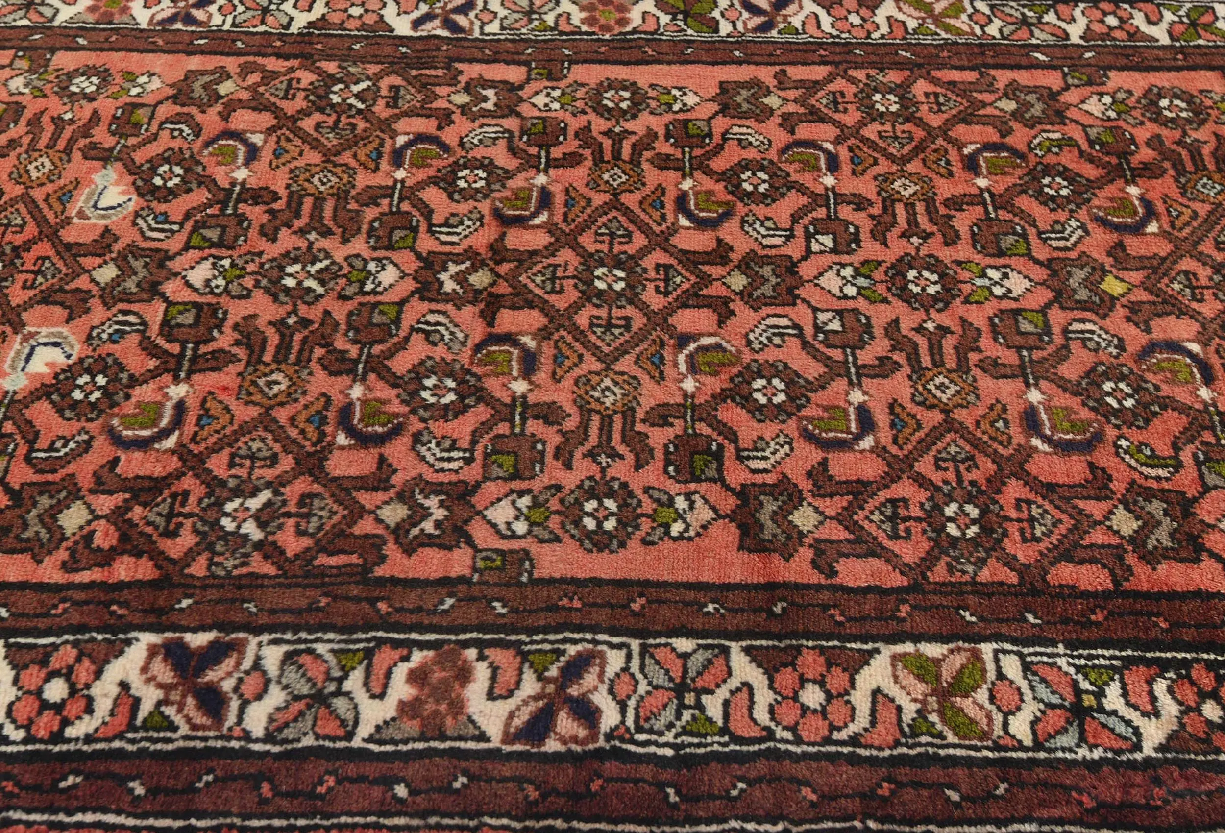 This original 2'6X12'5 Bittersweet red vintage Persian runner was crafted by the hands of skilled weavers enthused by a variety of lovely artistic designs, to recreate the aged look of the unique piece with a richness of color and beautifully elaborated background field. What set this tribal Oriental area runner from the others are the material and dye used (wool pile and cotton foundation), knot count, ancient designs, fantastic grades, and its regional historical connection: it has deep roots, from the story of the people who produced it to the meaning of the symbols and colors displayed across its canvas that have been praised for centuries. This home décor carpet will be completely cozy and inviting that never will go out of style! Also, this Oriental runner would be among your most valuable treasures, it is a great investment that increase in value over time, and it will last for generations because was woven with high-quality, all-natural wool; it won’t rip, tear, or shed. Environmentally friendly, opulent yet affordable; this Persian rug will give you a thorough amount of character to help define your living space with sophistication and warmth that will capture the eyes and attention of your audience (homeowners, designers, decorators, family and friends). RT-7061