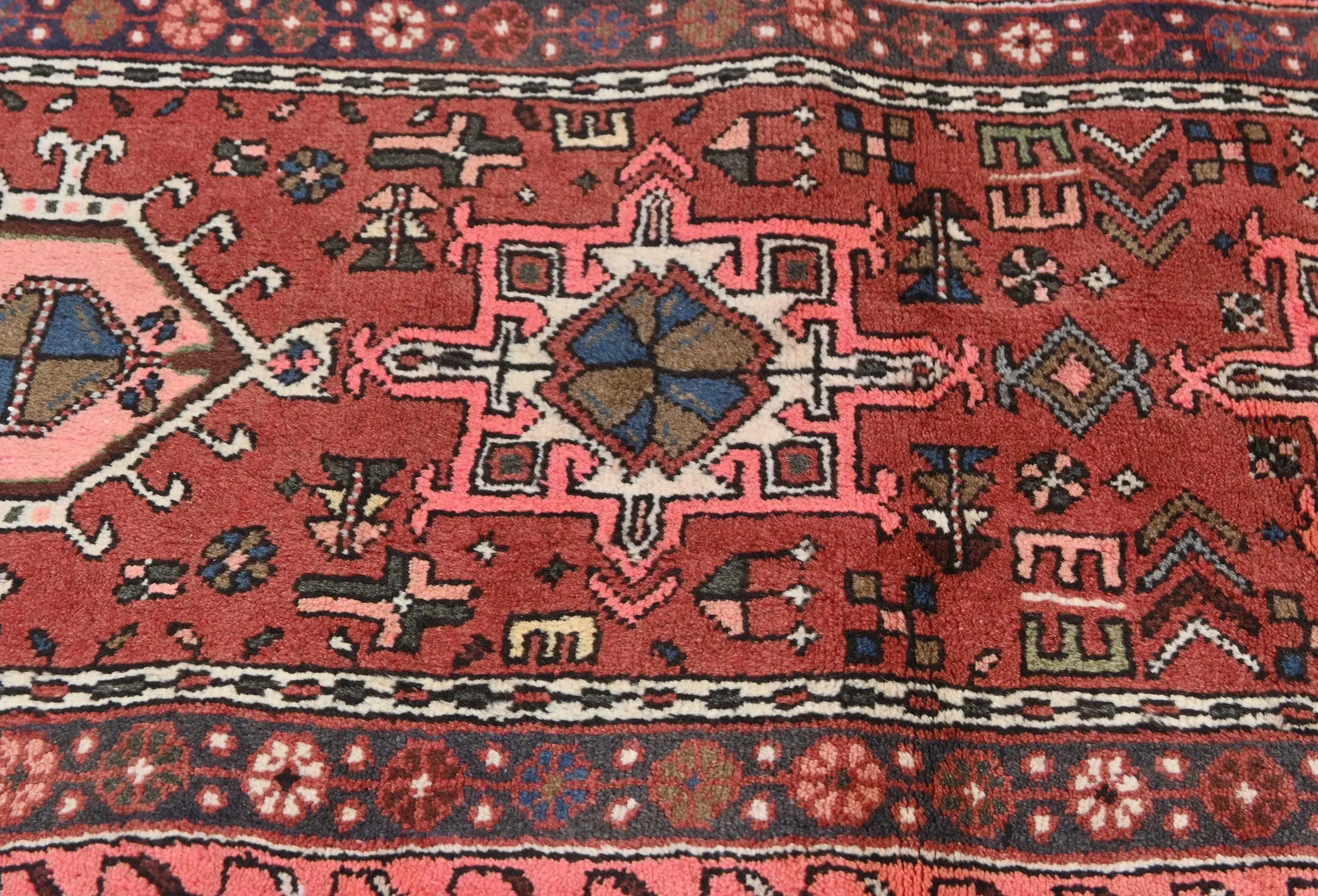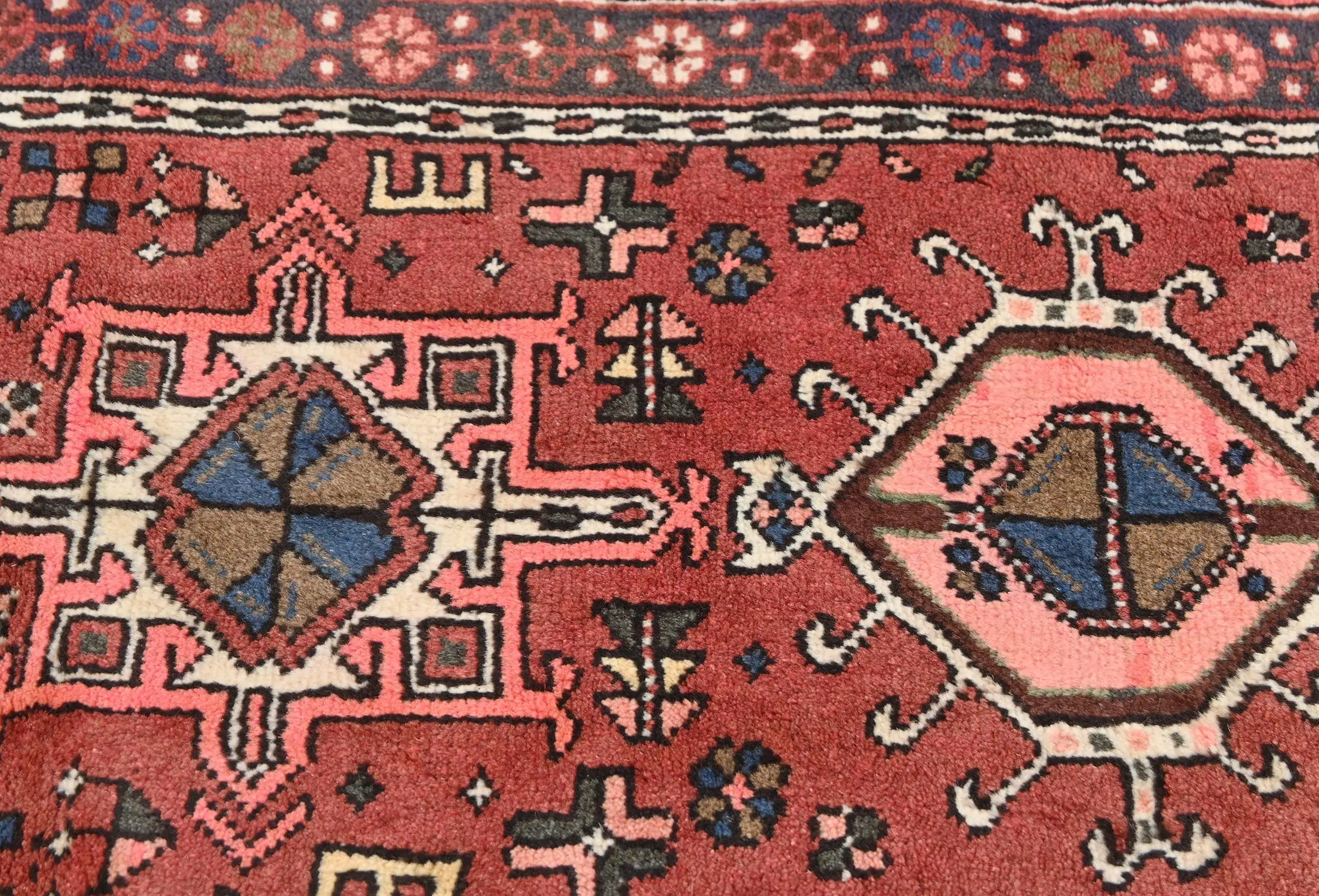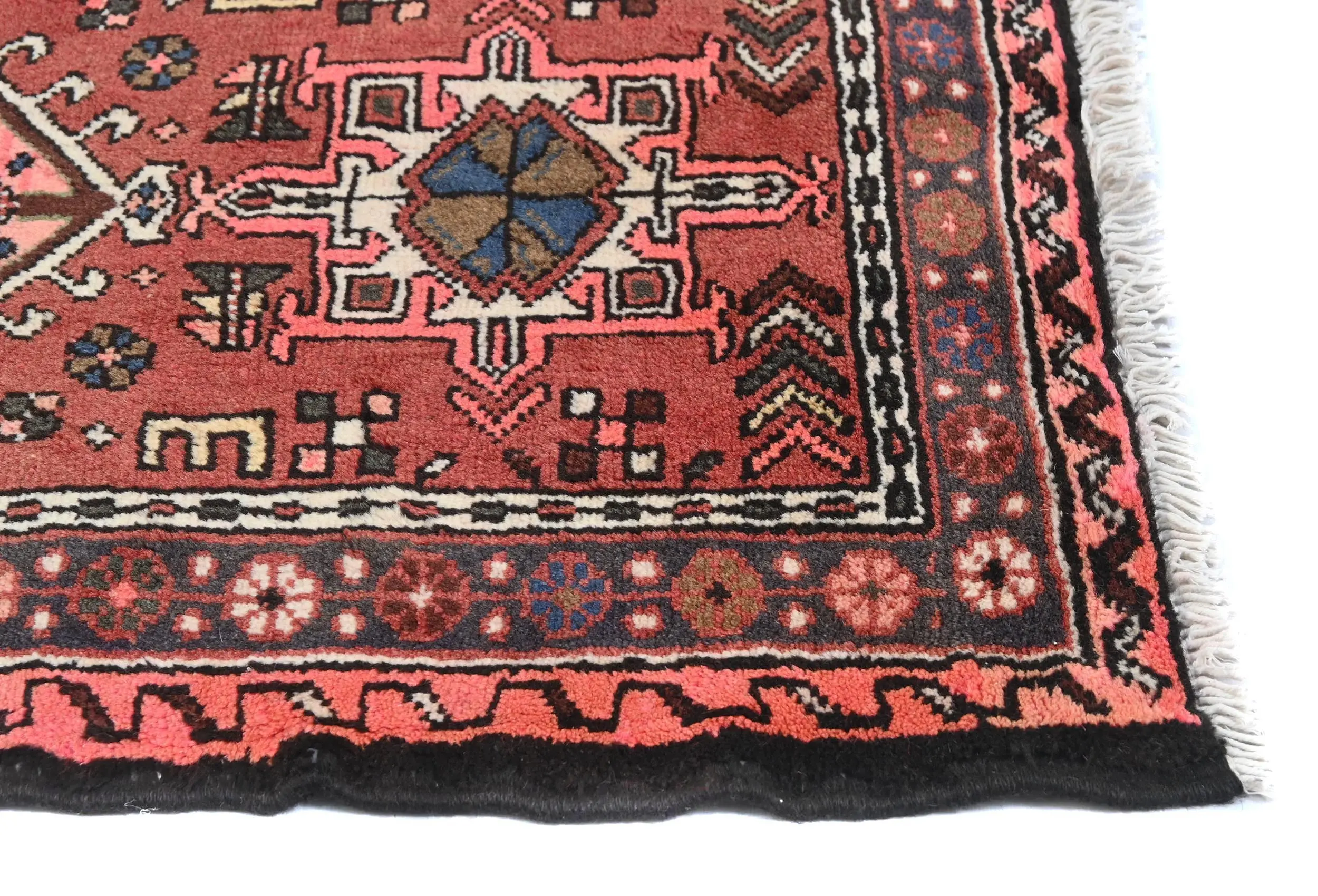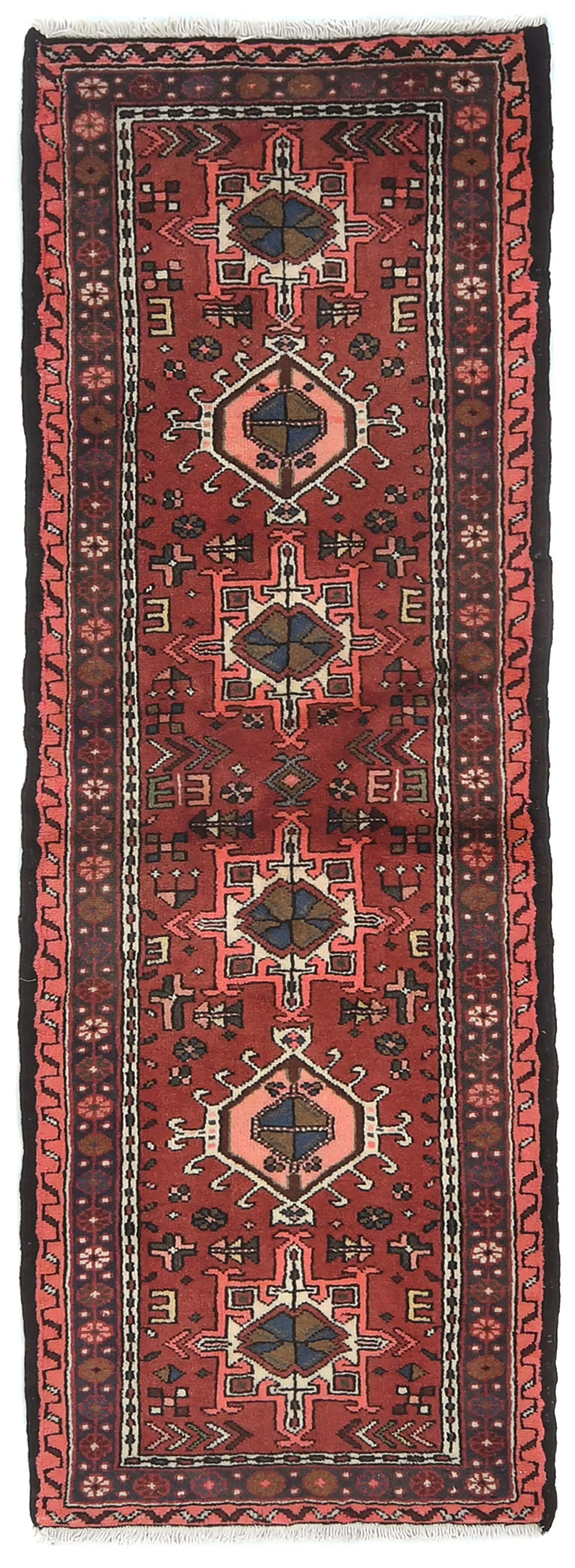 Vintage Bittersweet Red Geometric 2'3X6'6 Karajeh Persian Runner Rug