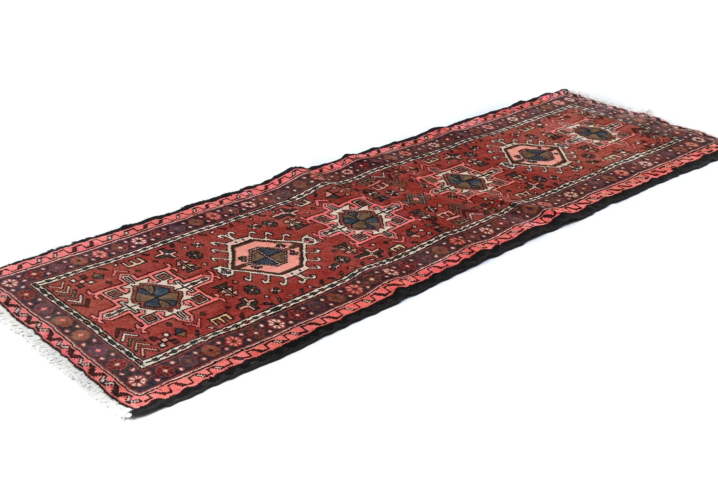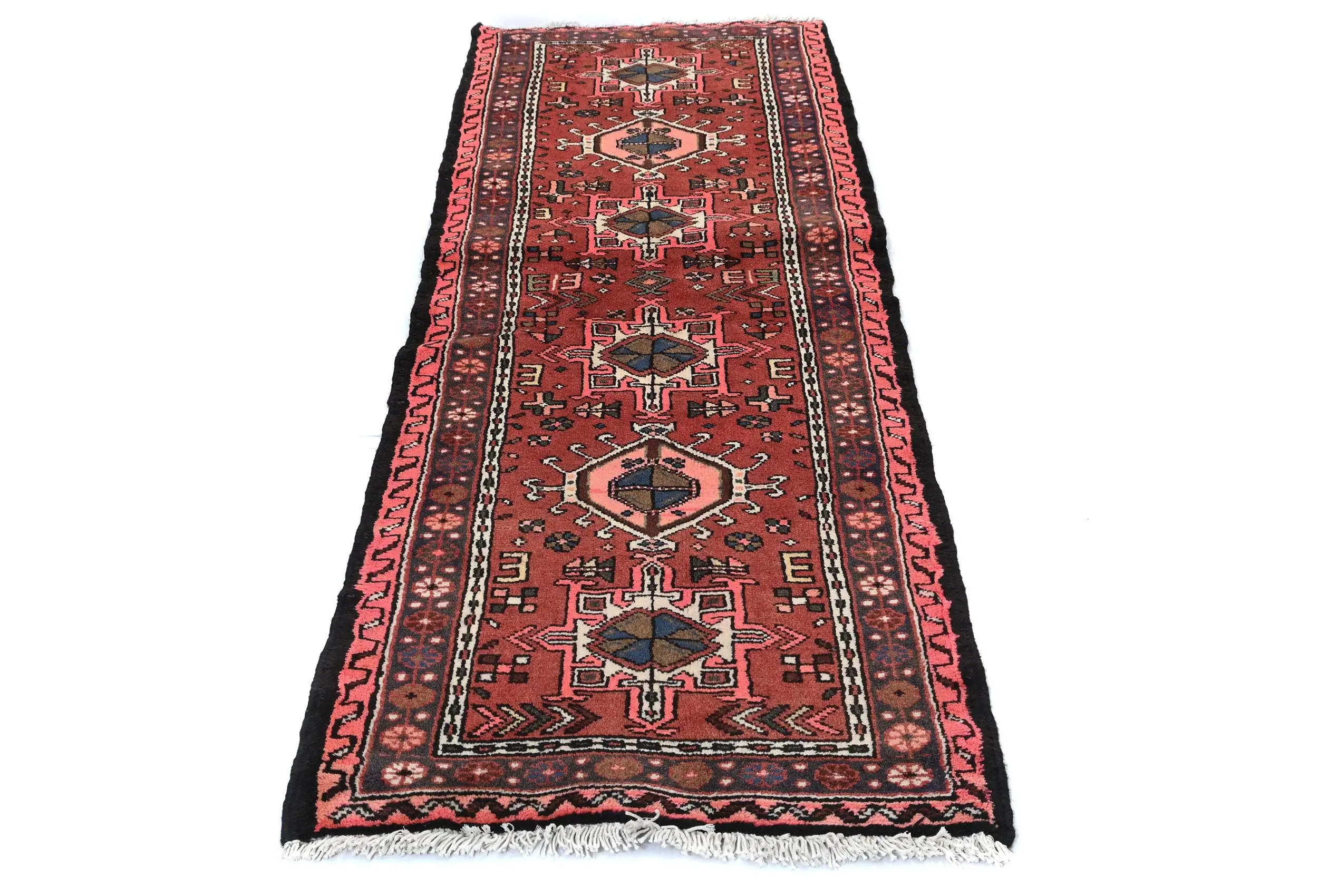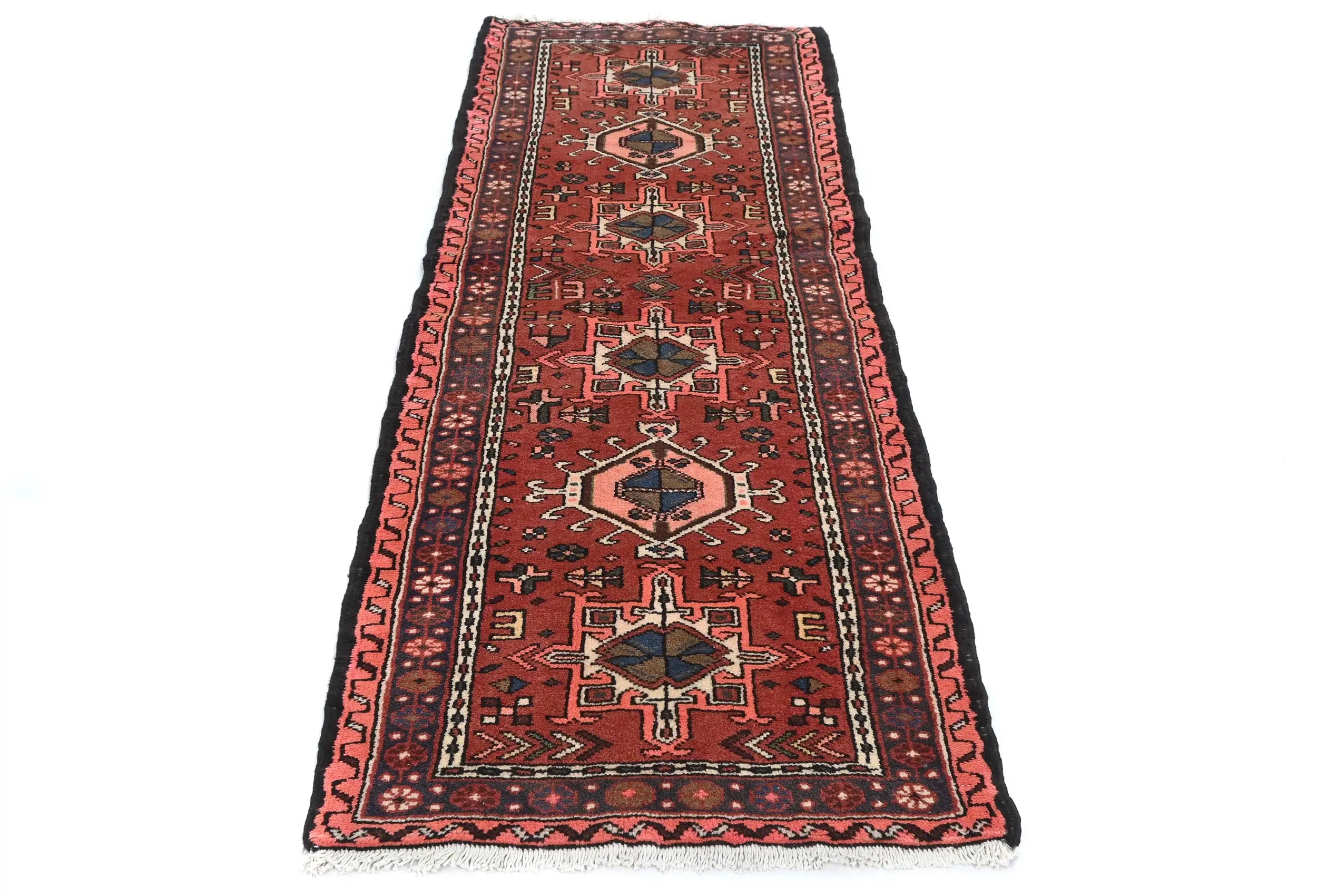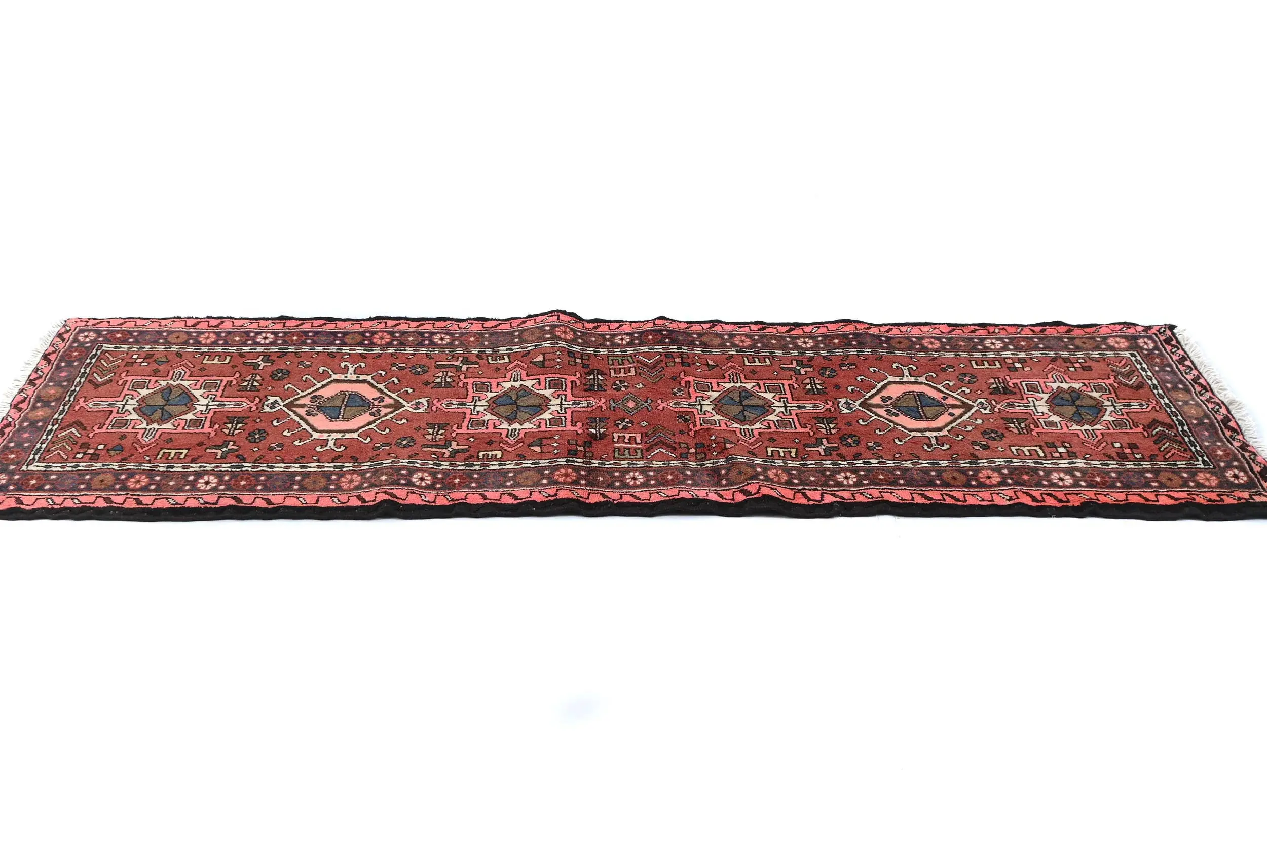 Hand Knotted vintage 2'3X6'6 Bittersweet Red Persian runner made with vegetable dyes (fine wool pile and cotton foundation), superior knot count, and appealing ancient designs. This Oriental runner never will go out of style and would be among your most valuable treasures.