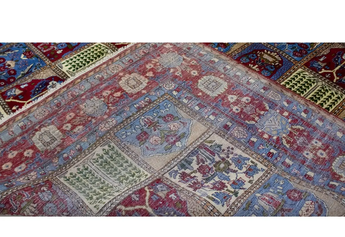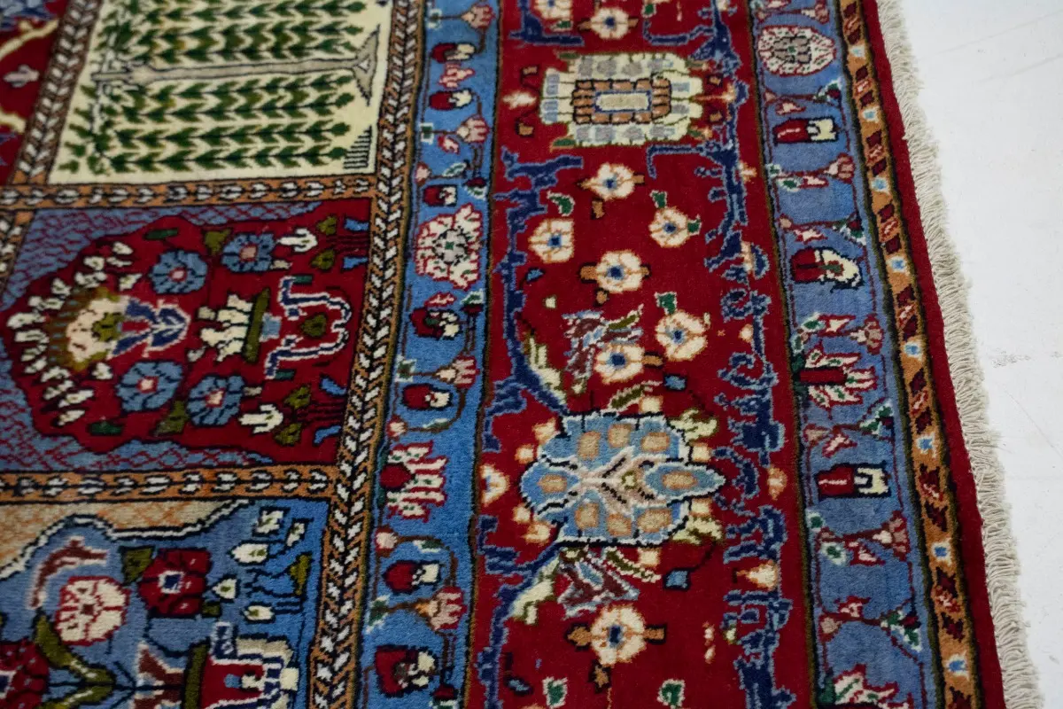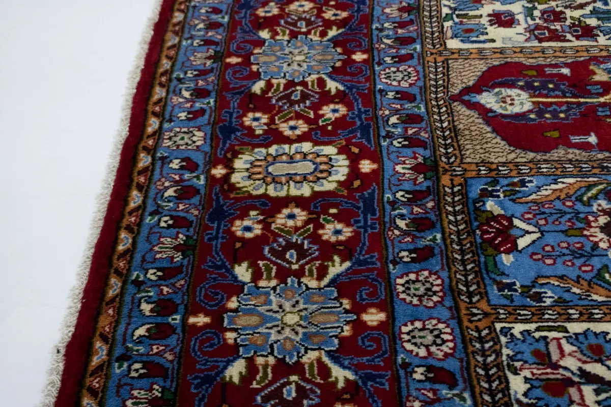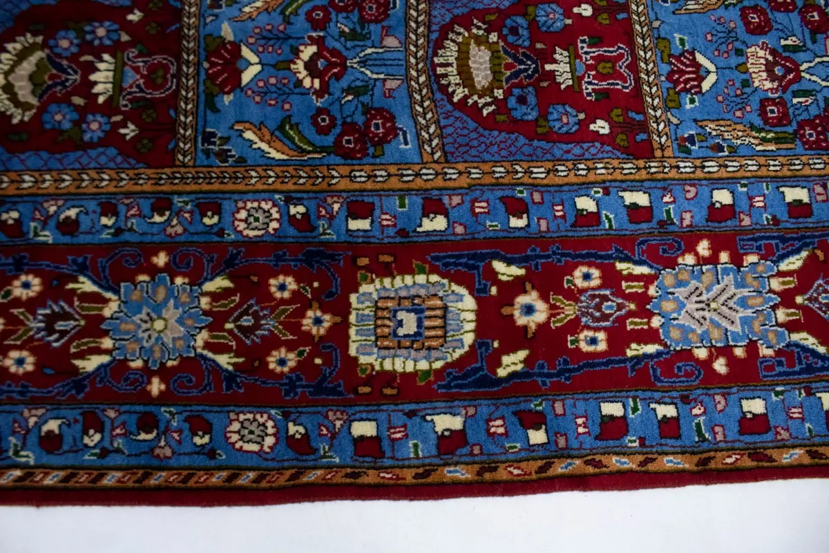 This authentic 10X13 blue & red vintage Persian rug was masterly knotted by the hands of weavers inspired by a variety of wonderful artistic designs, to recreate the aged look of the original piece with a richness of color and intricate patterned floral background field. What set this traditional Oriental area rug from the others are the material and dye used (wool pile and cotton foundation), knot count, antique designs, fantastic grades, and its regional historical connection: it has deep roots, from the story of the people who produced it to the meaning of the symbols and colors displayed across its canvas that have been praised for centuries. This classic home décor carpet will be completely cozy and inviting that never will go out of style! Also, this Oriental rug would be among your most valuable treasures, it is a great investment that accrues value over time, and it will last for generations because was woven with high-quality, all-natural wool; it won’t rip, tear, or shed. Environmentally friendly, opulent yet affordable; this Persian rug will give you a thorough amount of character to help define your living space with luxury and warmth that will capture the eyes and attention of your audience (homeowners, designers, decorators, family and friends). RT-7617