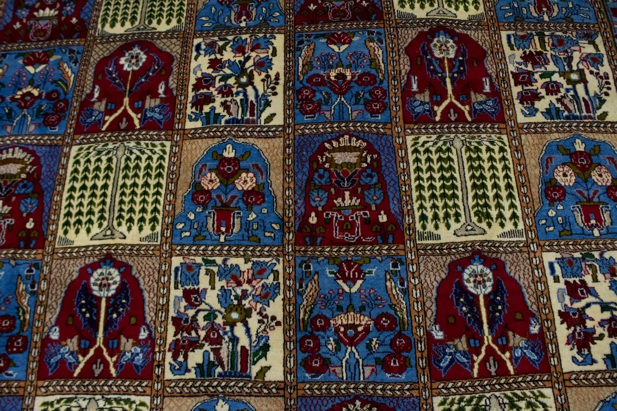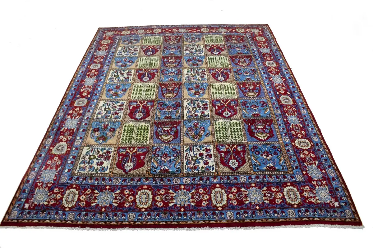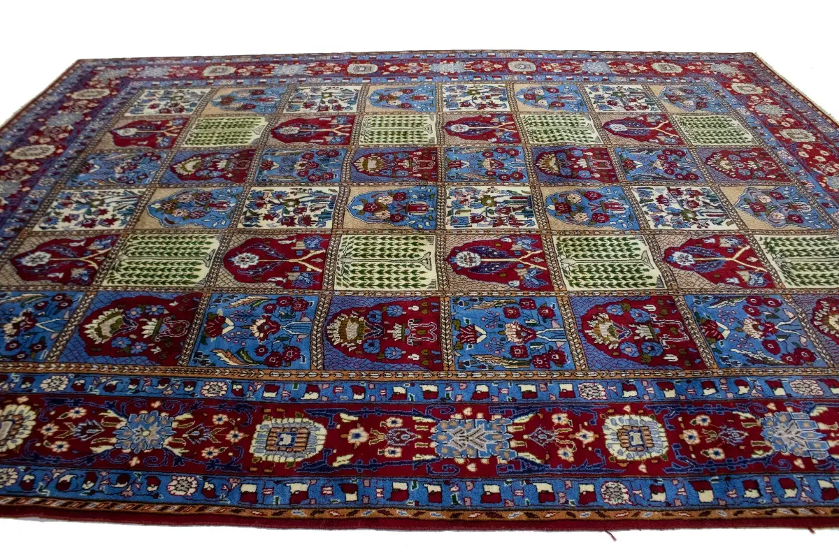 Hand Knotted vintage 10X13 blue floral garden Persian rug made with vegetable dyes (fine wool pile and cotton foundation), superior knot count, and appealing ancient designs. This Oriental rug never will go out of style and would be among your most valuable treasures.
