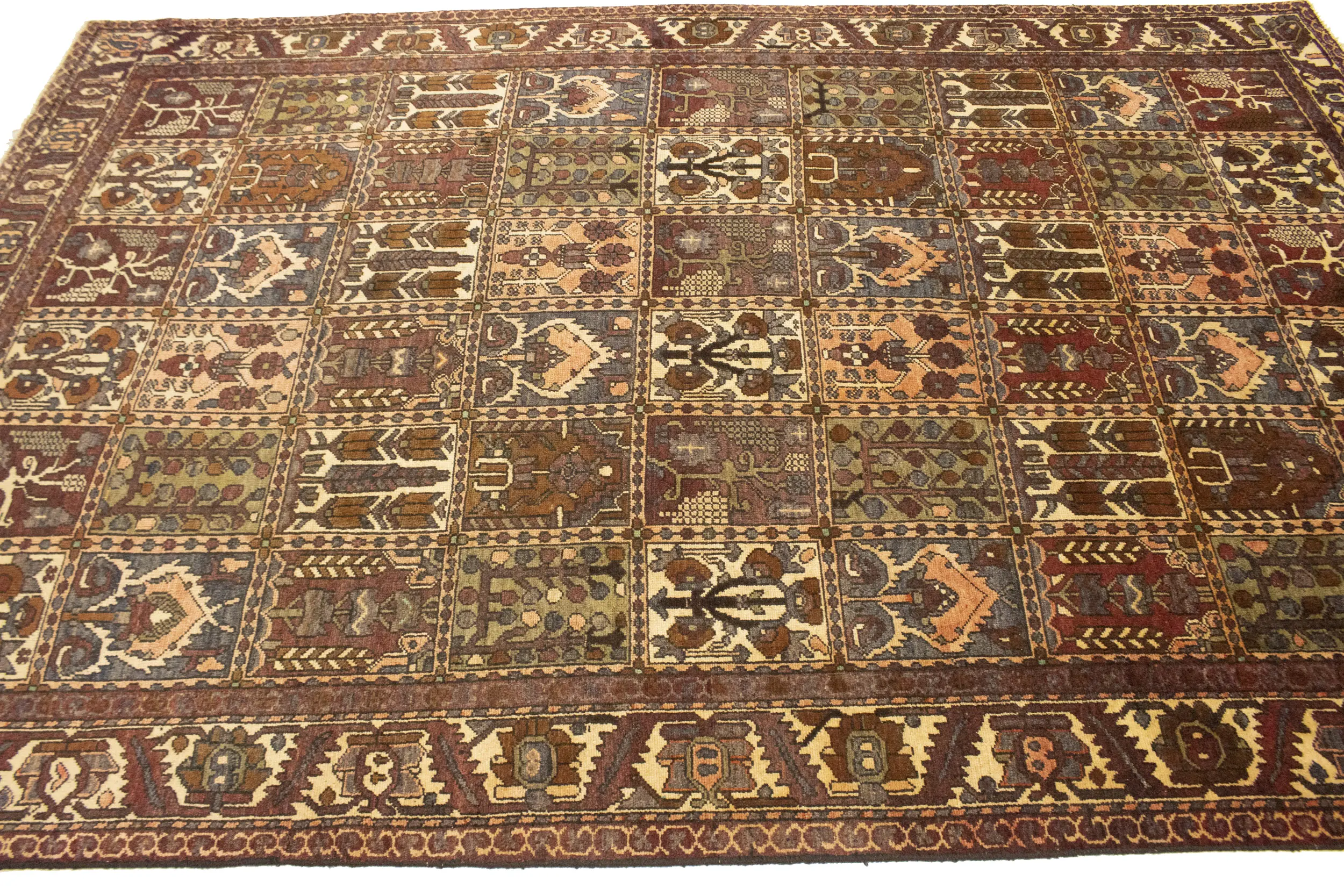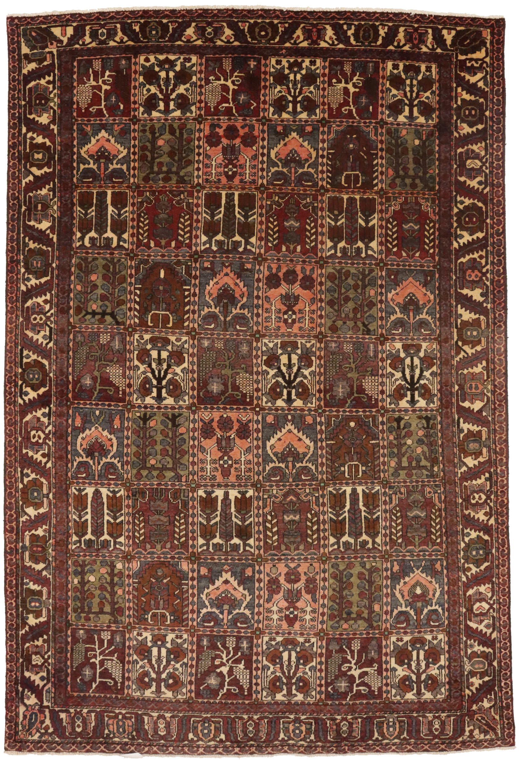 Vintage Brown Floral 7X10 Bakhtiari Persian Rug