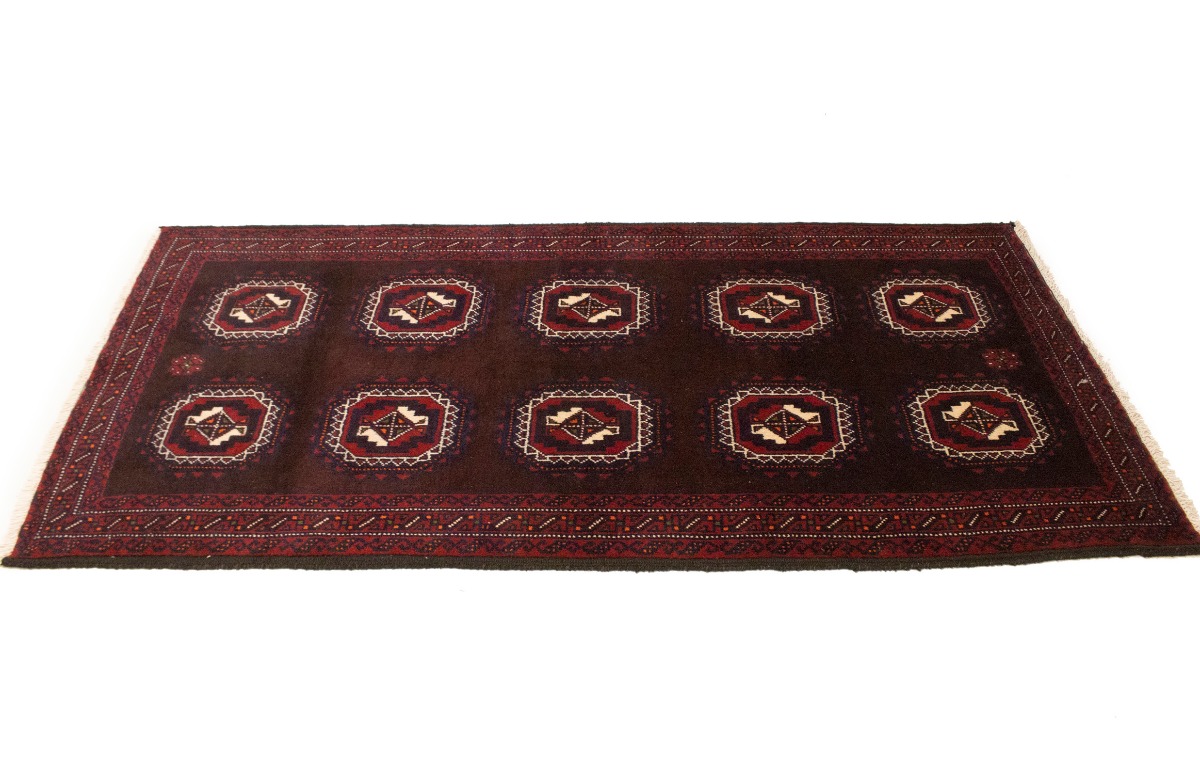 Vintage Burgundy Tribal 3'5X7 Balouch Persian Rug