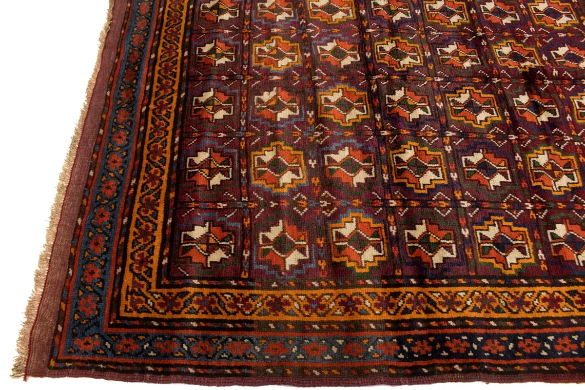 Vintage Burgundy Tribal 5X9 Kazak Bokhara Persian Rug