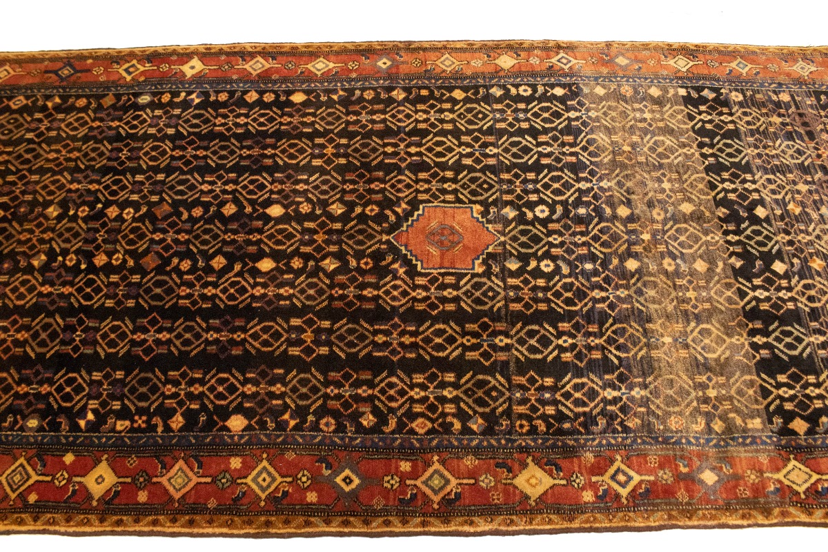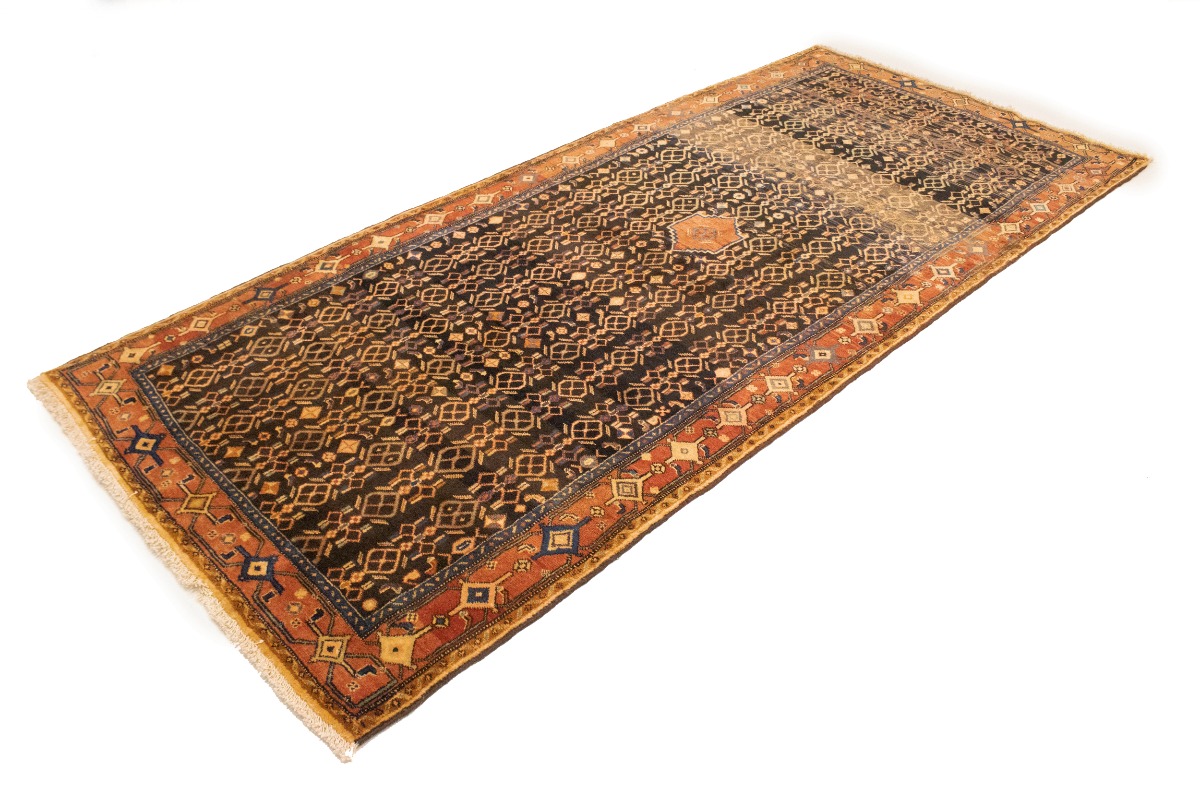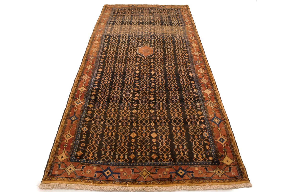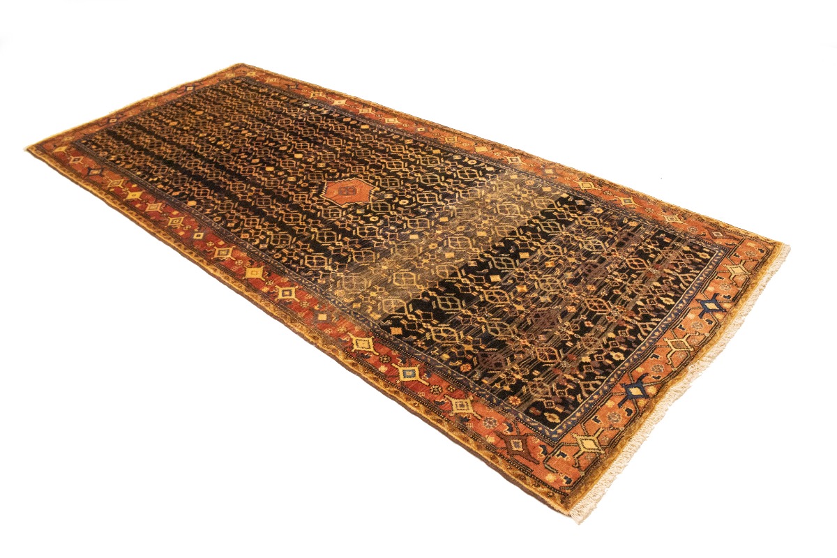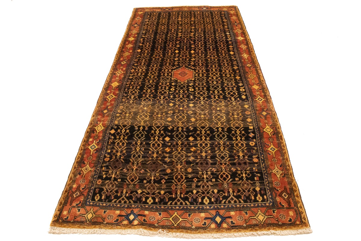 This genuine 4X10 charcoal vintage Persian runner was made by the hands of talented weavers influenced by a variety of gorgeous symmetrical artistic designs, to recreate the aged look of the unique piece with a richness of color and very balanced background field. What set this tribal Oriental area runner from the others are the material and dye used (wool pile and cotton foundation), knot count, antique designs, fantastic grades, and its regional historical connection: it has deep roots, from the story of the people who produced it to the meaning of the symbols and colors displayed across its canvas that have been praised for centuries. This home décor carpet will be completely cozy and inviting that never will go out of style! Also, this Oriental runner would be among your most valuable treasures, it is a great investment that accrues value over time, and it will last a lifetime because was woven with high-quality, all-natural wool; it won’t rip, tear, or shed. Eco-friendly, opulent yet affordable; this Persian rug will give you an extra pop of character to help define your home environment with sophistication and warmth that will capture the eyes and attention of your audience (homeowners, designers, decorators, family and friends). RT-10077