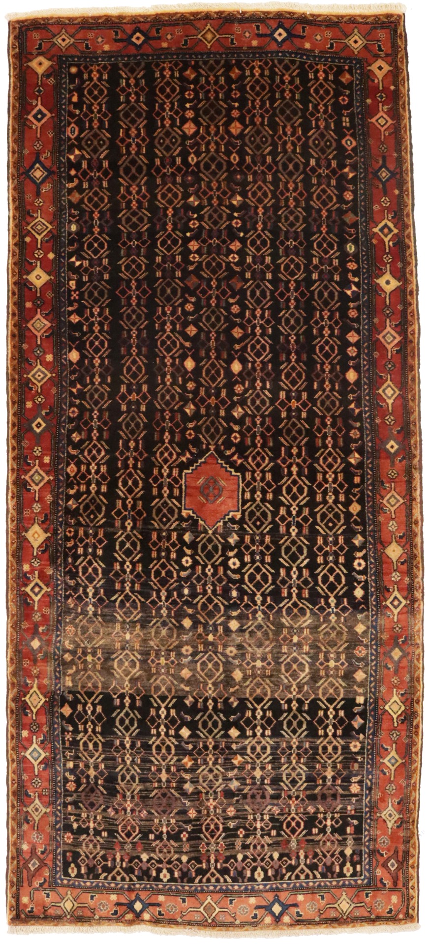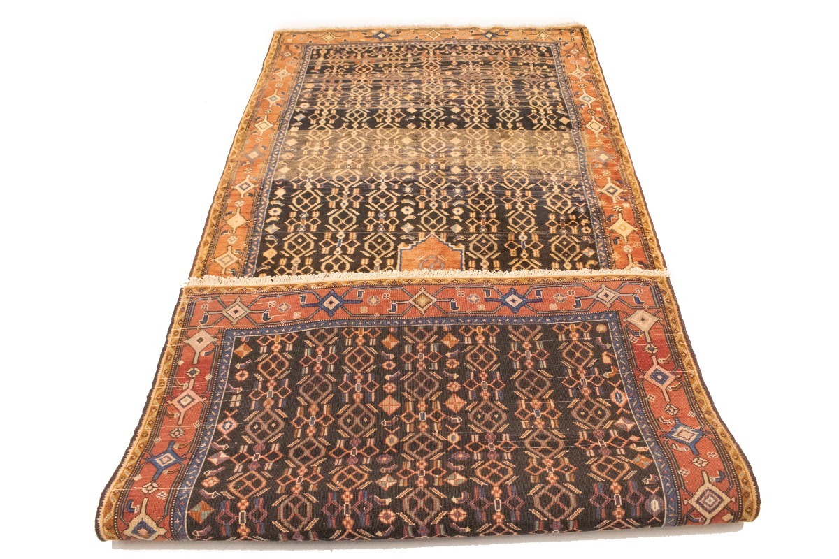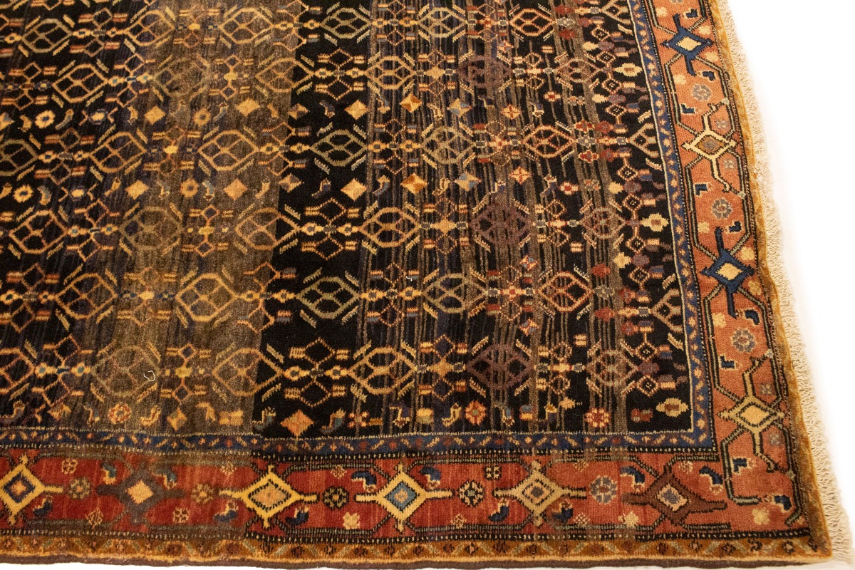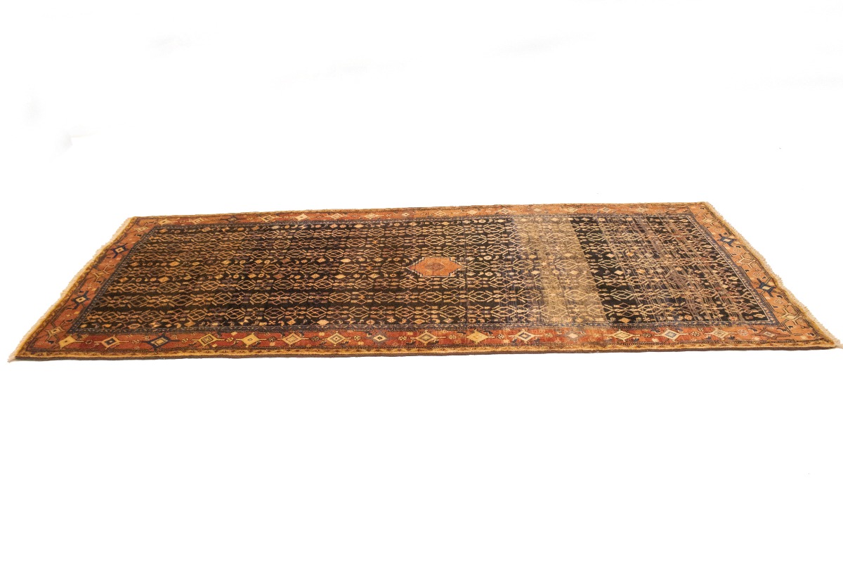 This genuine 4X10 charcoal vintage Persian runner was made by the hands of talented weavers influenced by a variety of gorgeous symmetrical artistic designs, to recreate the aged look of the unique piece with a richness of color and very balanced background field. What set this tribal Oriental area runner from the others are the material and dye used (wool pile and cotton foundation), knot count, antique designs, fantastic grades, and its regional historical connection: it has deep roots, from the story of the people who produced it to the meaning of the symbols and colors displayed across its canvas that have been praised for centuries. This home décor carpet will be completely cozy and inviting that never will go out of style! Also, this Oriental runner would be among your most valuable treasures, it is a great investment that accrues value over time, and it will last a lifetime because was woven with high-quality, all-natural wool; it won’t rip, tear, or shed. Eco-friendly, opulent yet affordable; this Persian rug will give you an extra pop of character to help define your home environment with sophistication and warmth that will capture the eyes and attention of your audience (homeowners, designers, decorators, family and friends). RT-10077