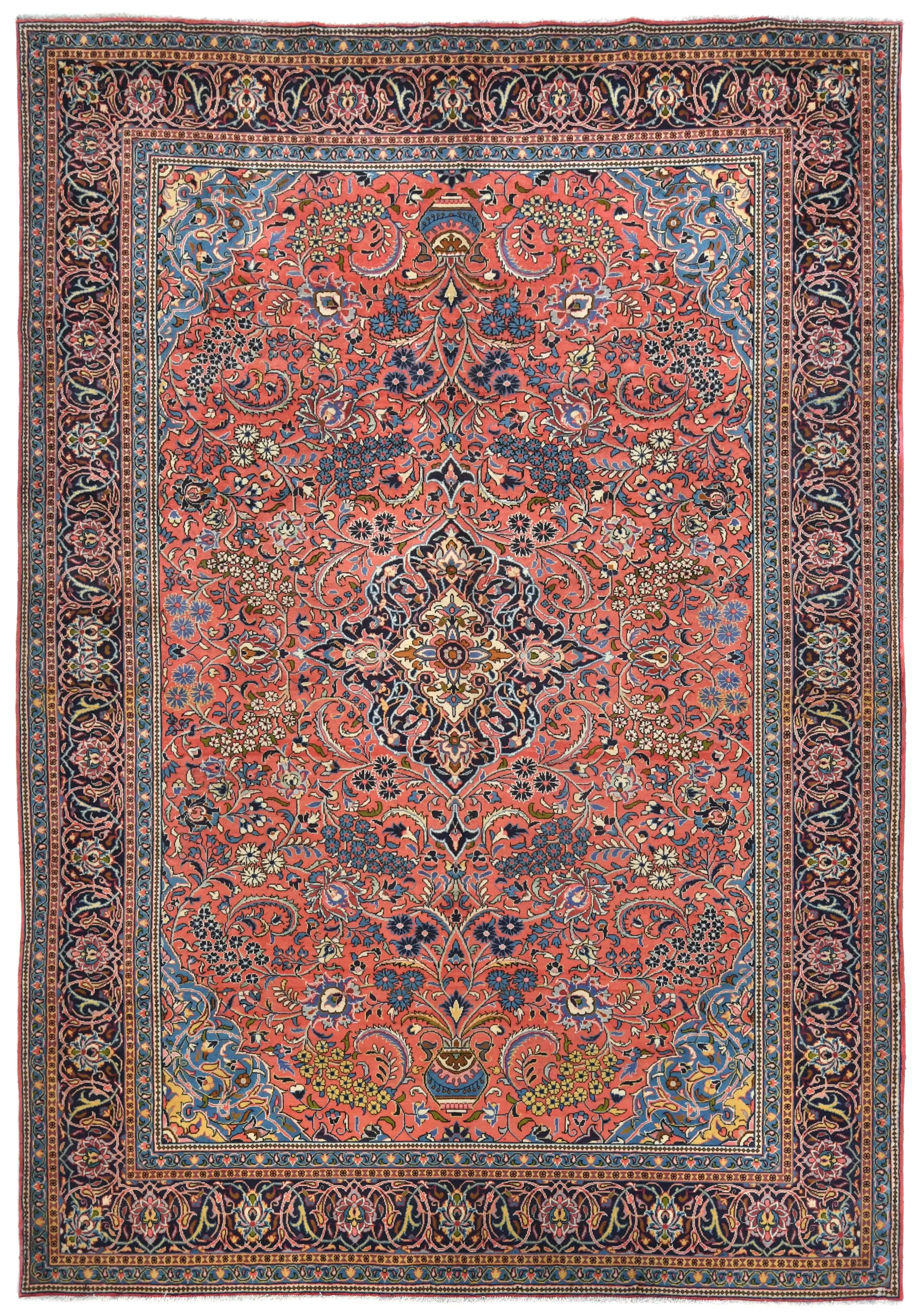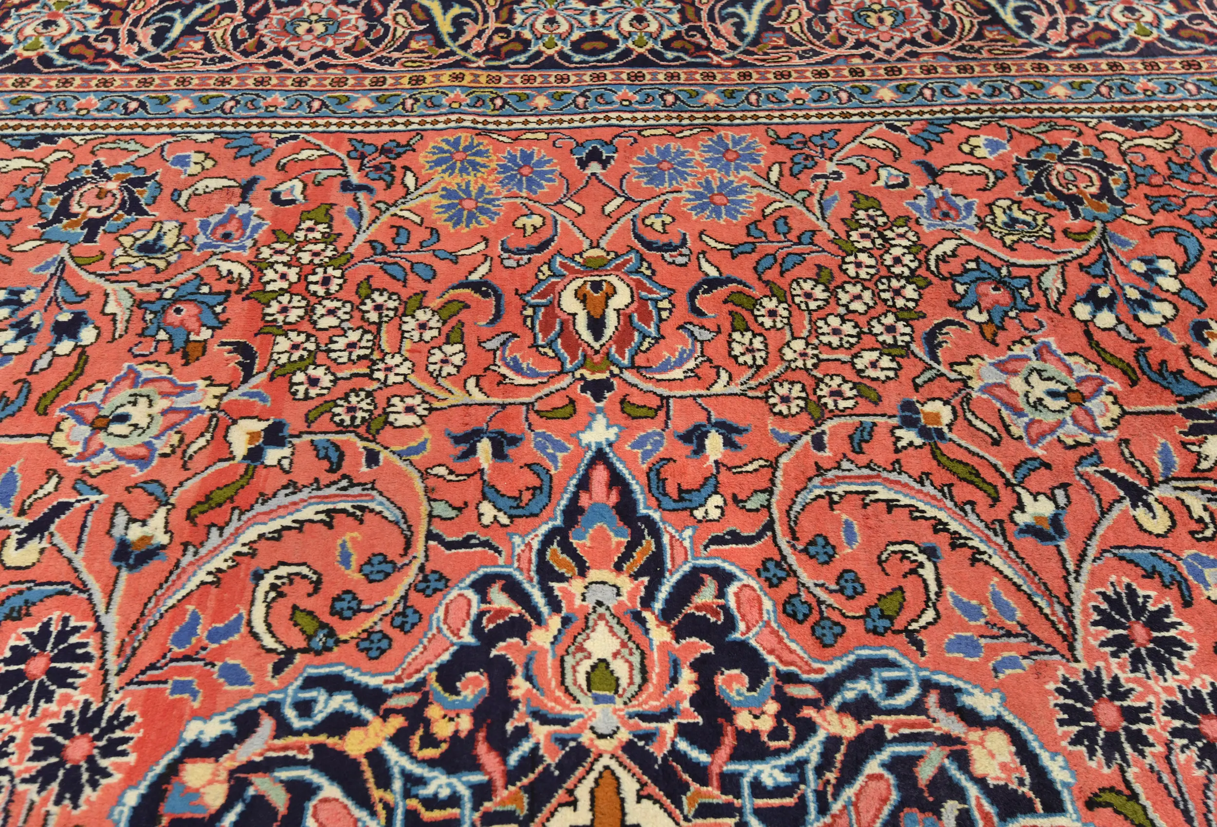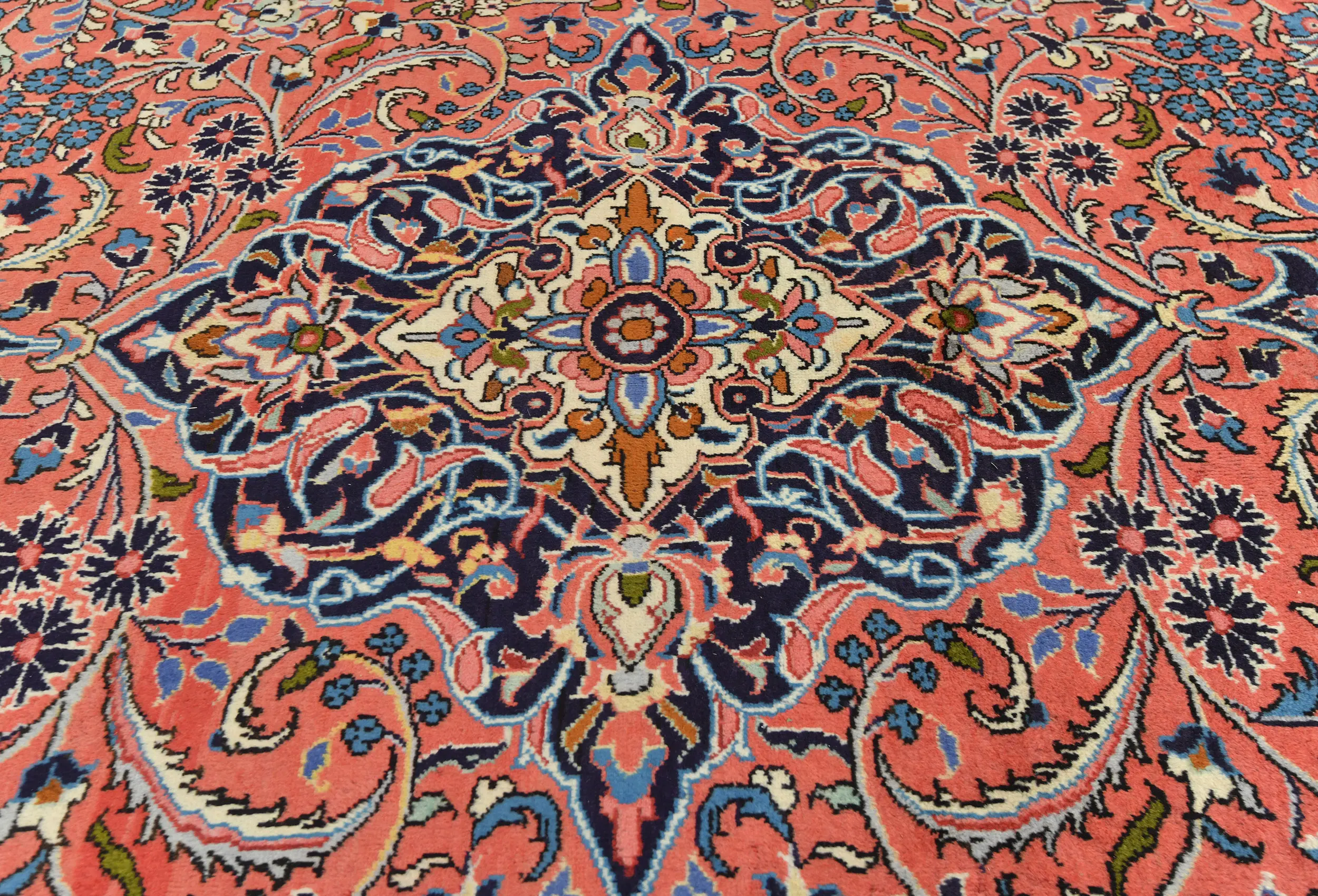 Vintage Coral Pink Floral 9X13 Sarouk Persian Rug
