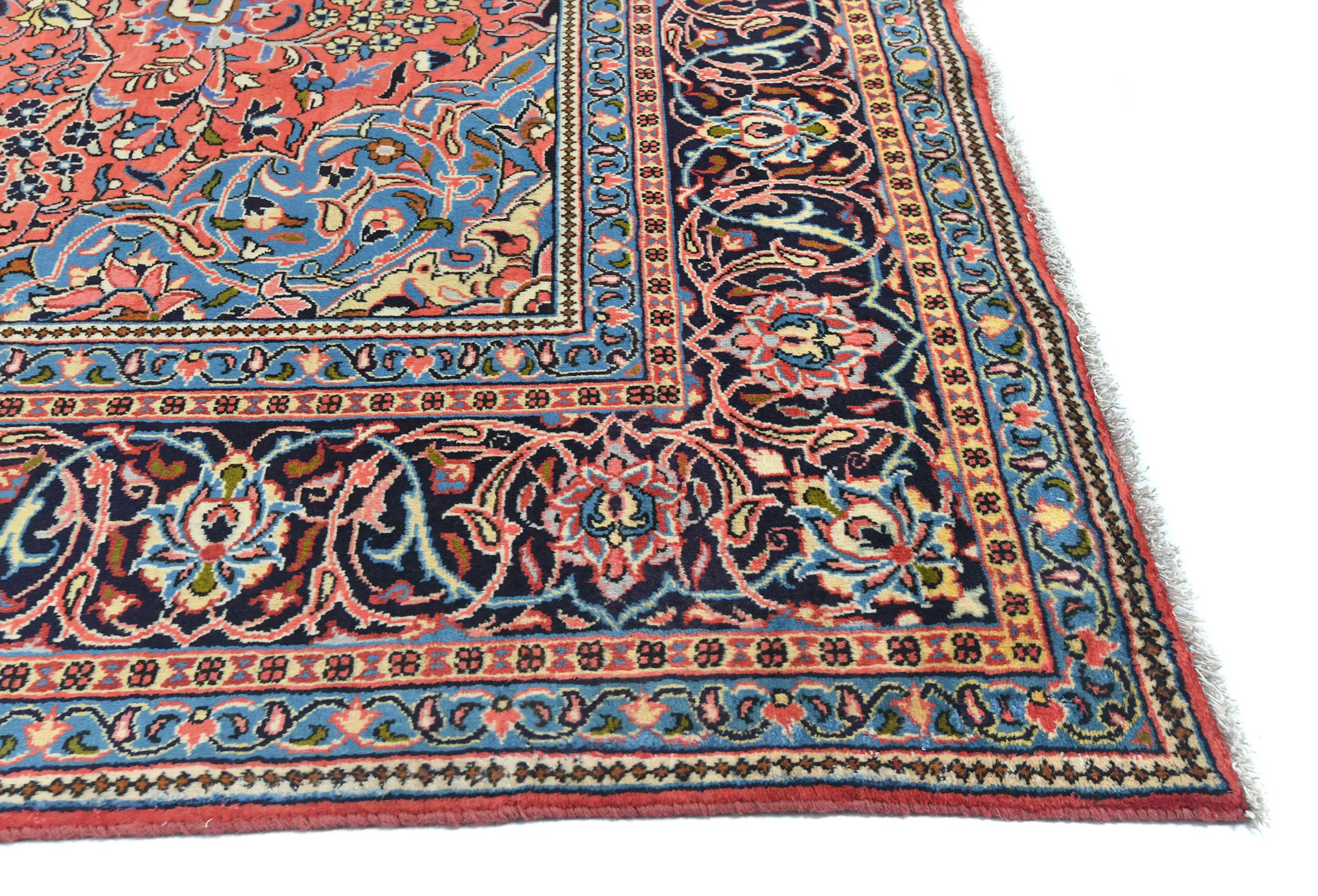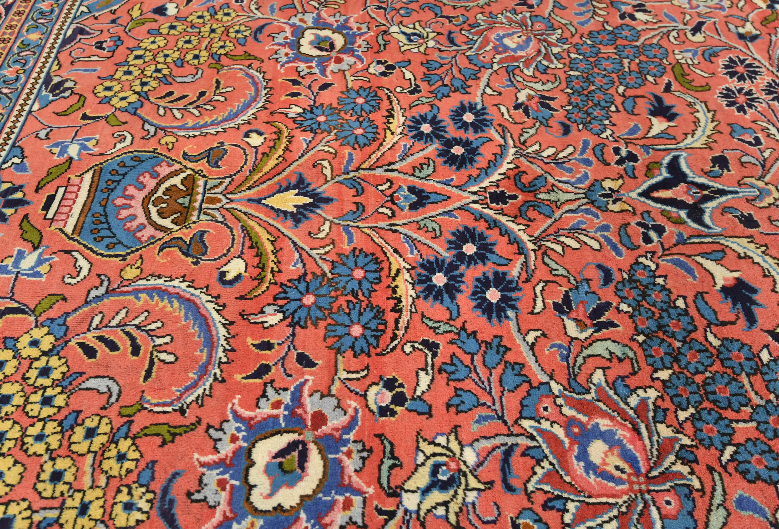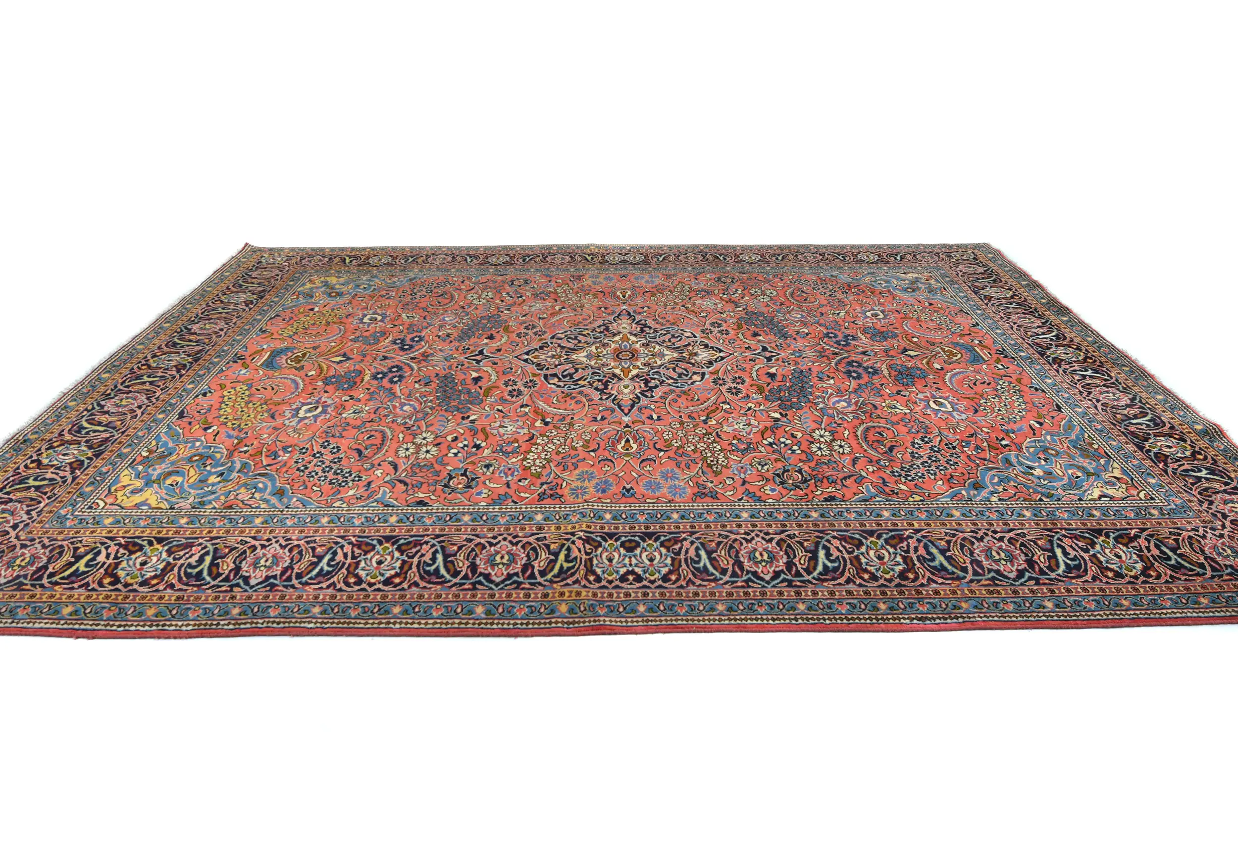 Handmade vintage 9X13 coral pink Persian rug made with vegetable dyes (fine wool pile and cotton foundation), superior knot count, and alluring ancient designs. This Oriental rug never will go out of style and would be among your most valuable treasures.