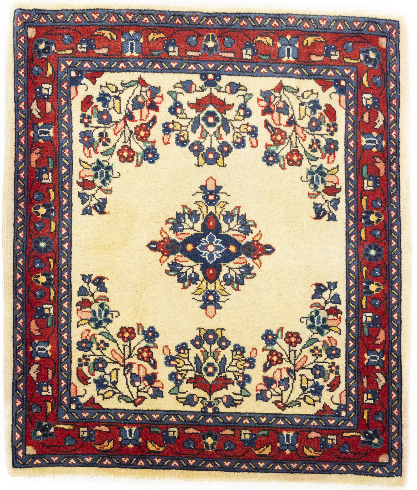 Vintage Cream Floral 2'3X2'7 Sarouk Persian Rug