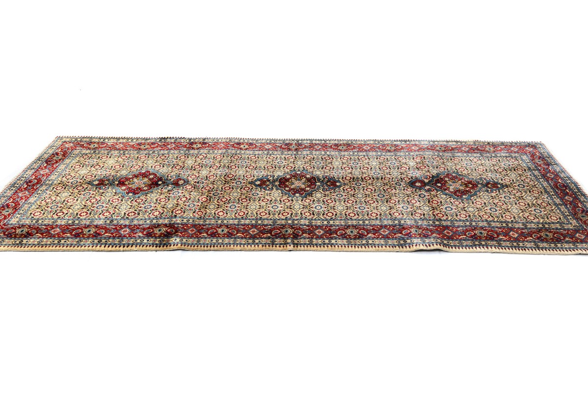 This authentic 3'4X9'6 cream vintage Persian runner was masterly knotted by the hands of weavers inspired by a variety of wonderful artistic designs, to recreate the aged look of the original piece with a richness of color and intricate patterned background field. What set this tribal Oriental area runner from the others are the material and dye used (wool pile and cotton foundation), knot count, antique designs, fantastic grades, and its regional historical connection: it has deep roots, from the story of the people who produced it to the meaning of the symbols and colors displayed across its canvas that have been praised for centuries. This home décor carpet will be completely cozy and inviting that never will go out of style!