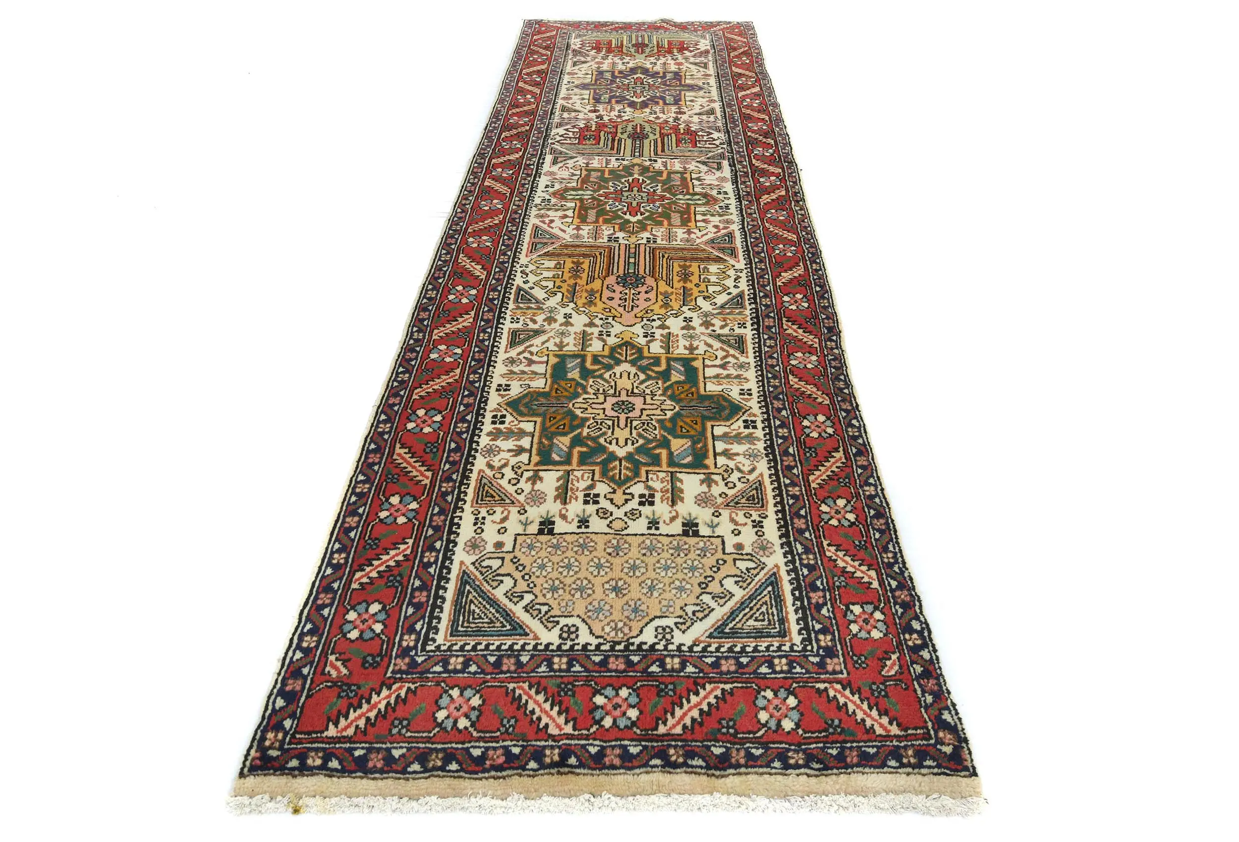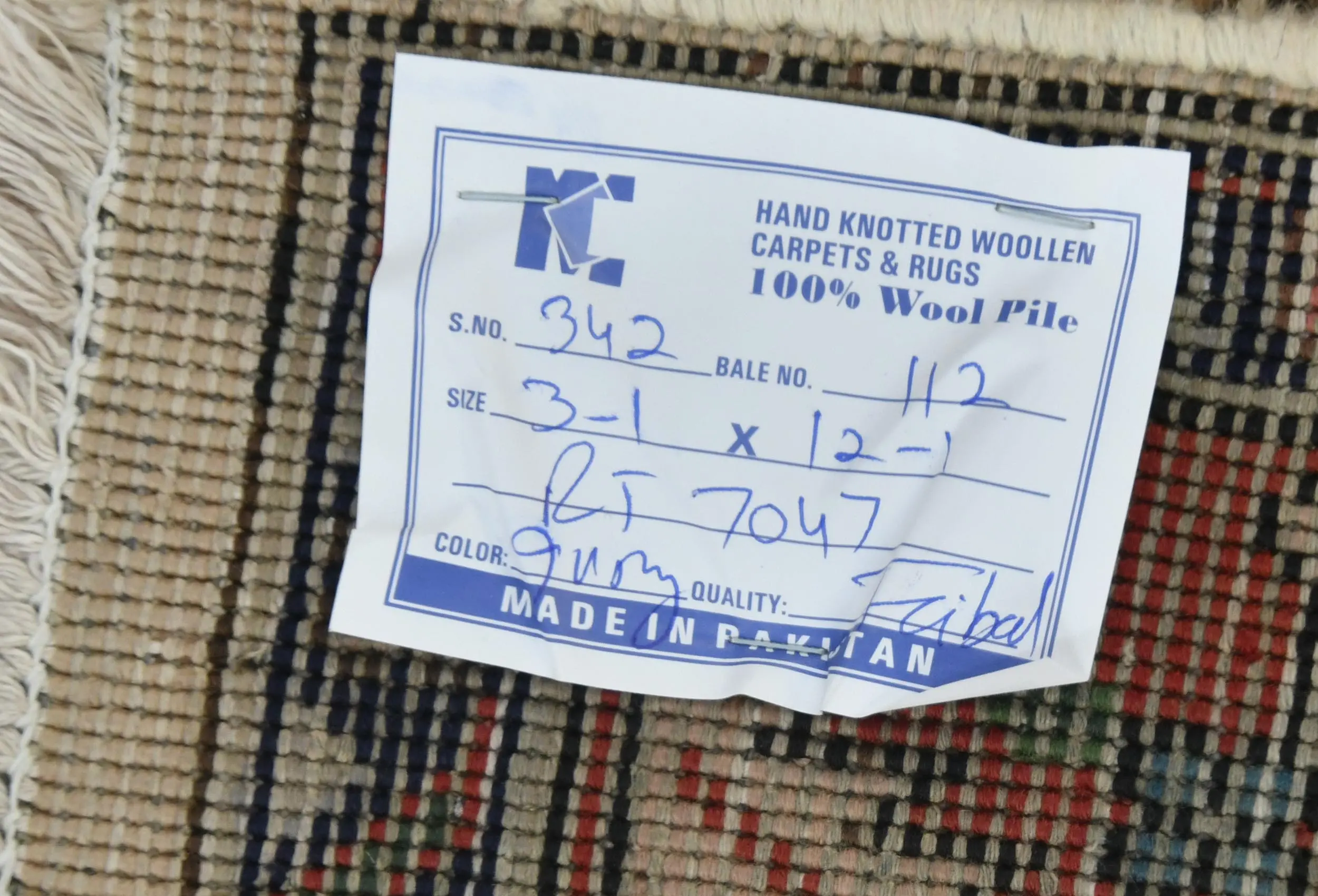 Handmade vintage 3X12 cream Persian runner made with vegetable dyes (fine wool pile and cotton foundation), superior knot count, and alluring ancient designs. This Oriental runner never will go out of style and would be among your most valuable treasures.