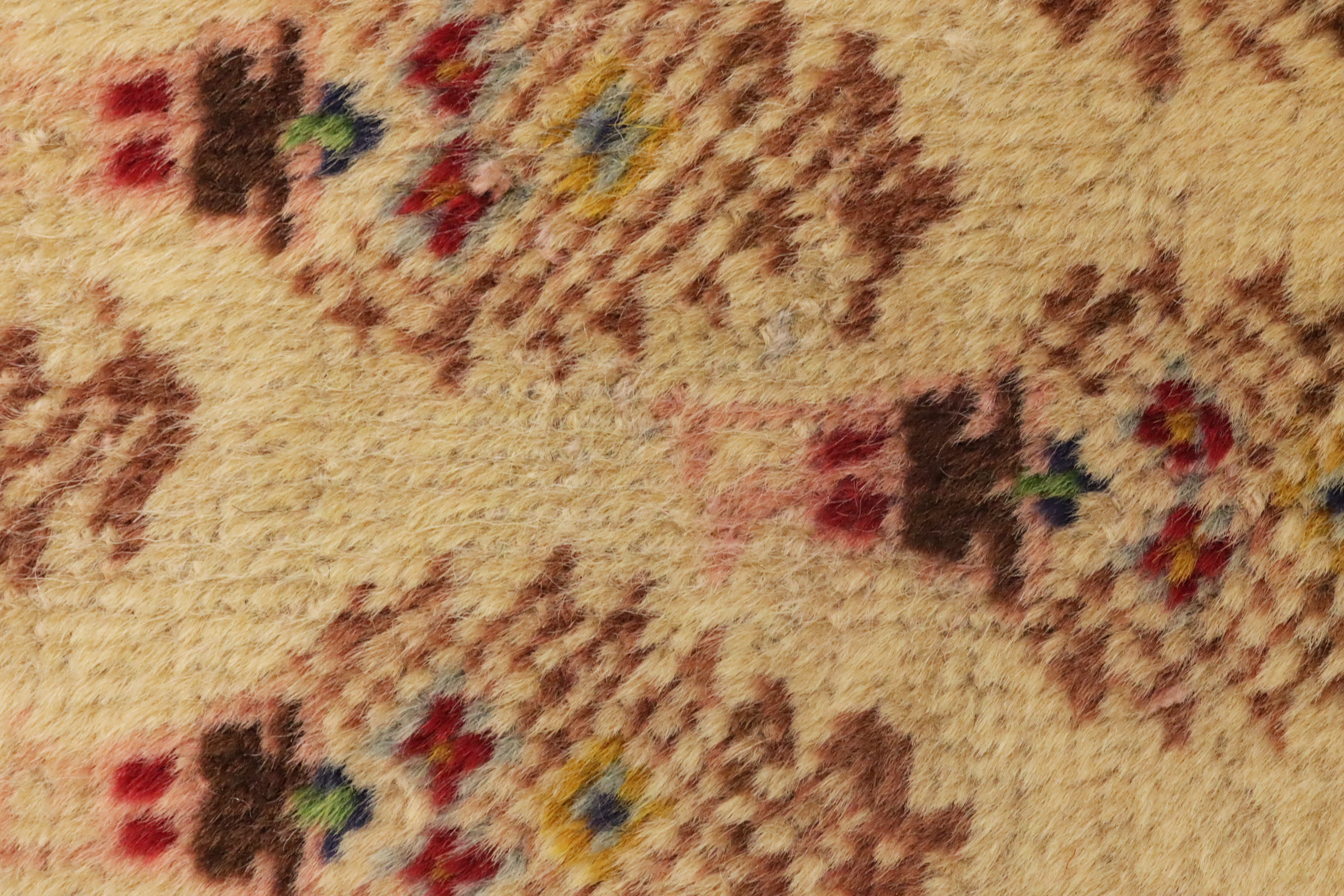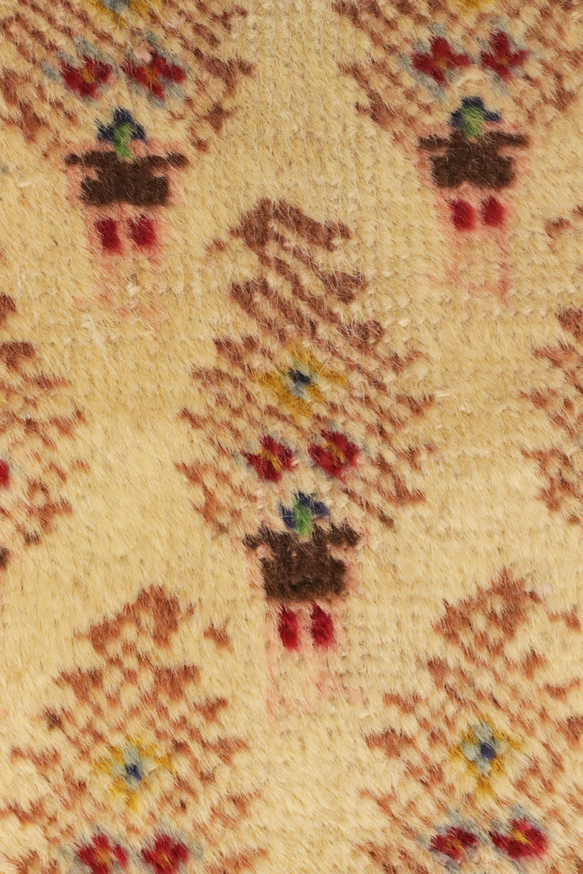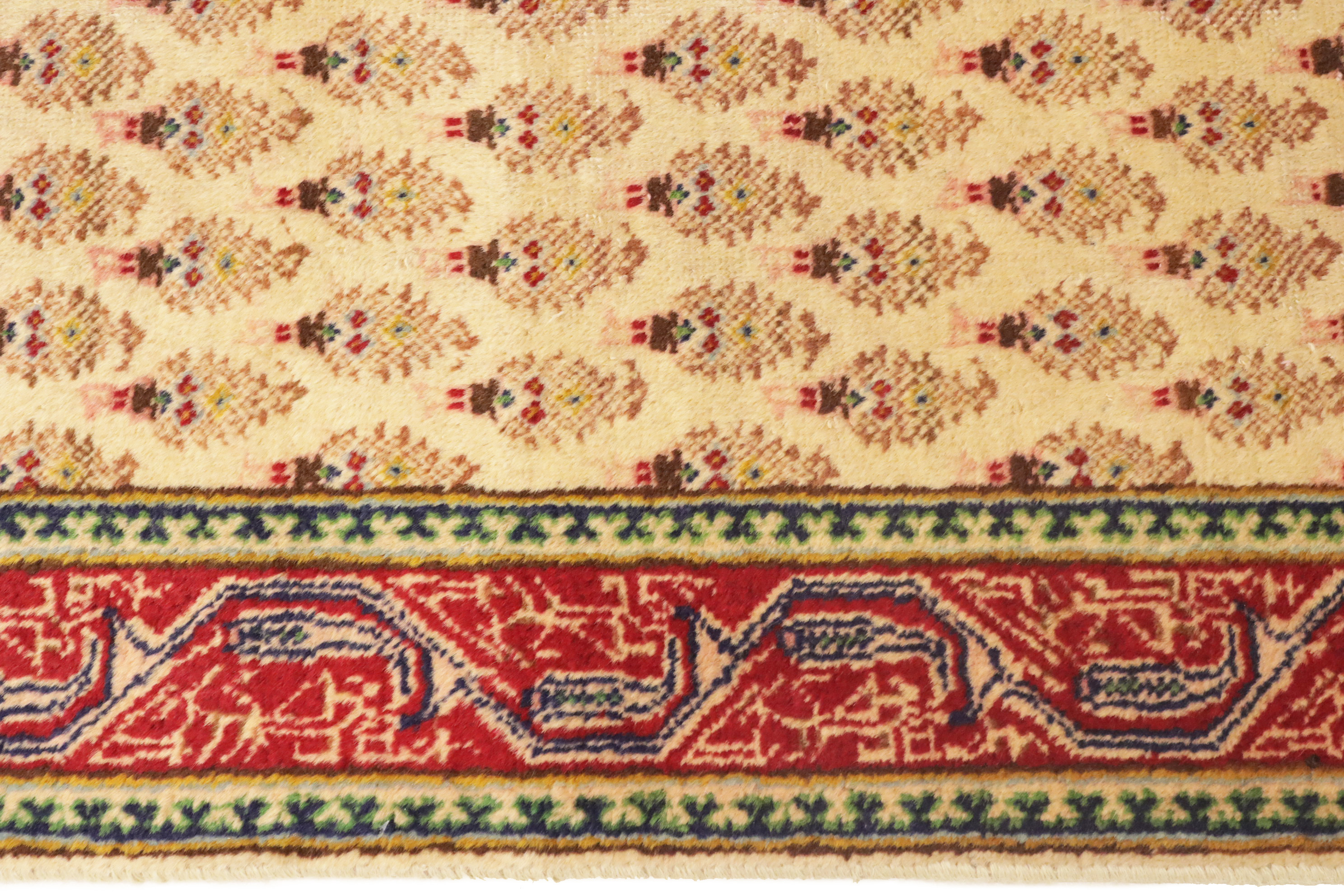 This original 2'6X7'8 cream vintage Persian runner was well-constructed by the hands of master weavers motivated by a variety of stunning artistic designs, to recreate the aged look of the exceptional piece with a richness of color and developed decorative background field. What set this tribal Oriental area runner from the others are the material and dye used (wool pile and cotton foundation), knot count, ancient designs, fantastic grades, and its regional historical connection: it has deep roots, from the story of the people who produced it to the meaning of the symbols and colors displayed across its canvas that have been praised for centuries. This home décor carpet will be completely cozy and inviting that never will go out of style!