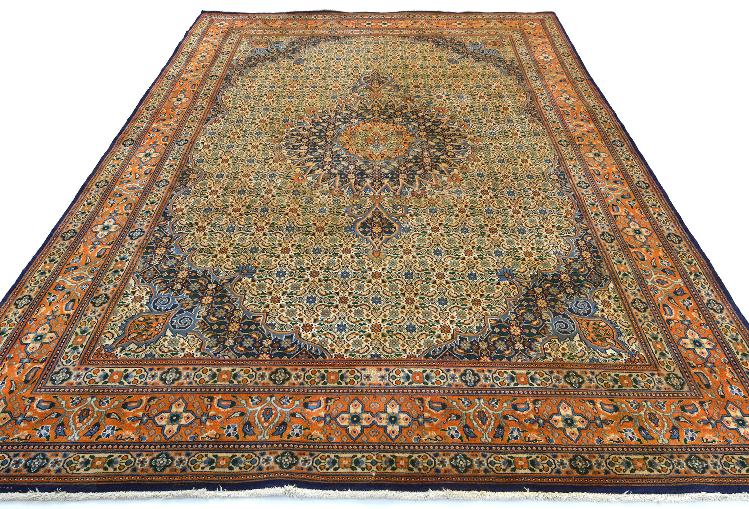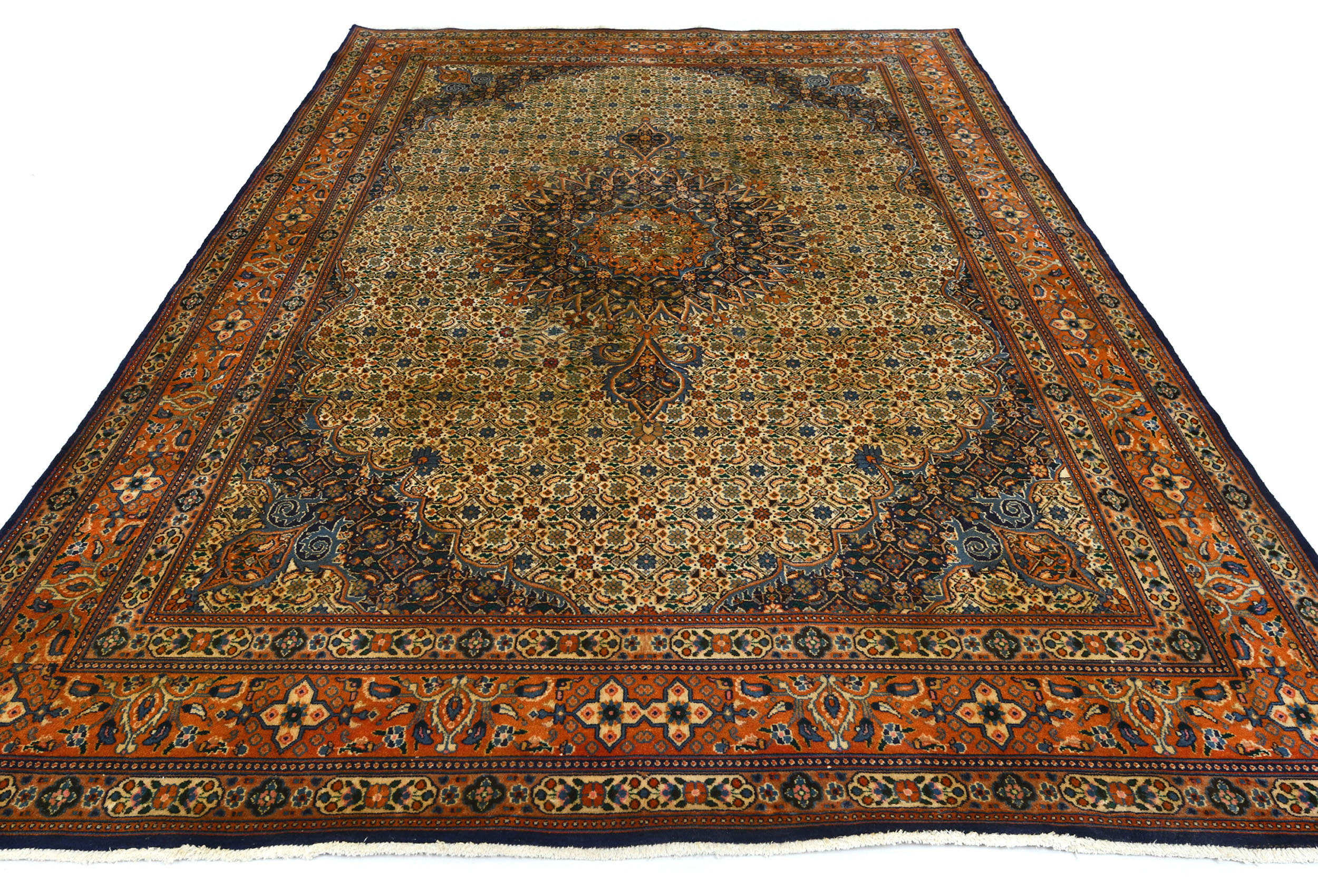 Handmade vintage 6'5X10 cream Persian rug made with natural dyes (fine wool pile and cotton foundation), superior knot count, and alluring ancient designs. This Oriental rug never will go out of style and would be among your most valuable treasures.