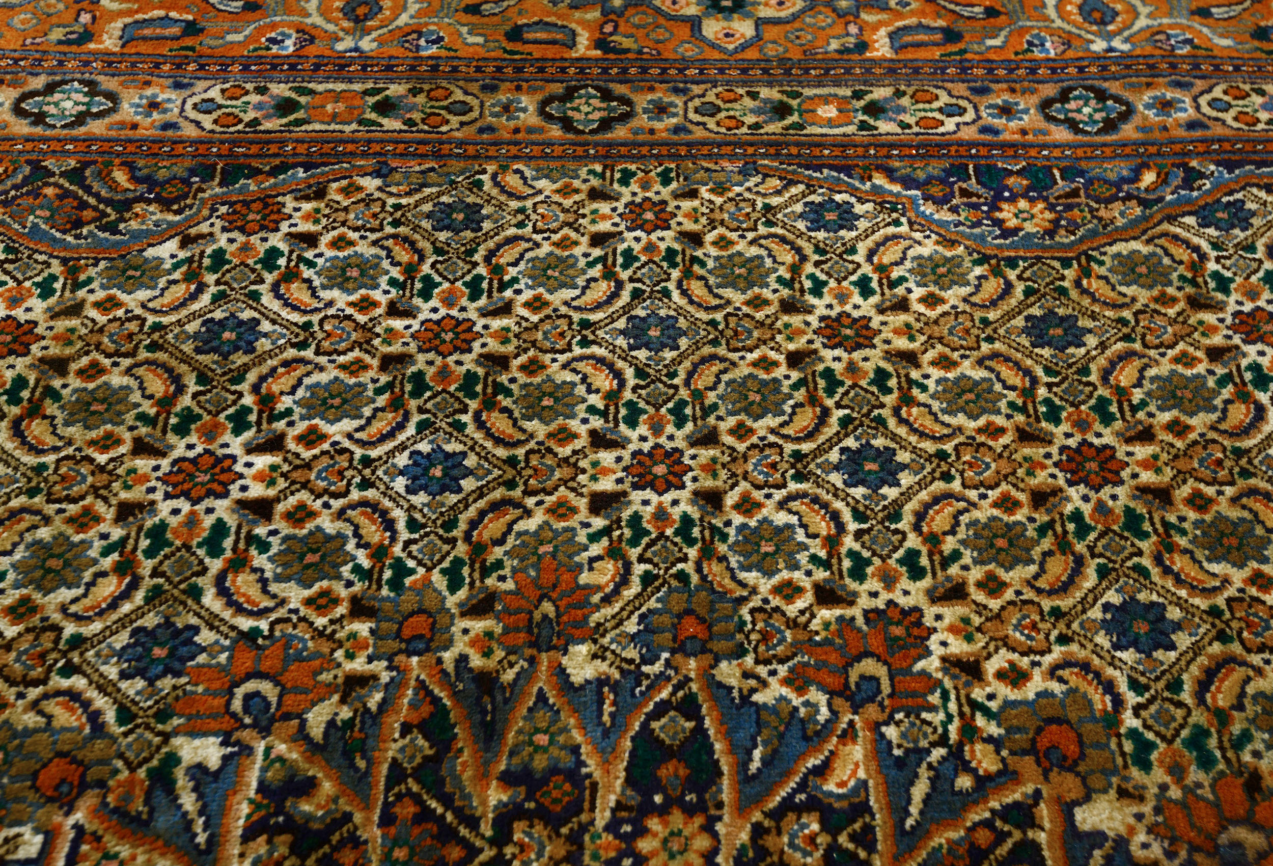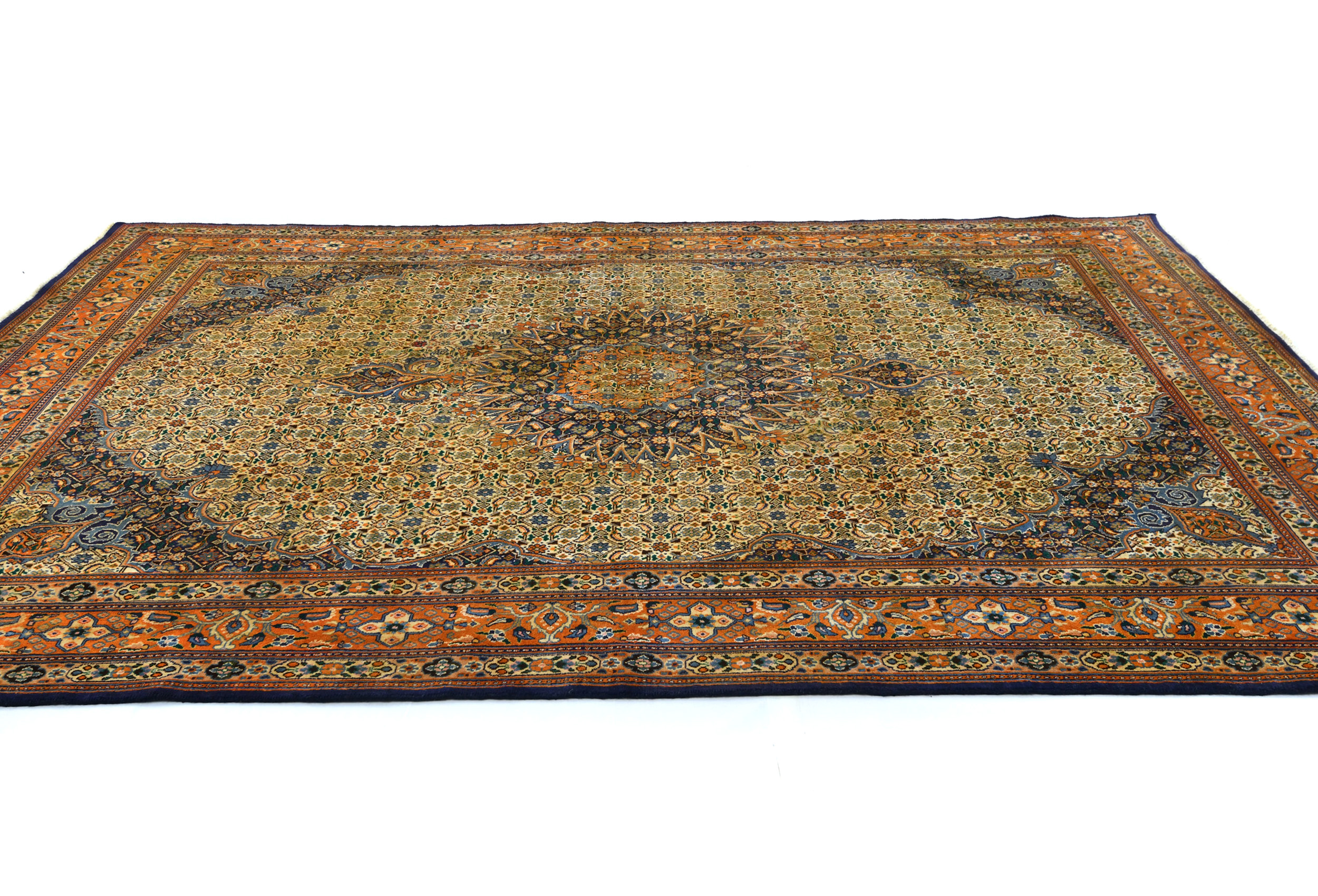 This genuine 6'5X10 cream vintage Persian rug was made by the hands of talented weavers influenced by a variety of gorgeous symmetrical artistic designs, to recreate the aged look of the unique piece with a richness of color and very balanced floral background field. What set this traditional Oriental area rug from the others are the material and dye used (wool pile and cotton foundation), knot count, antique designs, fantastic grades, and its regional historical connection: it has deep roots, from the story of the people who produced it to the meaning of the symbols and colors displayed across its canvas that have been praised for centuries. This classic home décor carpet will be completely cozy and inviting that never will go out of style! Also, this Oriental rug would be among your most valuable treasures, it is a great investment that accrues value over time, and it will last a lifetime because was woven with high-quality, all-natural wool; it won’t rip, tear, or shed. Eco-friendly, opulent yet affordable; this Persian rug will give you an extra pop of character to help define your home environment with sophistication and warmth that will capture the eyes and attention of your audience (homeowners, designers, decorators, family and friends). EB-7024