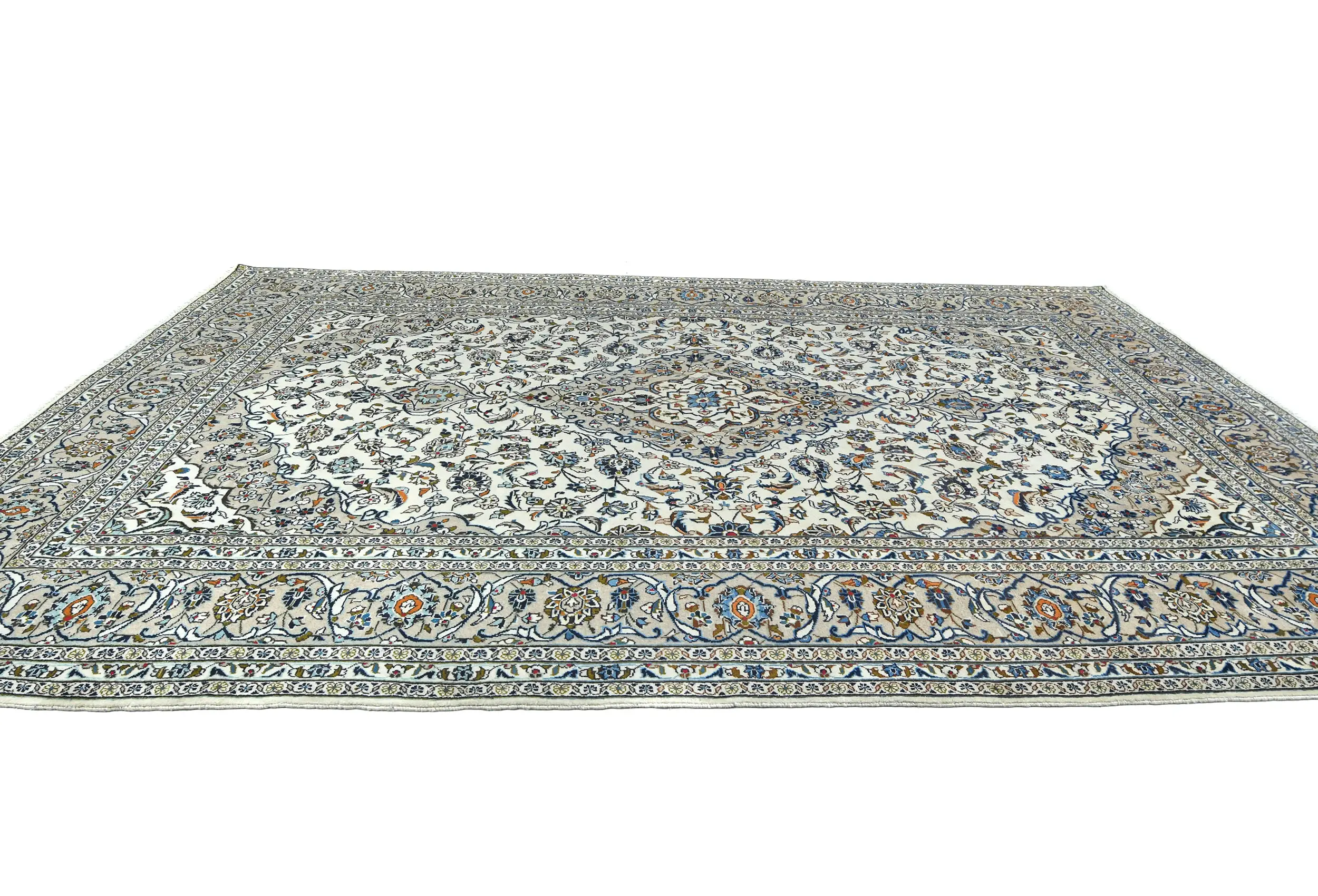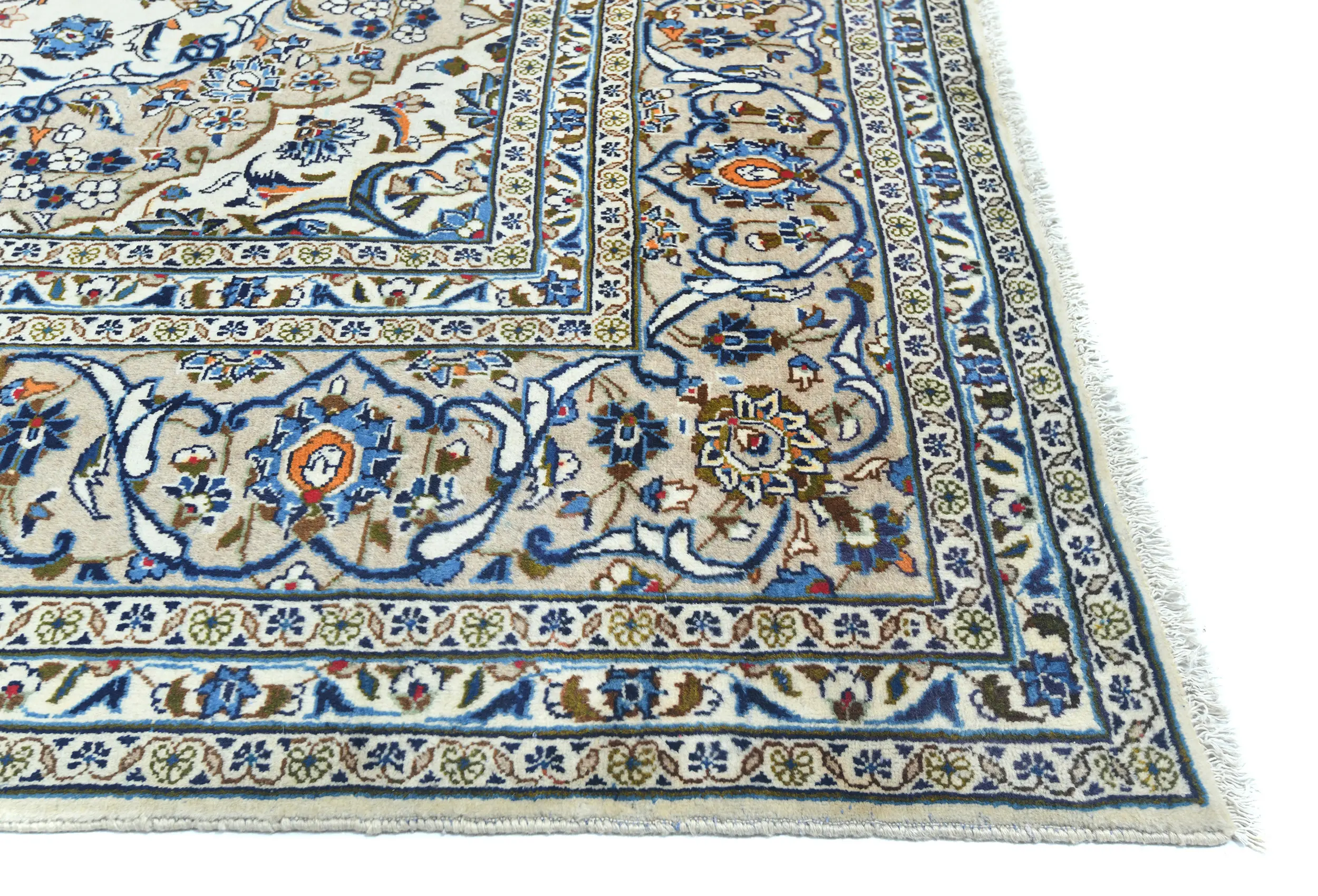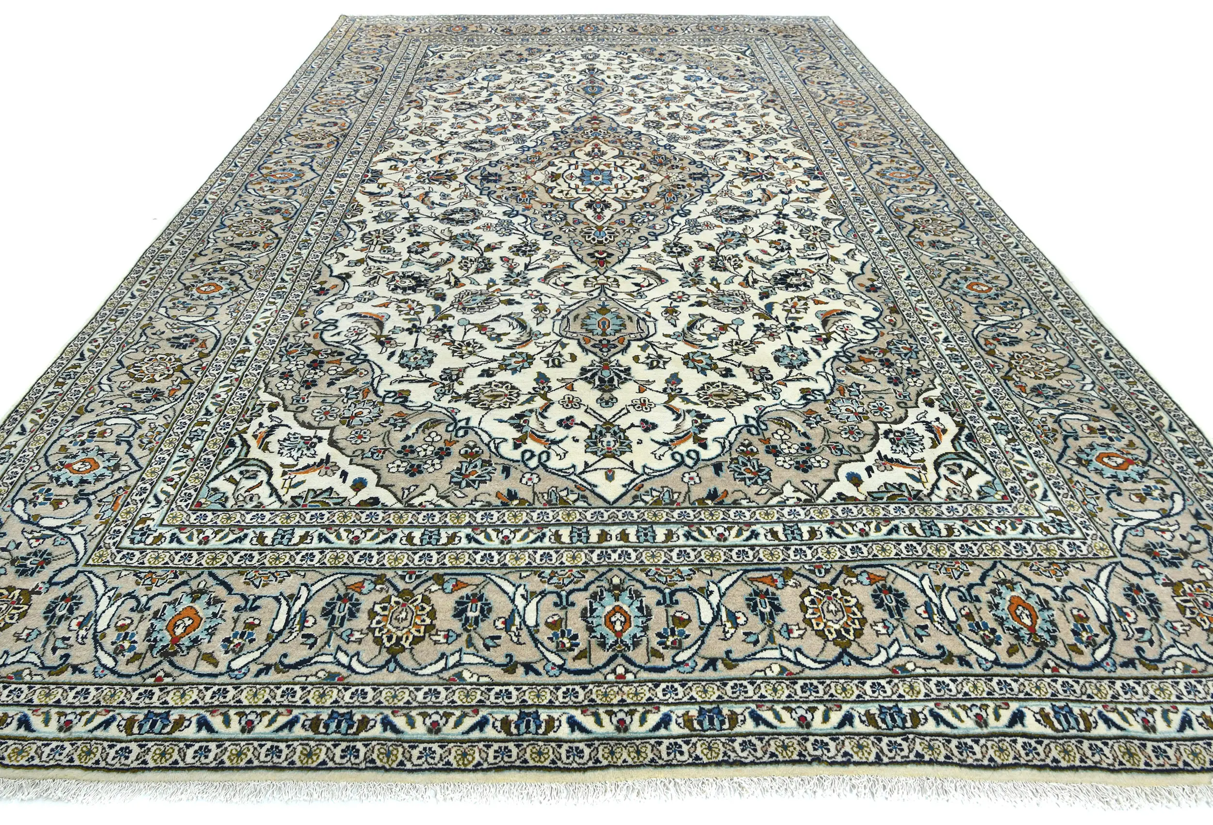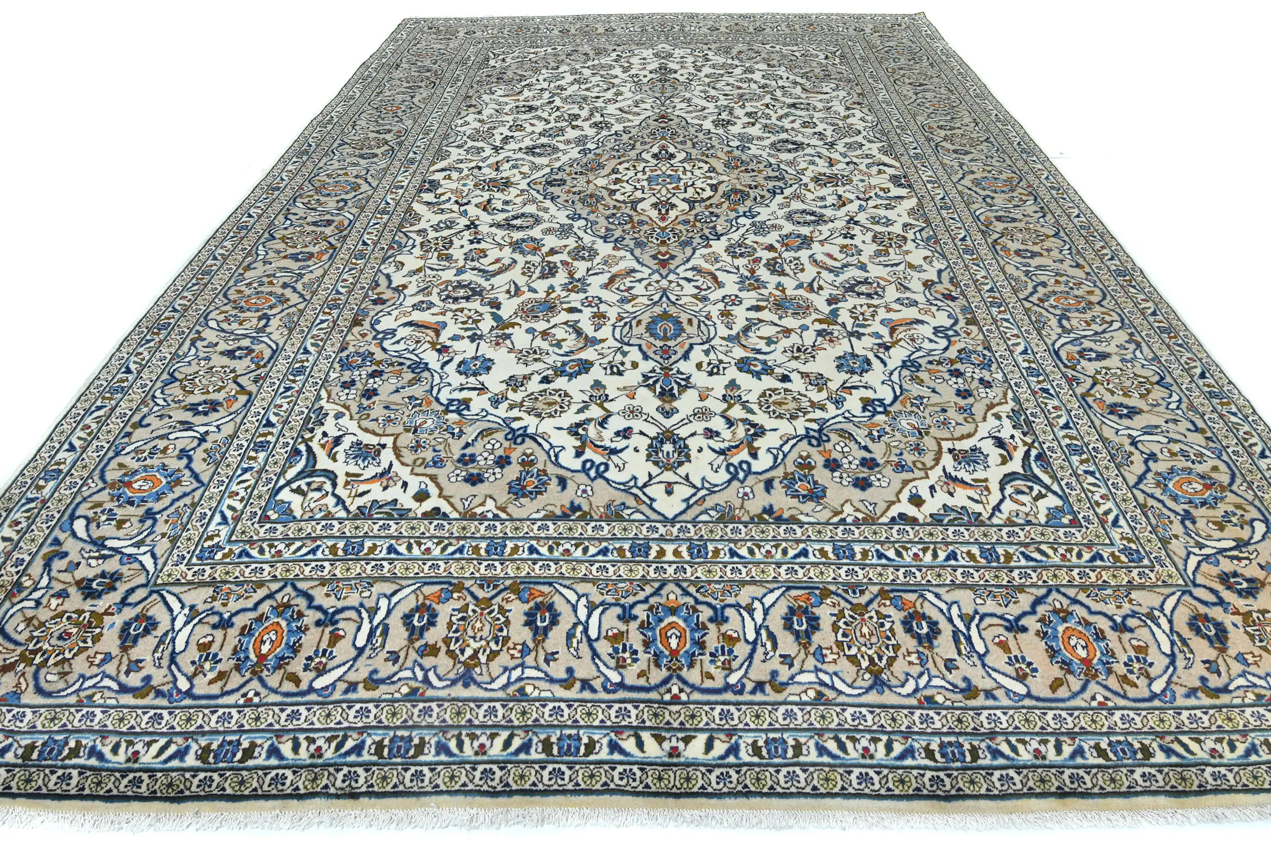 Vintage Cream Floral Traditional 10X14 Kashan Persian Rug