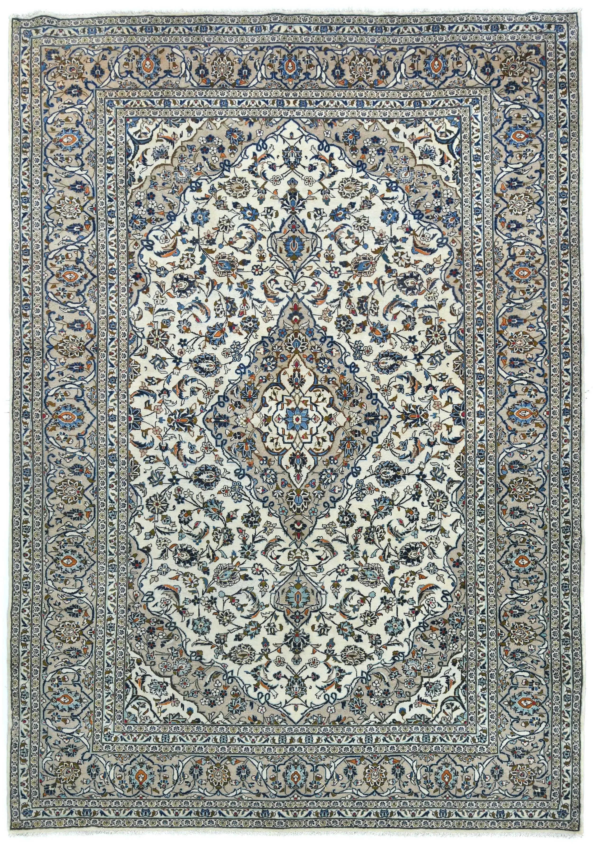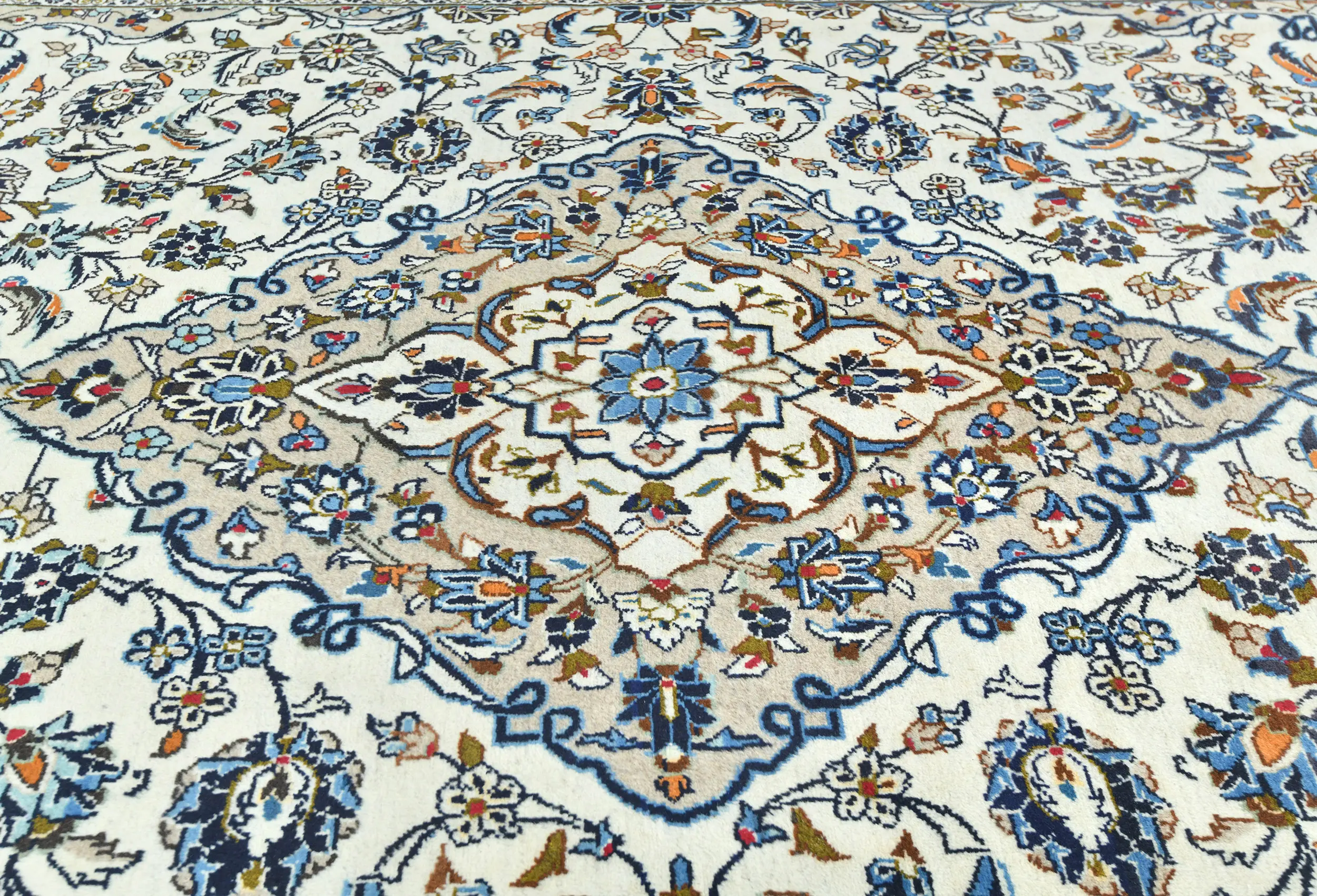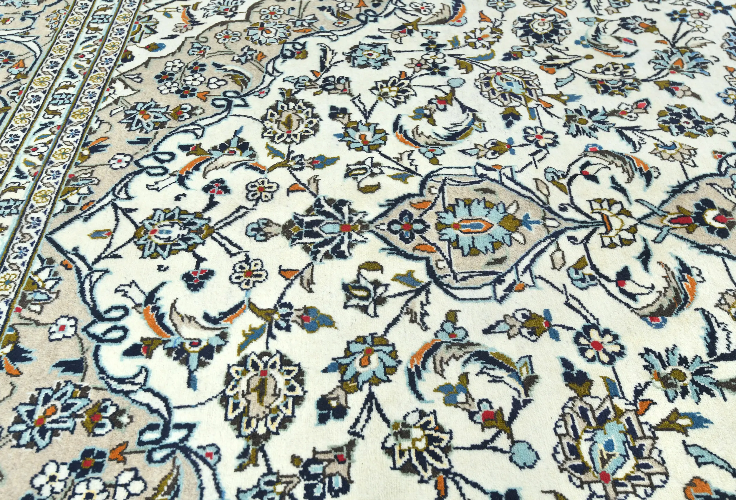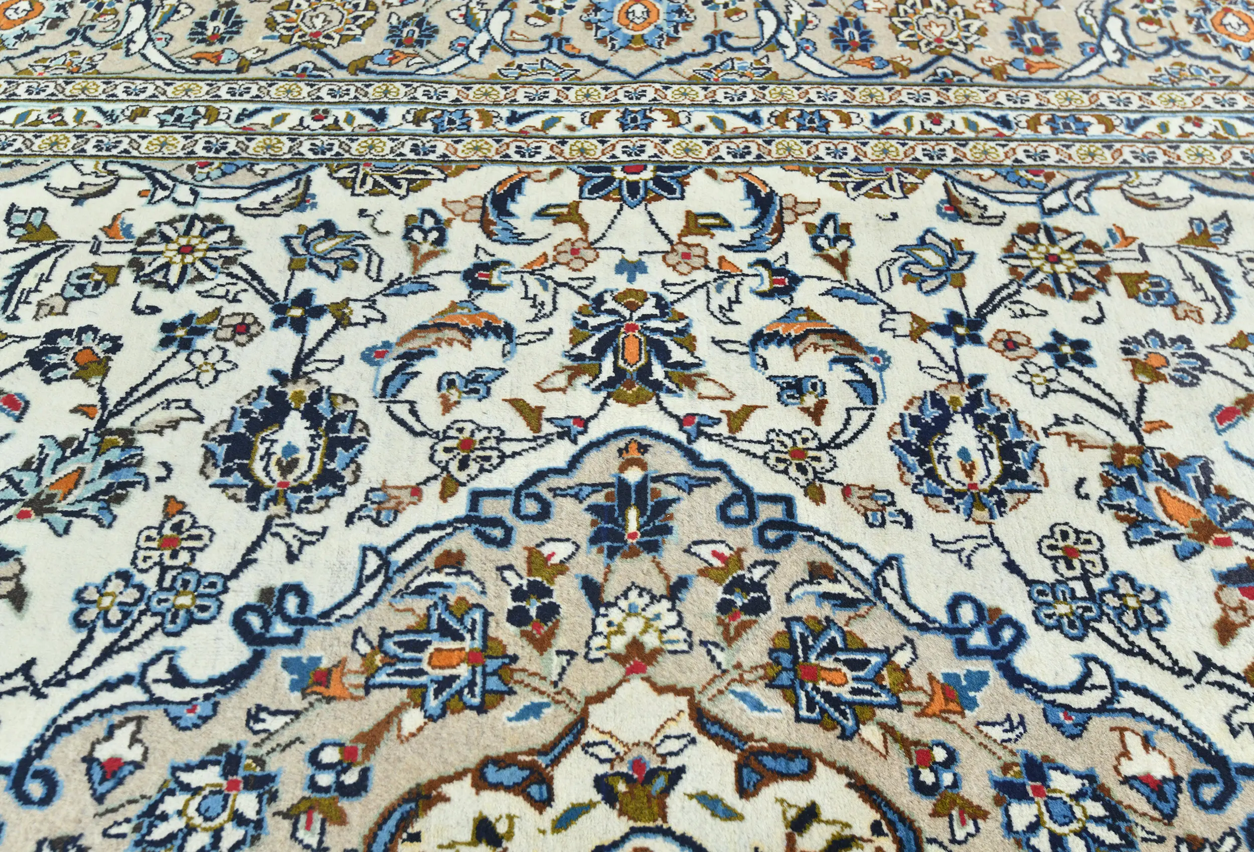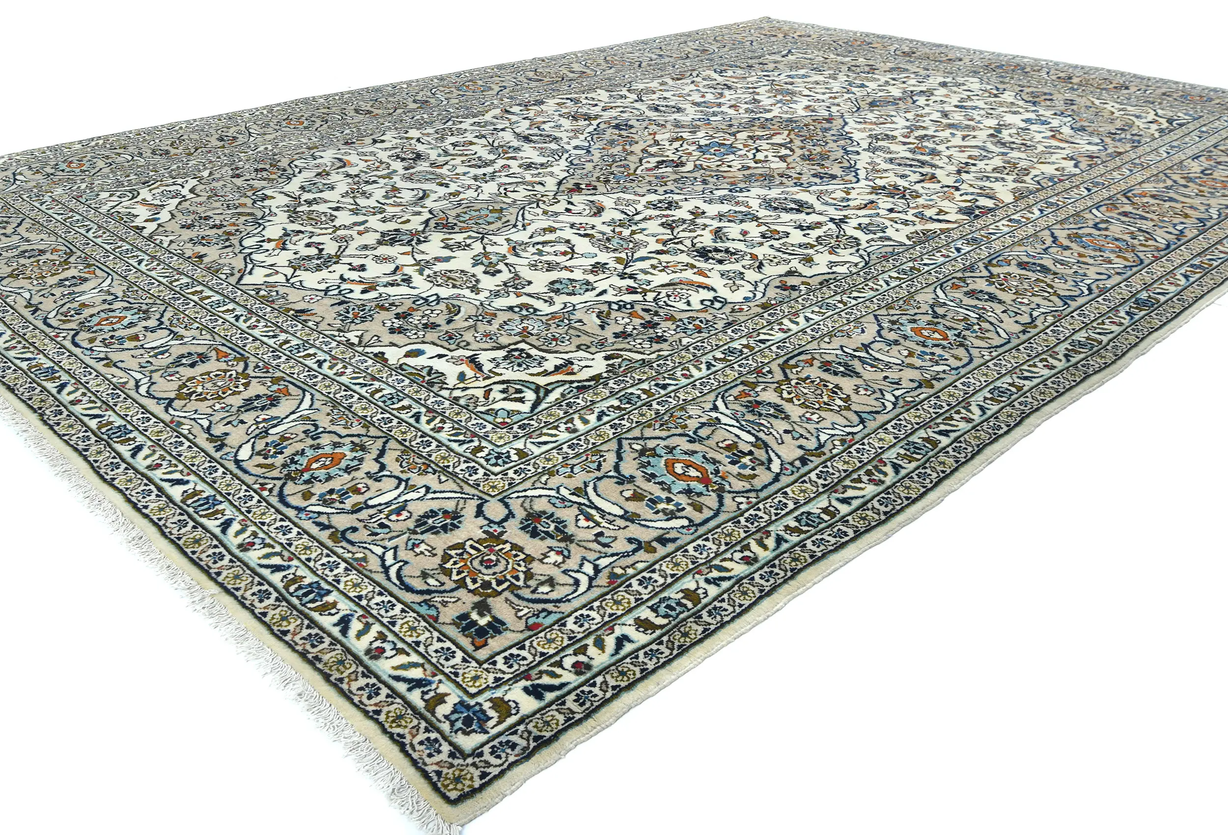 Vintage Cream Floral Traditional 10X14 Kashan Persian Rug