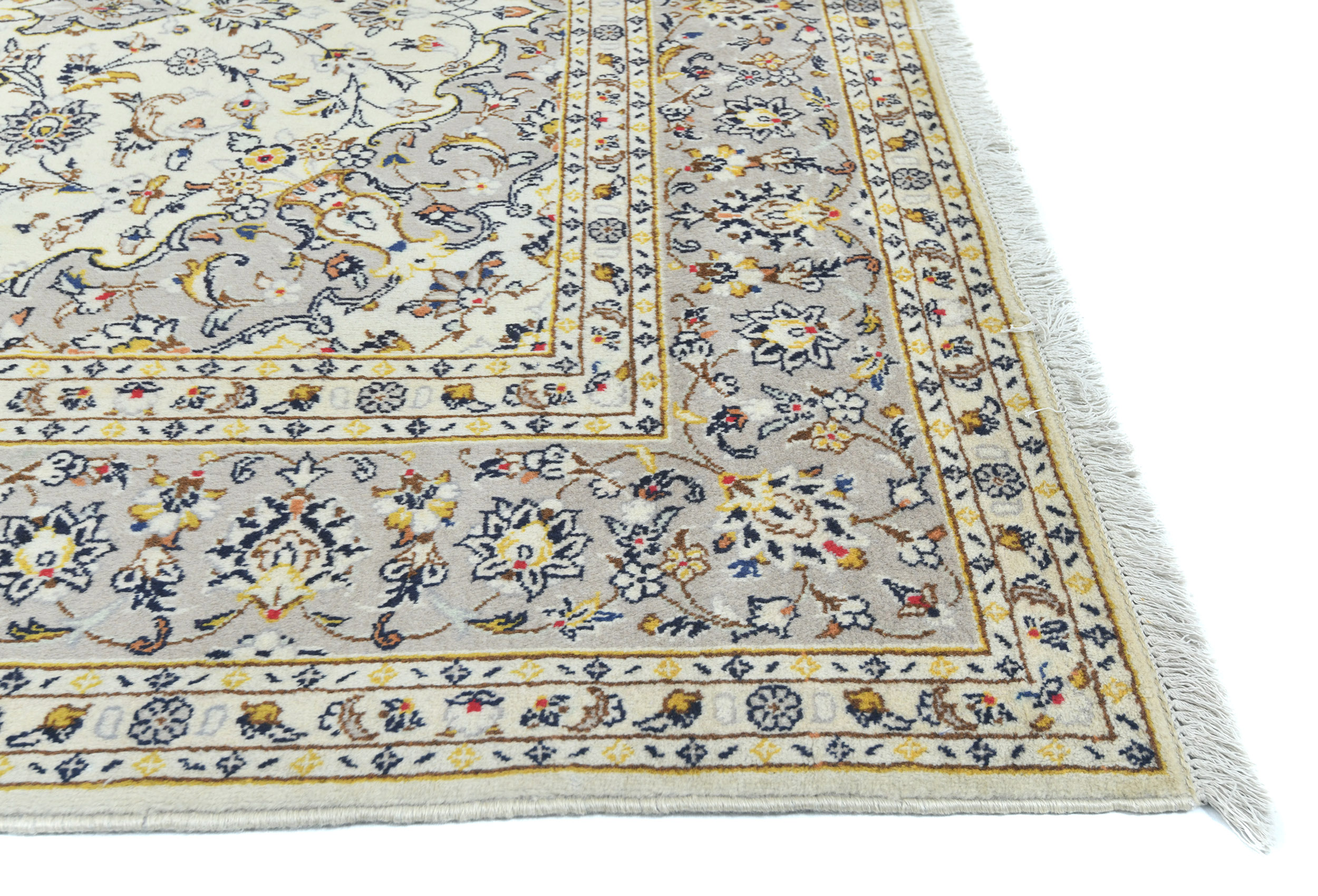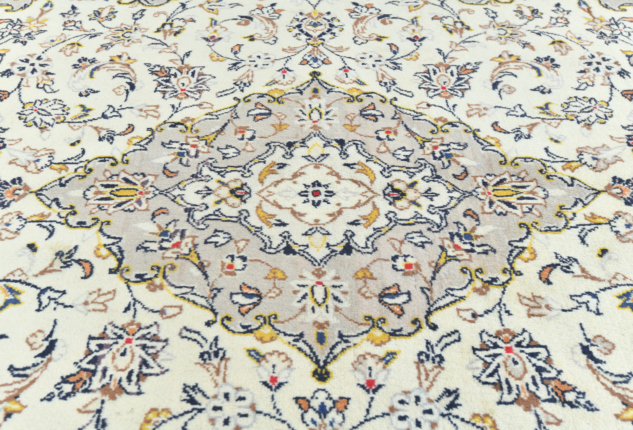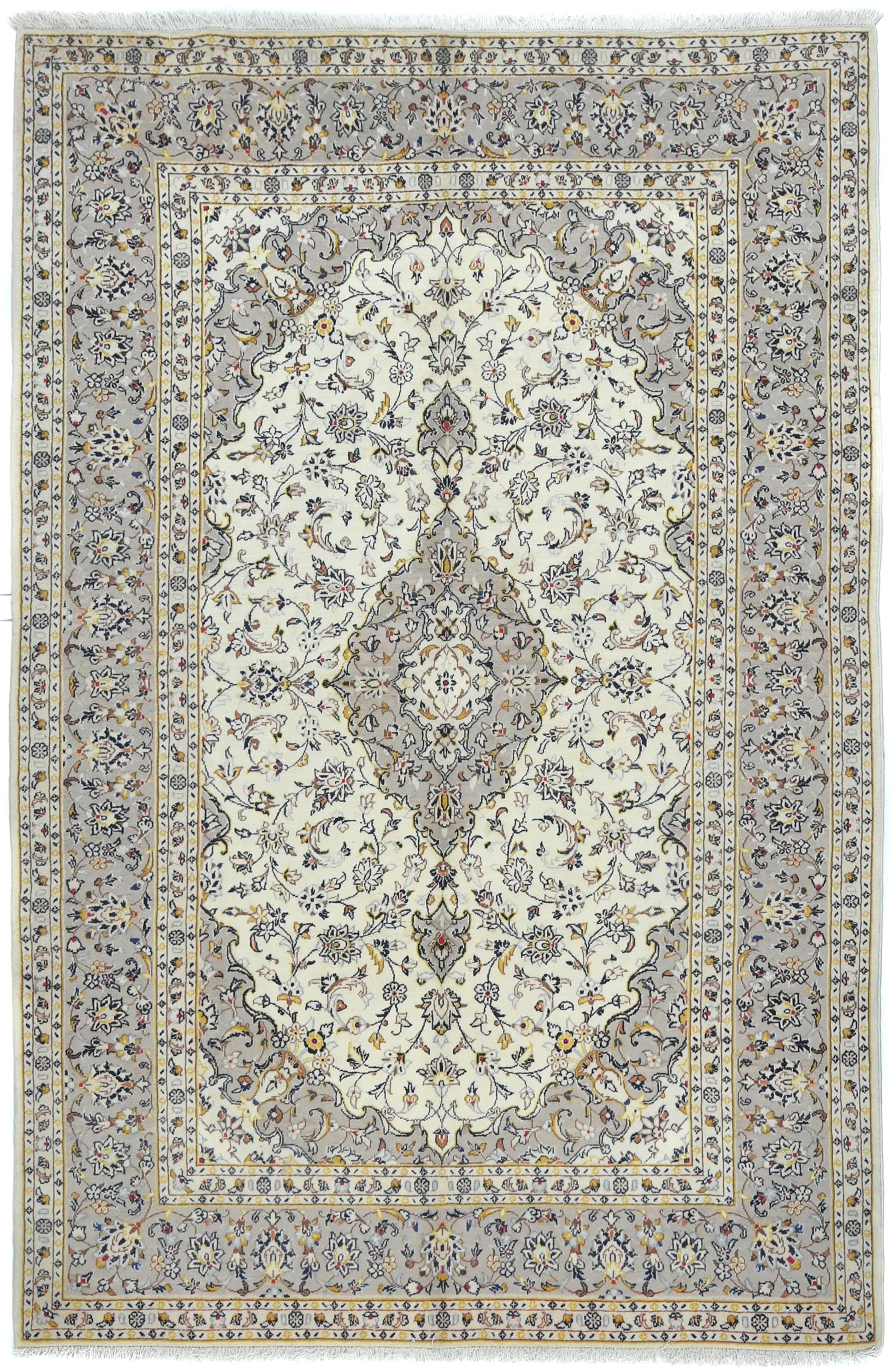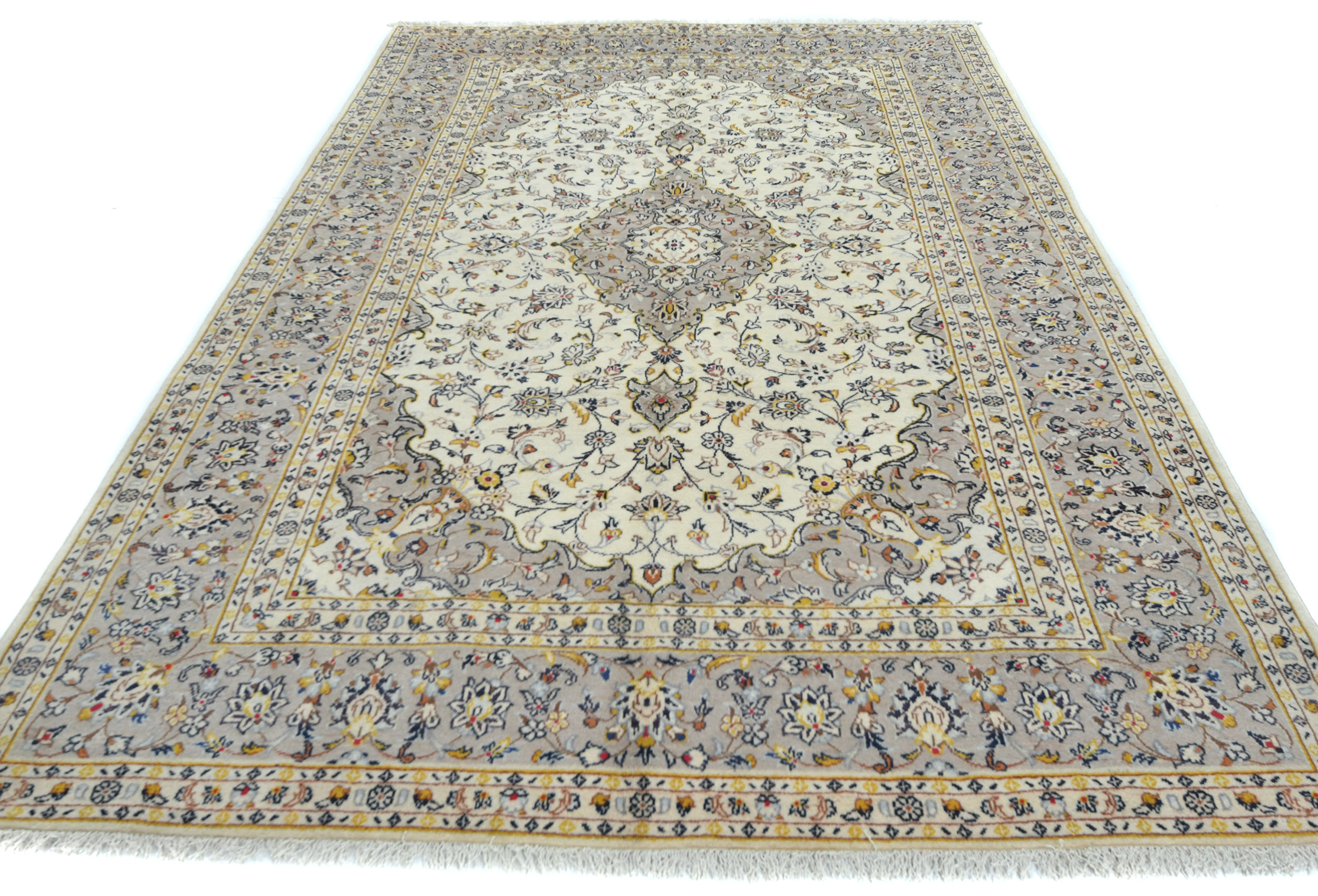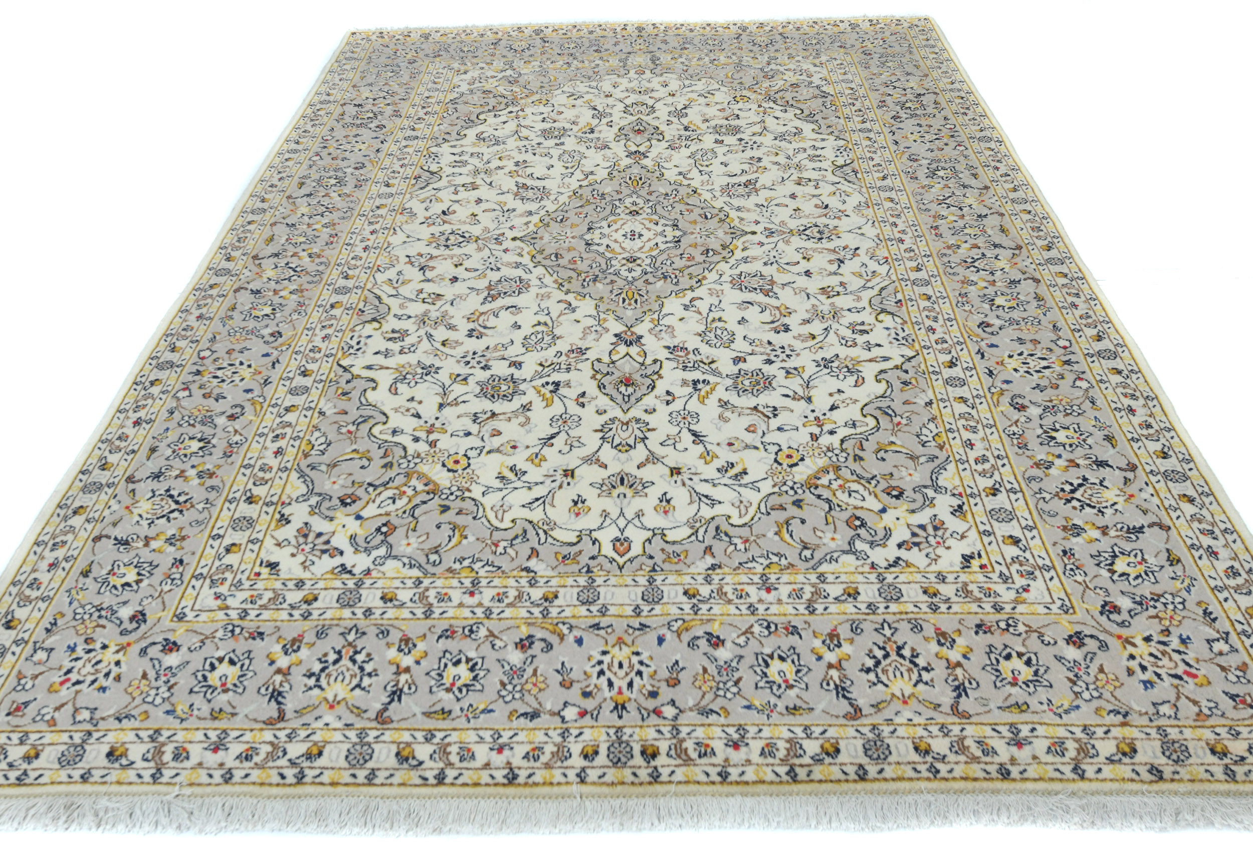 Vintage Cream Floral Traditional 6'4X9'6 Kashan Persian Rug