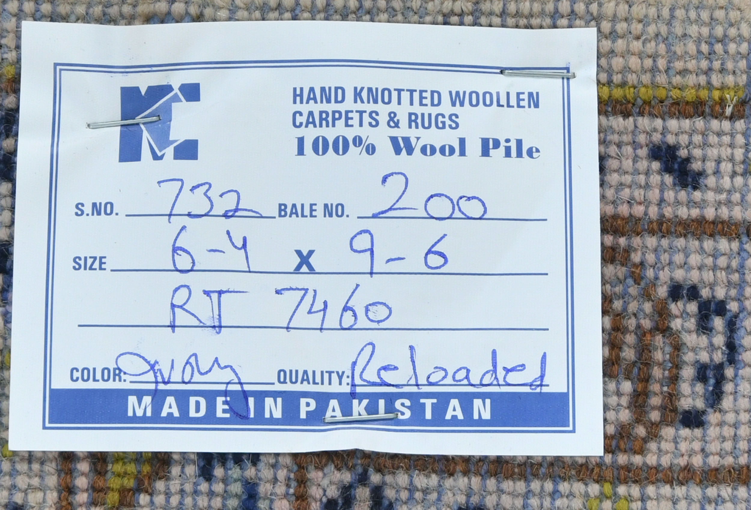 This genuine 6'4X9'6 cream vintage Persian rug was made by the hands of gifted weavers inspired by a variety of spectacular artistic designs, to recreate the aged look of the original piece with a richness of color and ornately patterned floral background field. What set this traditional Oriental area rug from the others are the material and dye used (wool pile and cotton foundation), knot count, ancient designs, fantastic grades, and its regional historical connection: it has deep roots, from the story of the people who produced it to the meaning of the symbols and colors displayed across its canvas that have been praised for centuries. This classic home decor carpet will be completely cozy and inviting that never will go out of style! Also, this Oriental rug would be among your most valuable treasures, it is a great investment that accrues value over time, and it will last for generations because was woven with high-quality, all-natural wool; it won’t rip, tear, or shed. Environmentally friendly, opulent yet affordable; this Persian rug will give you a thorough amount of character to help define your living space with elegance and warmth that will capture the eyes and attention of your audience (homeowners, designers, decorators, family and friends). RT-7460