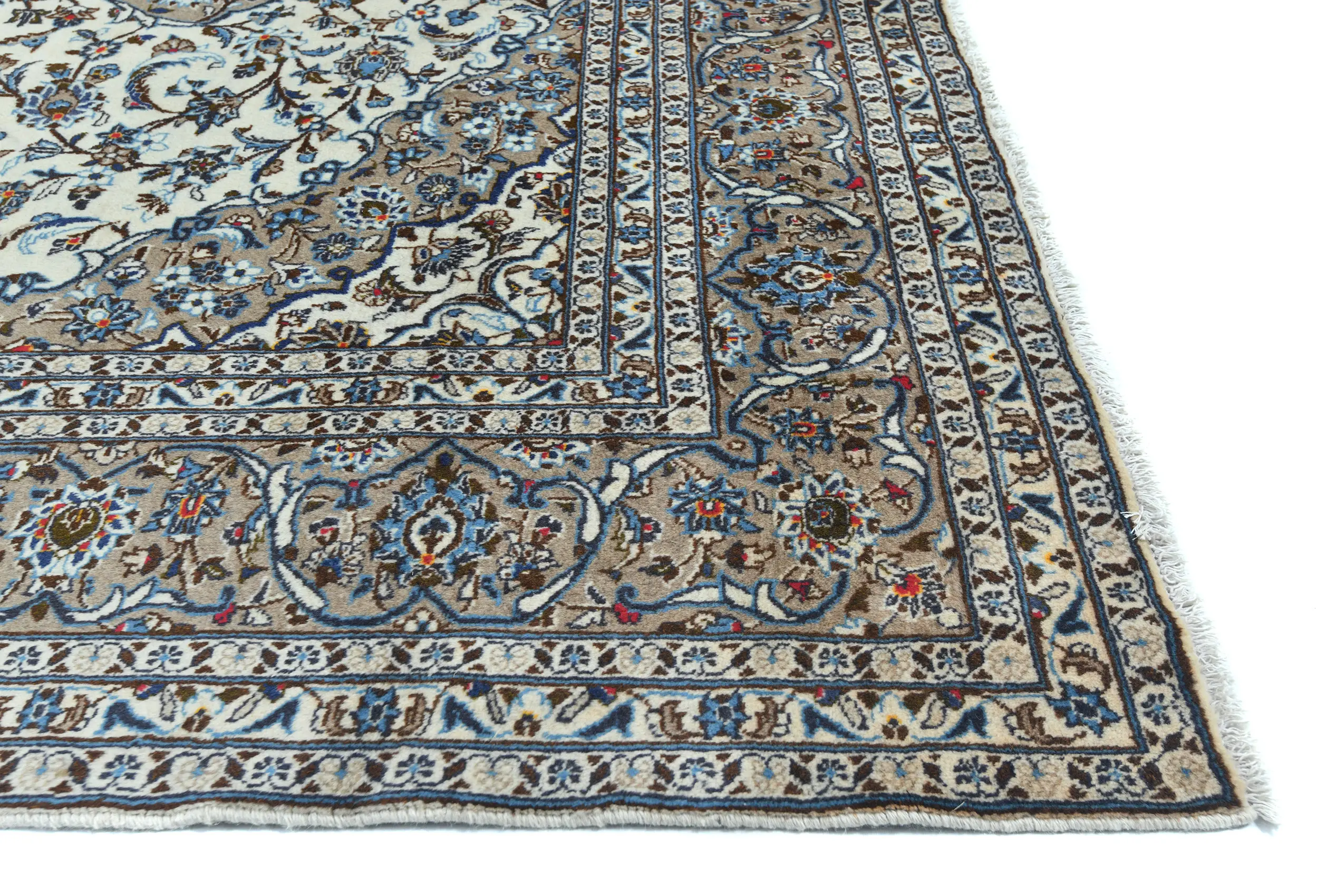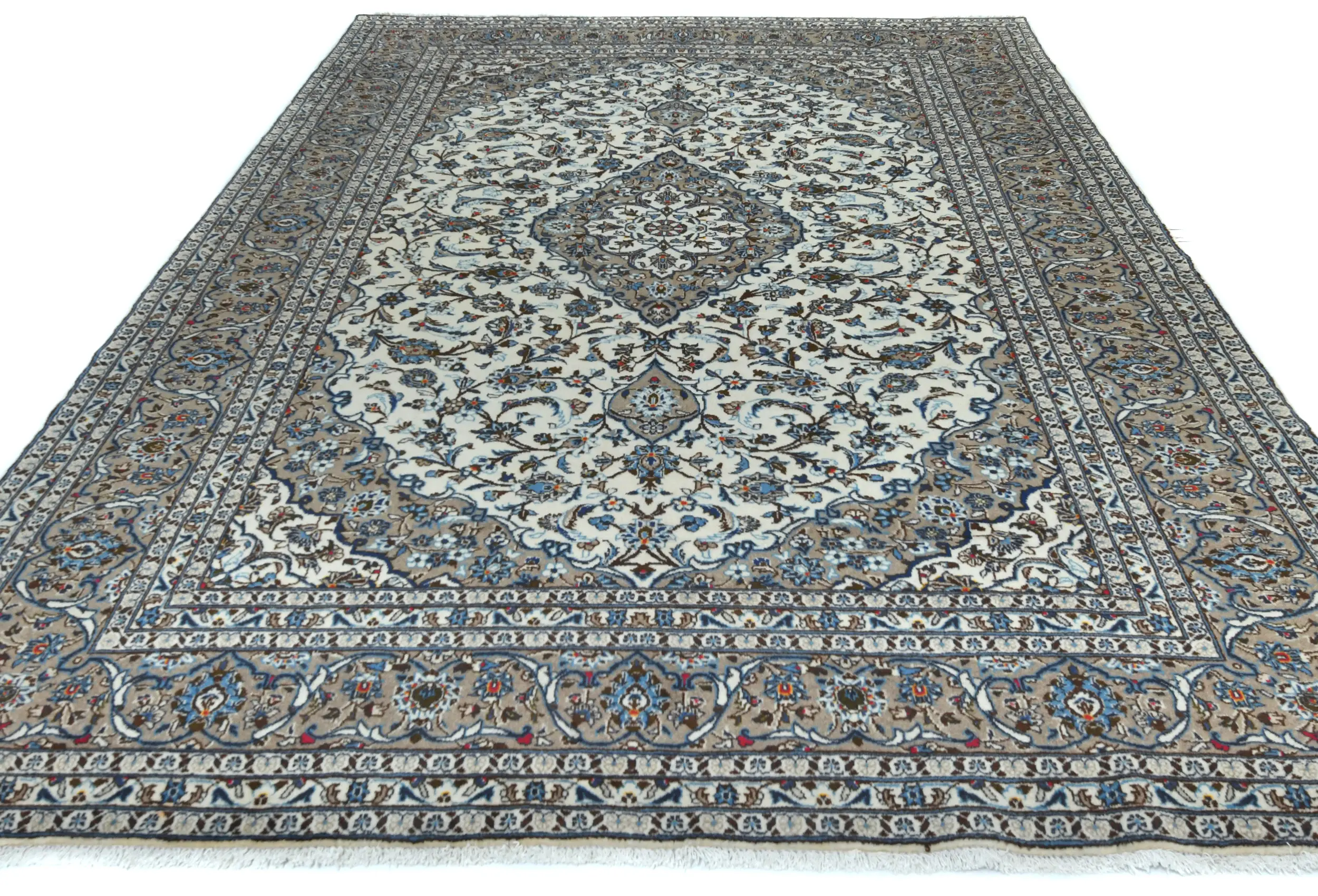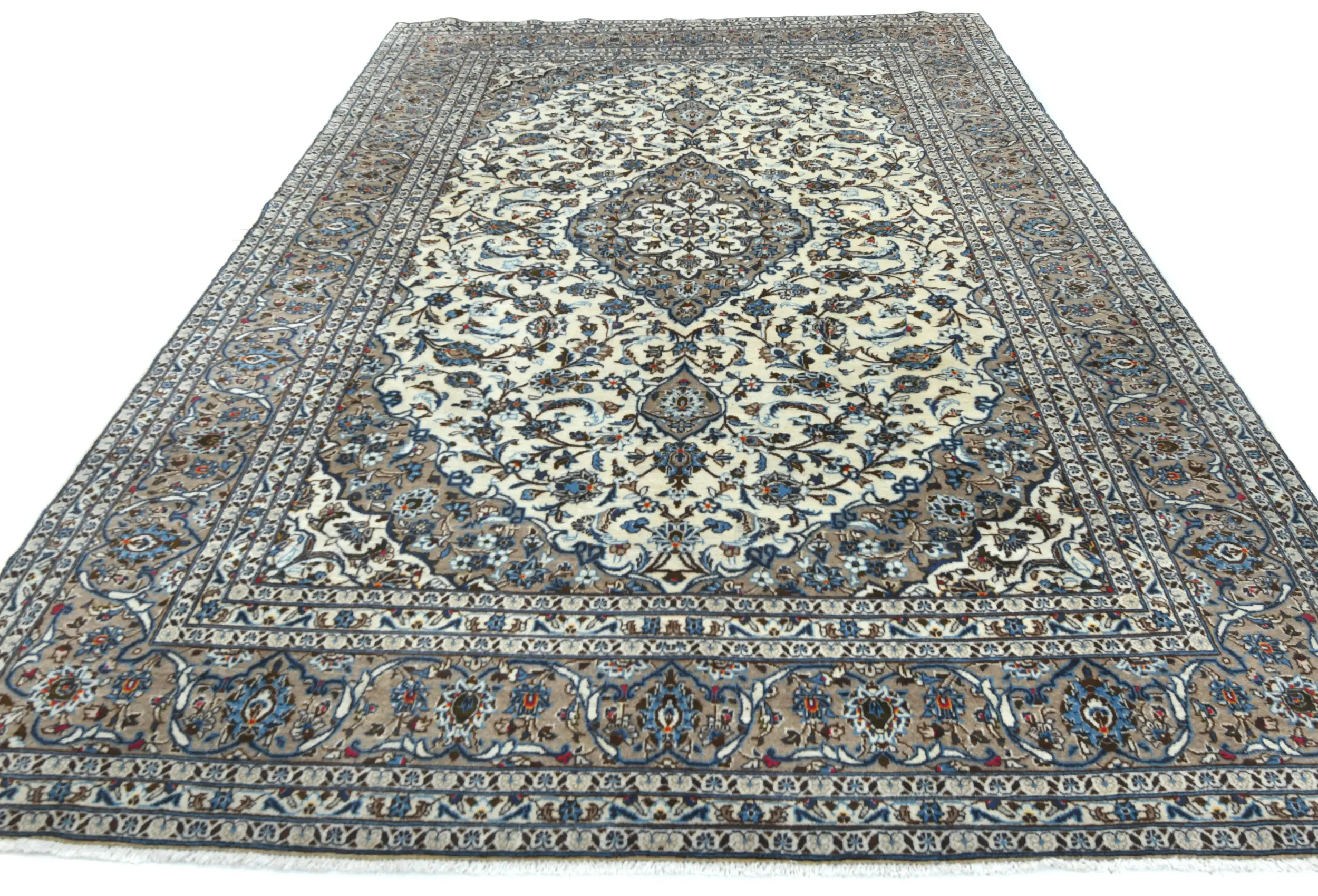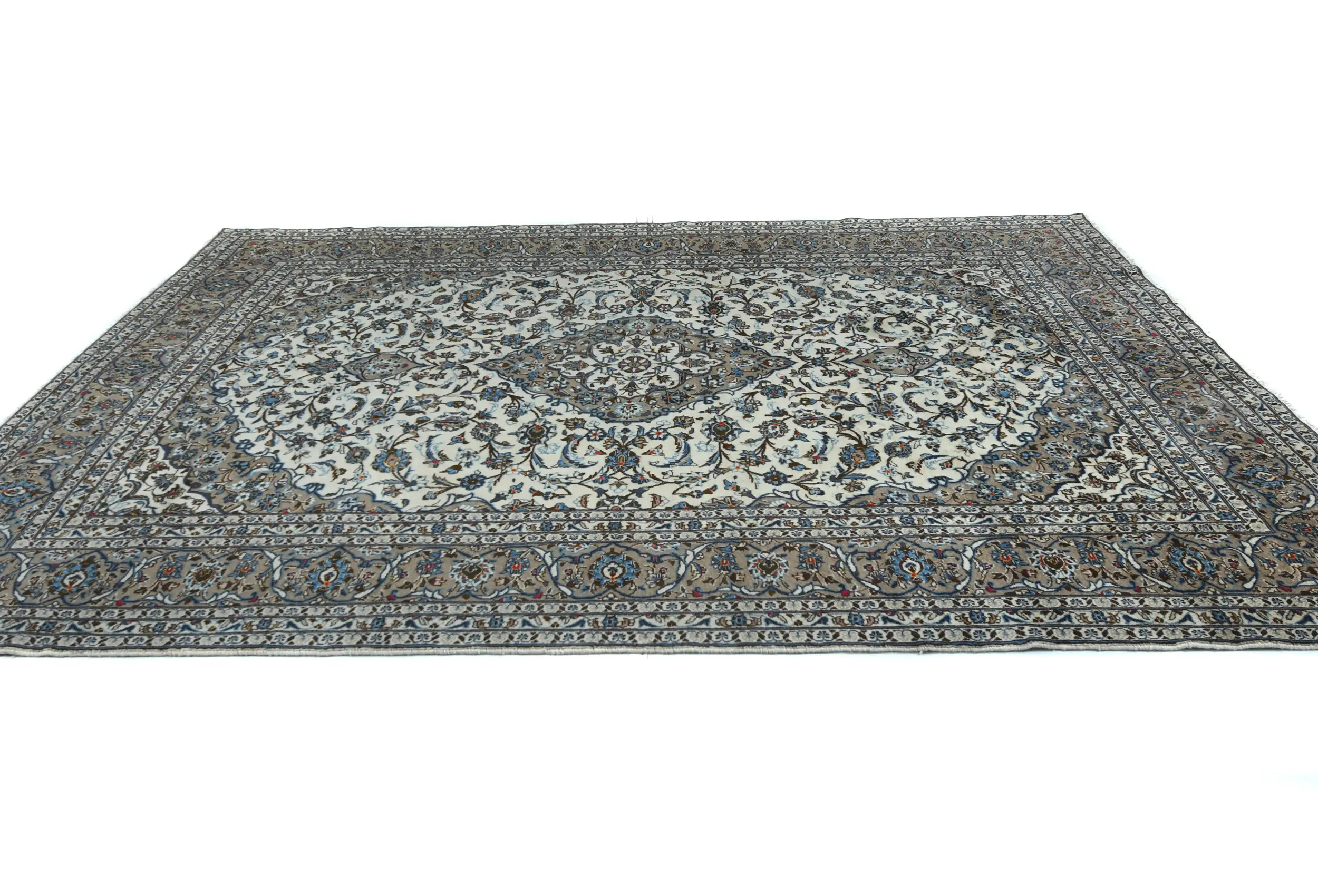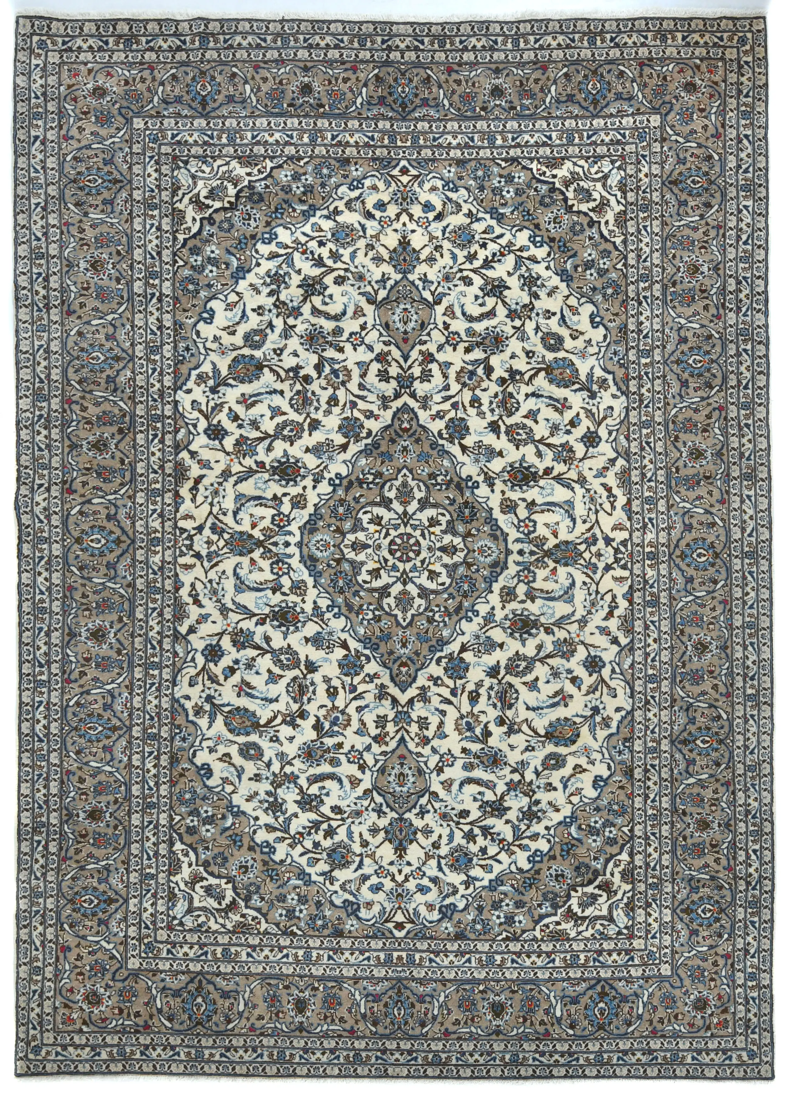 Vintage Cream Floral Traditional 8x11 Kashan Persian Rug