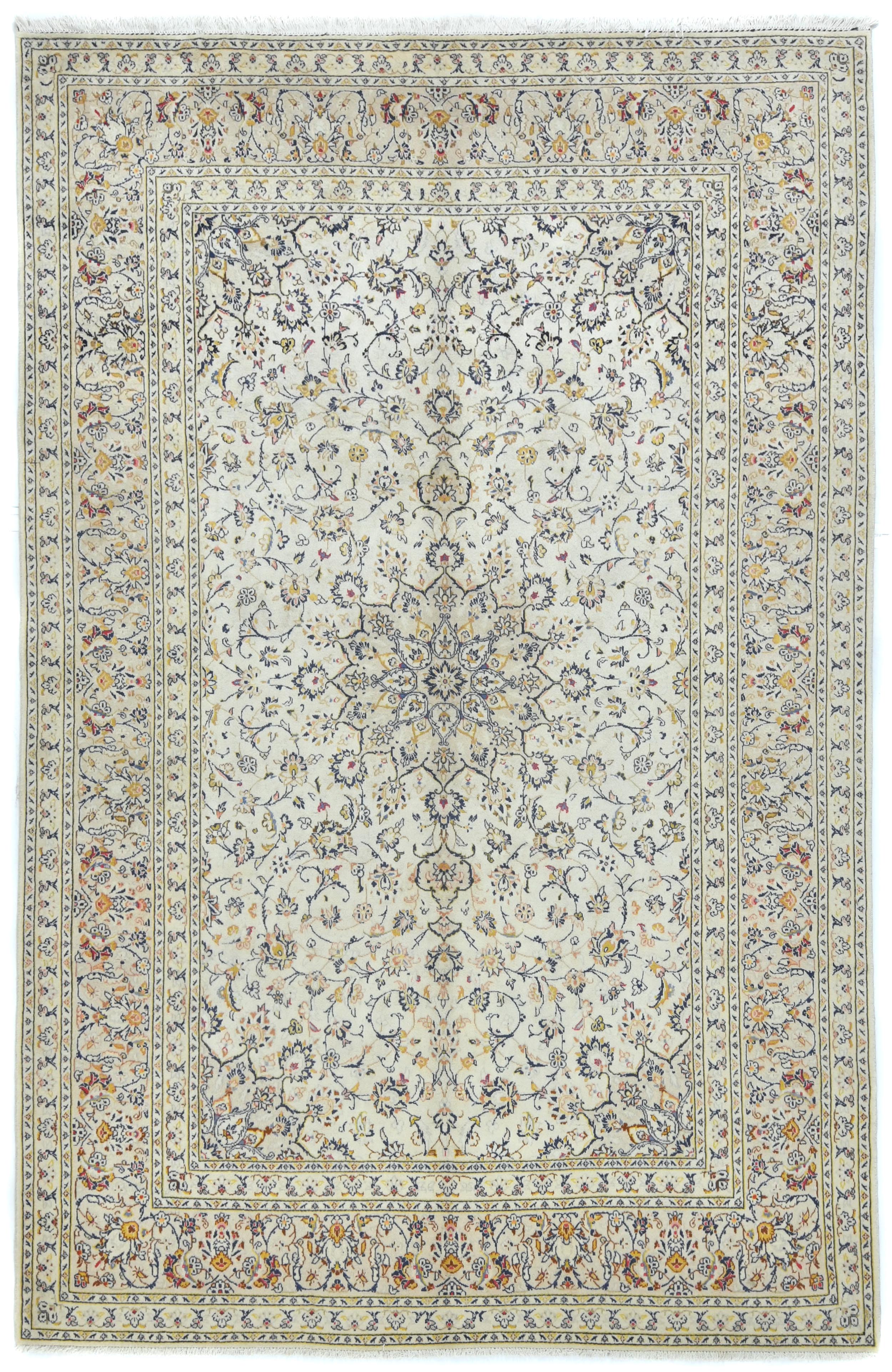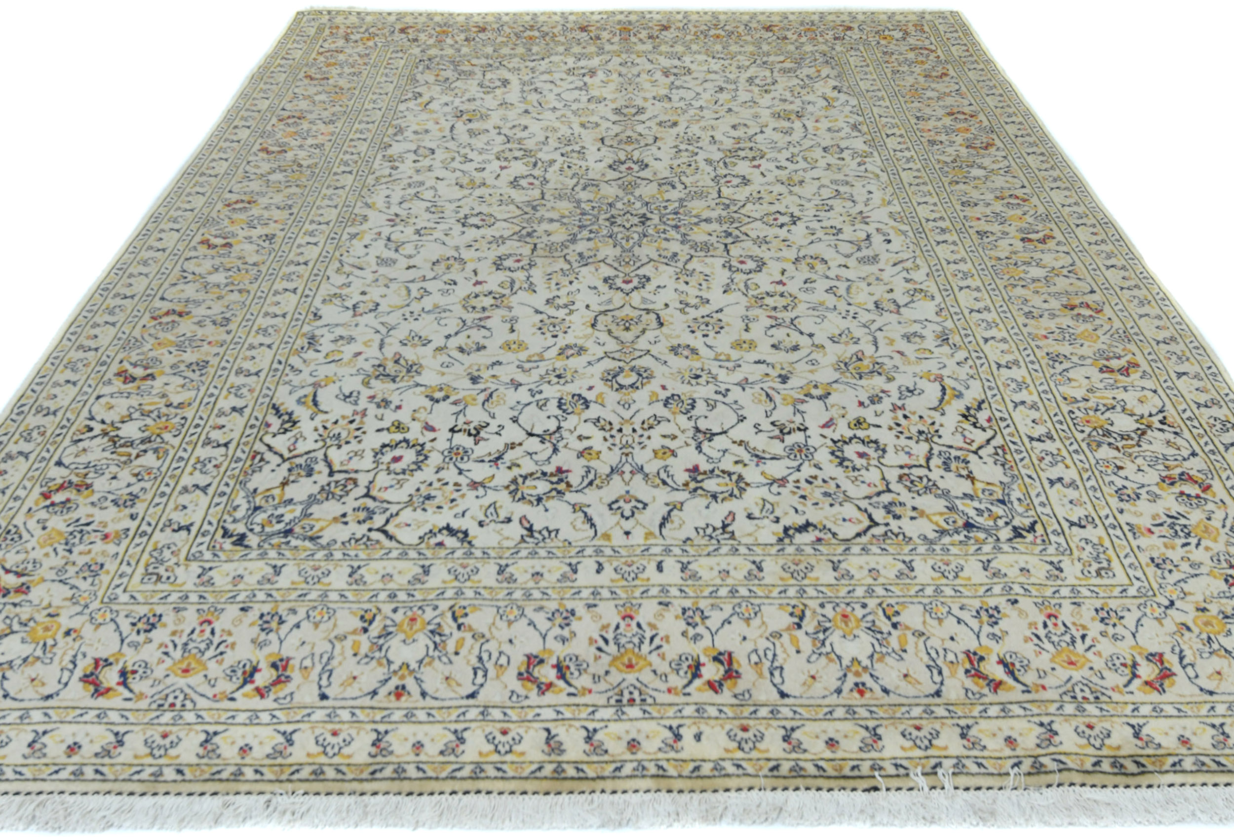 Vintage Cream Floral Traditional 8X11 Kashan Persian Rug