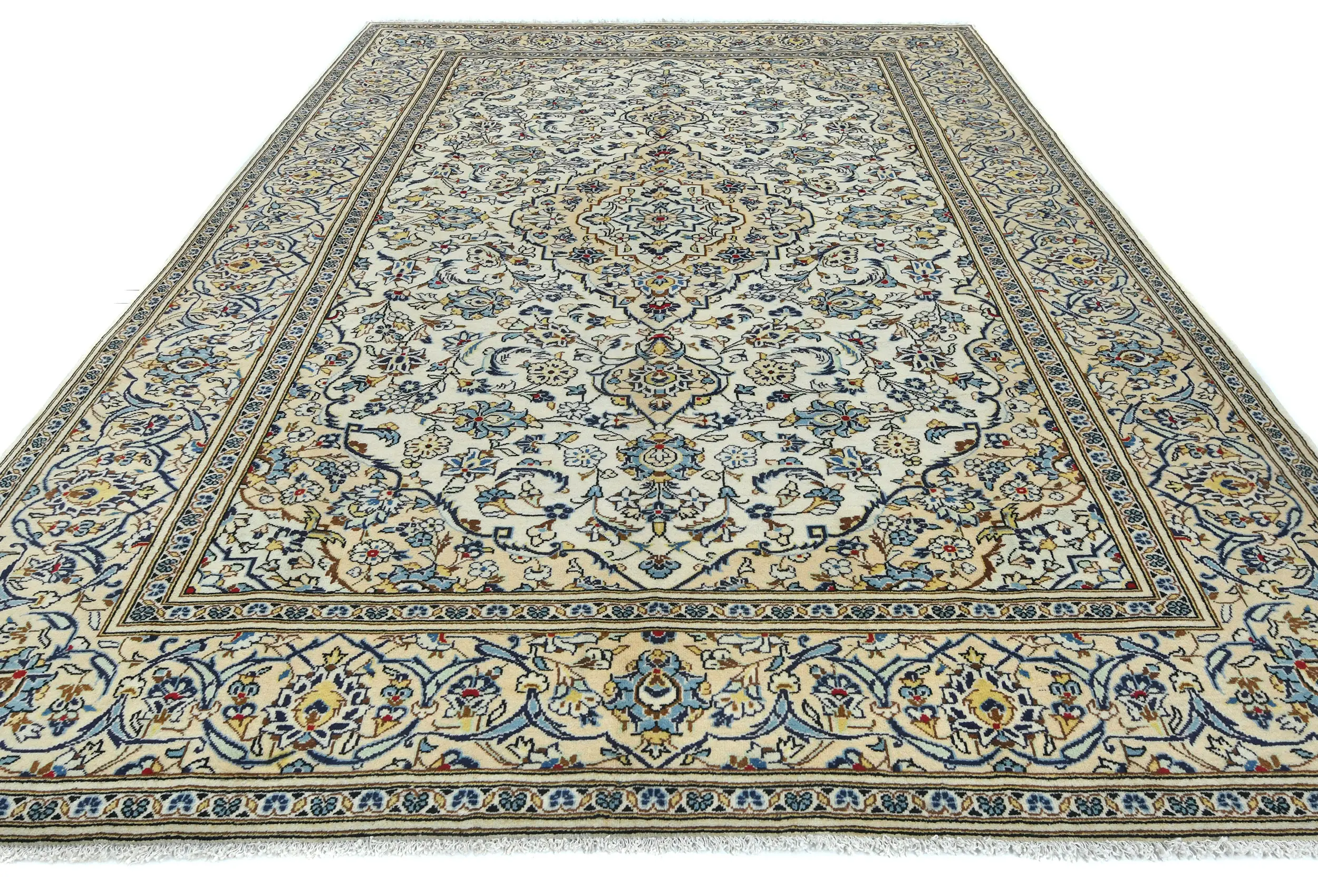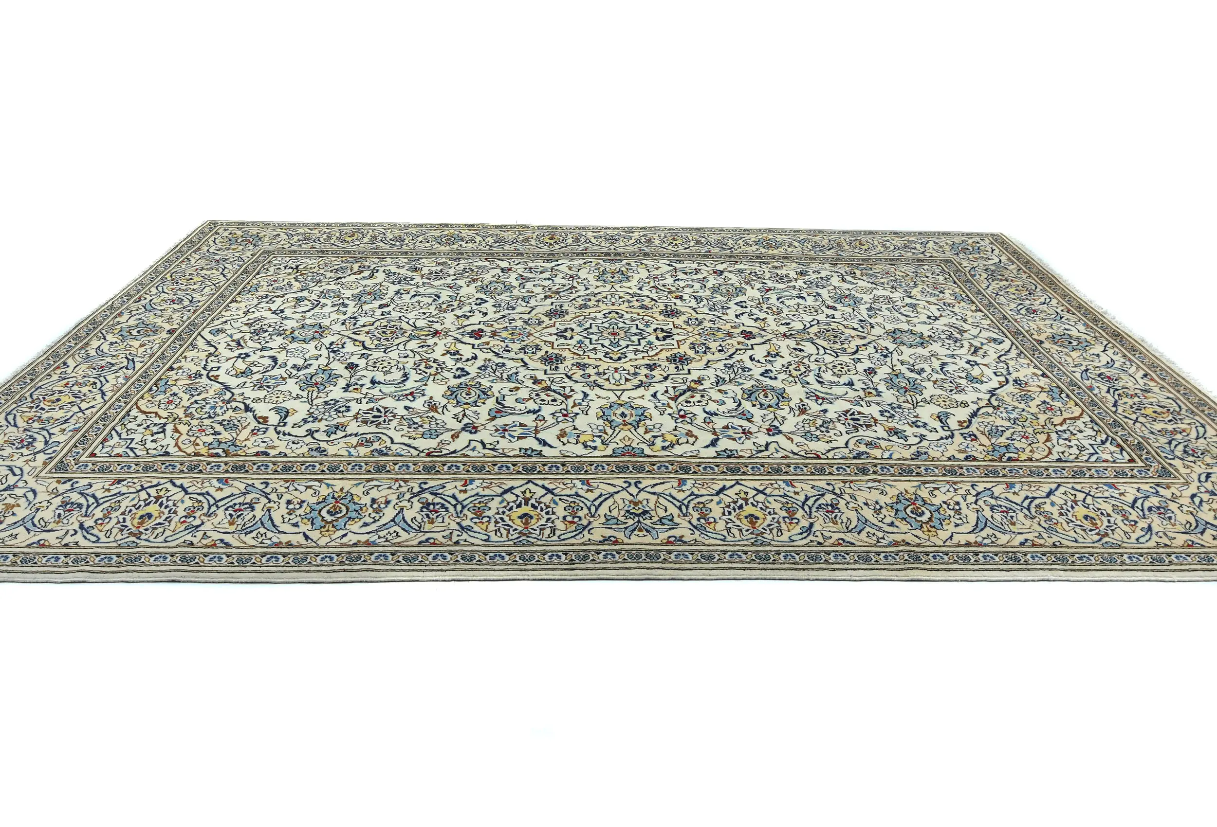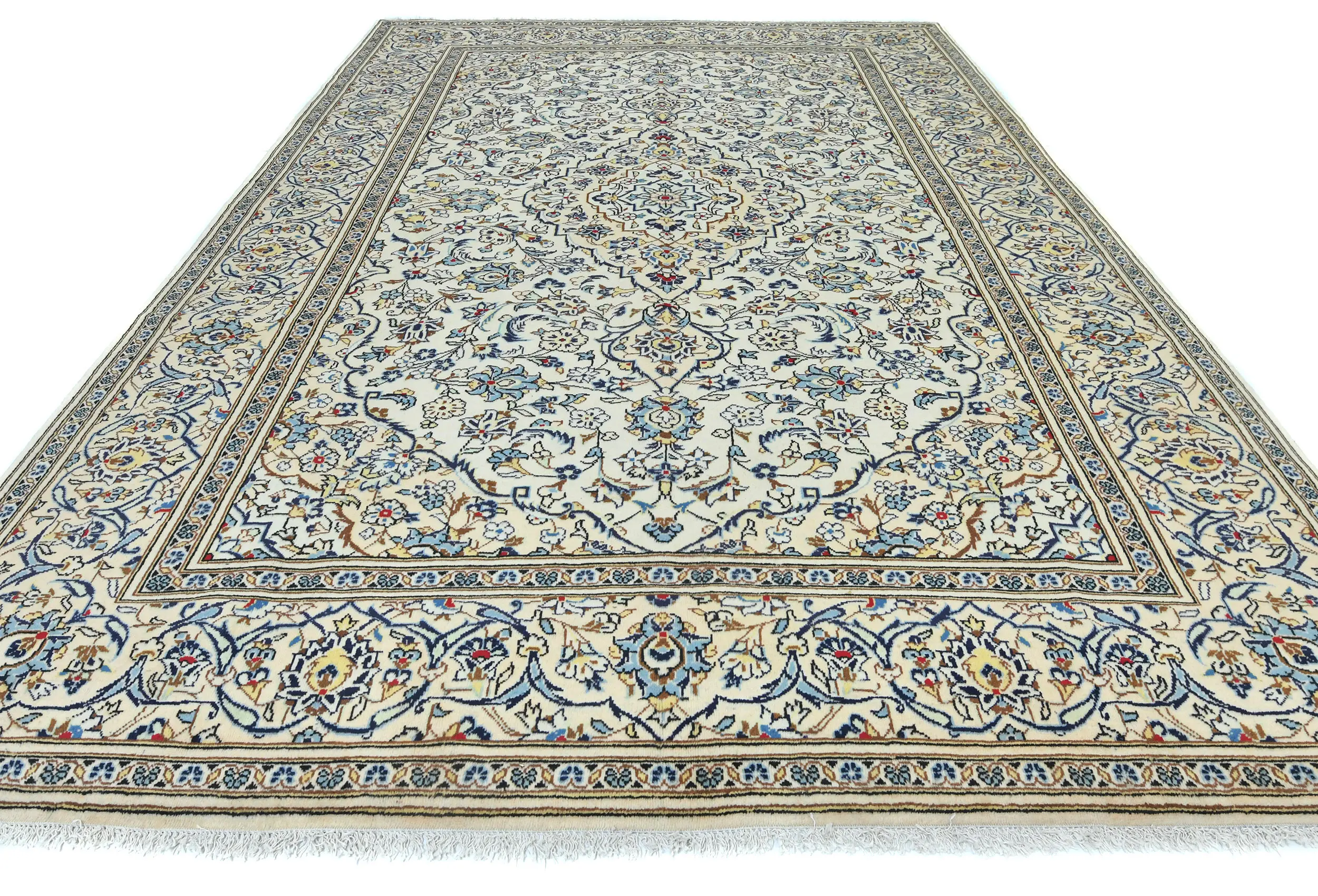 Vintage Cream Floral Traditional 8X12 Kashan Persian Rug
