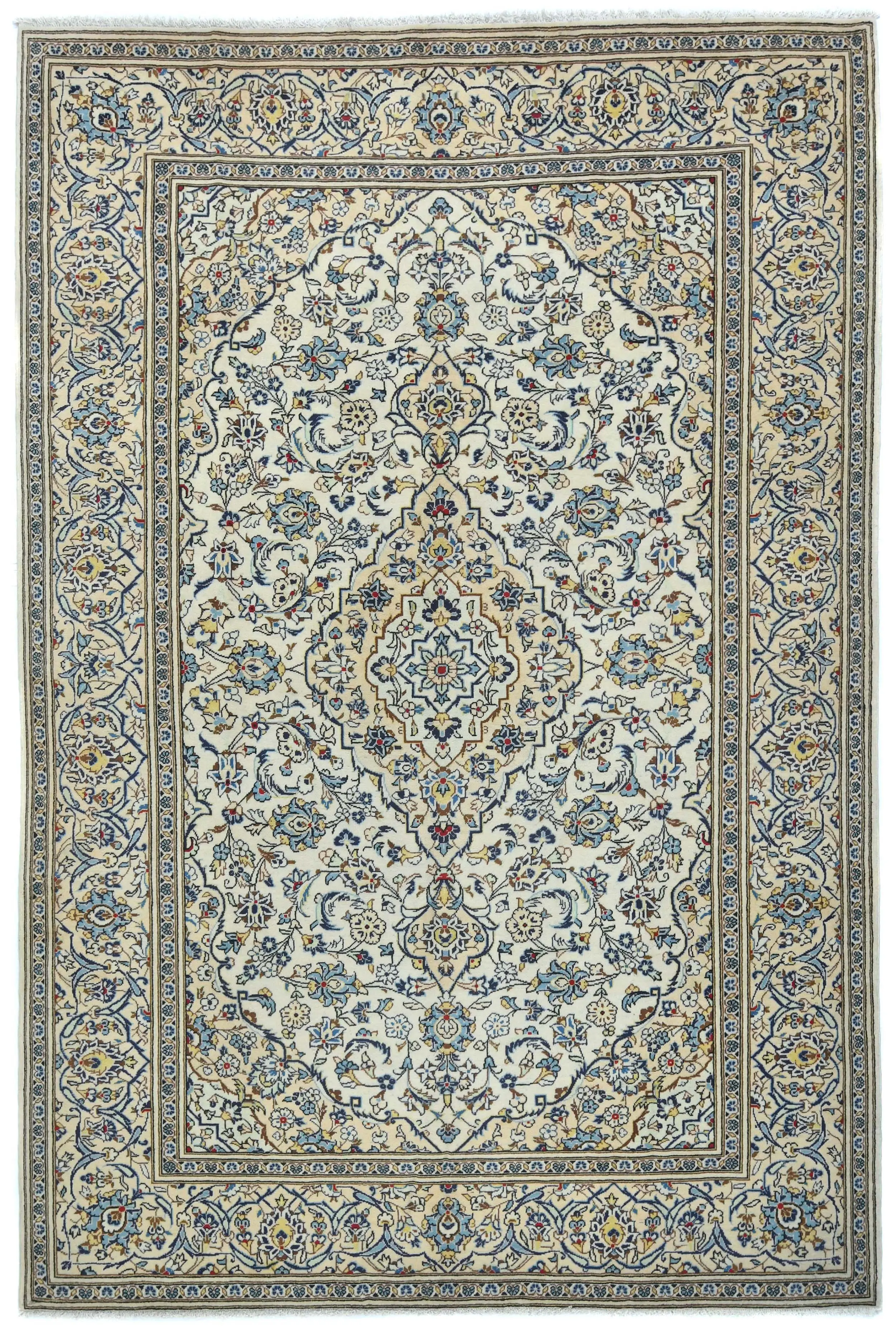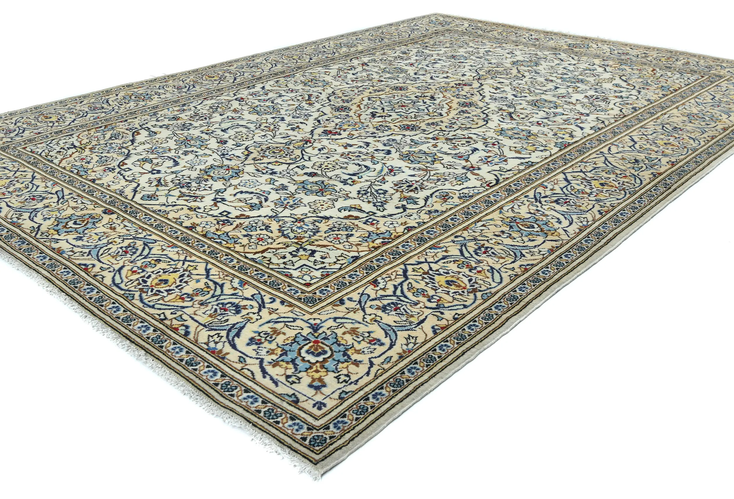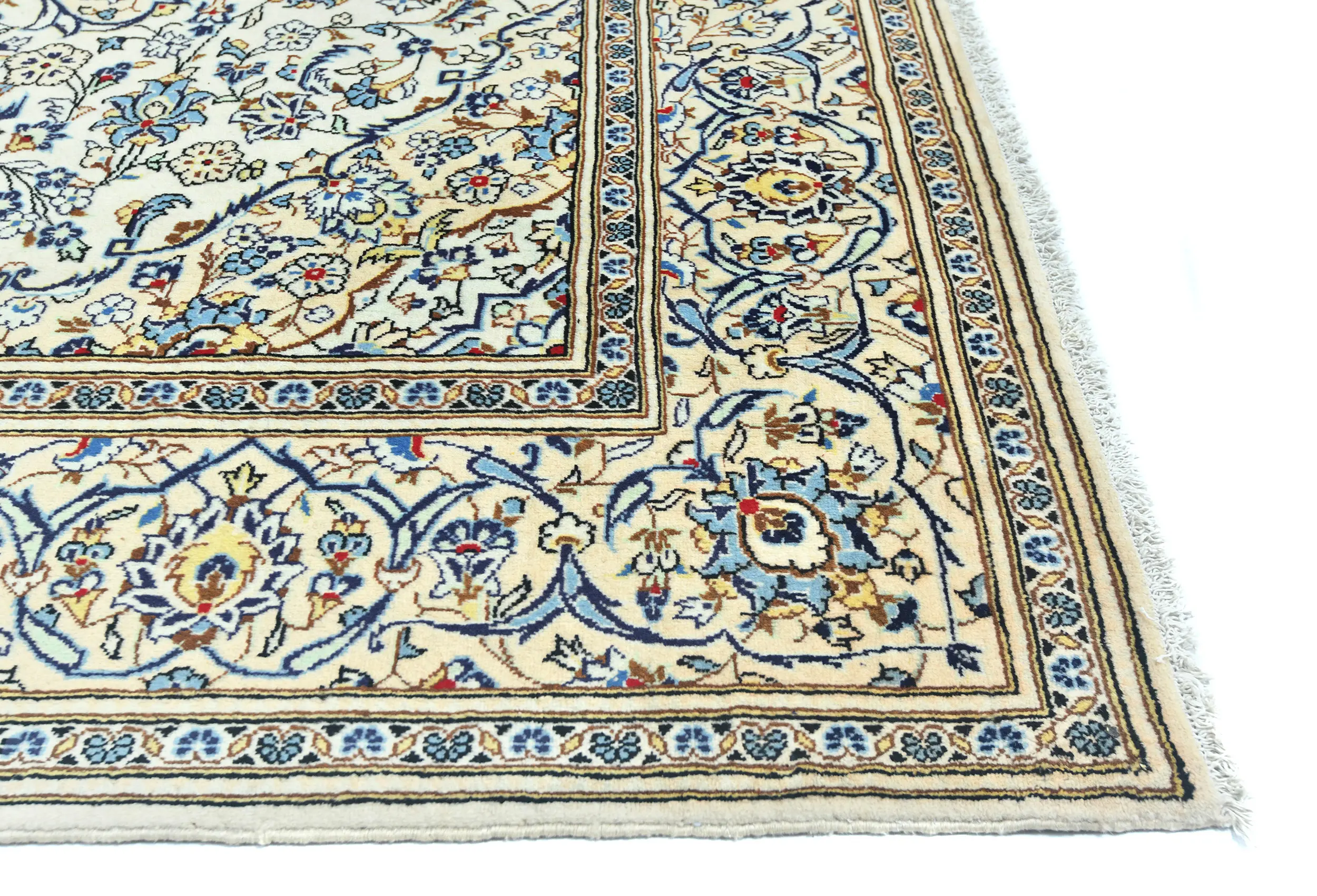 Vintage Cream Floral Traditional 8X12 Kashan Persian Rug