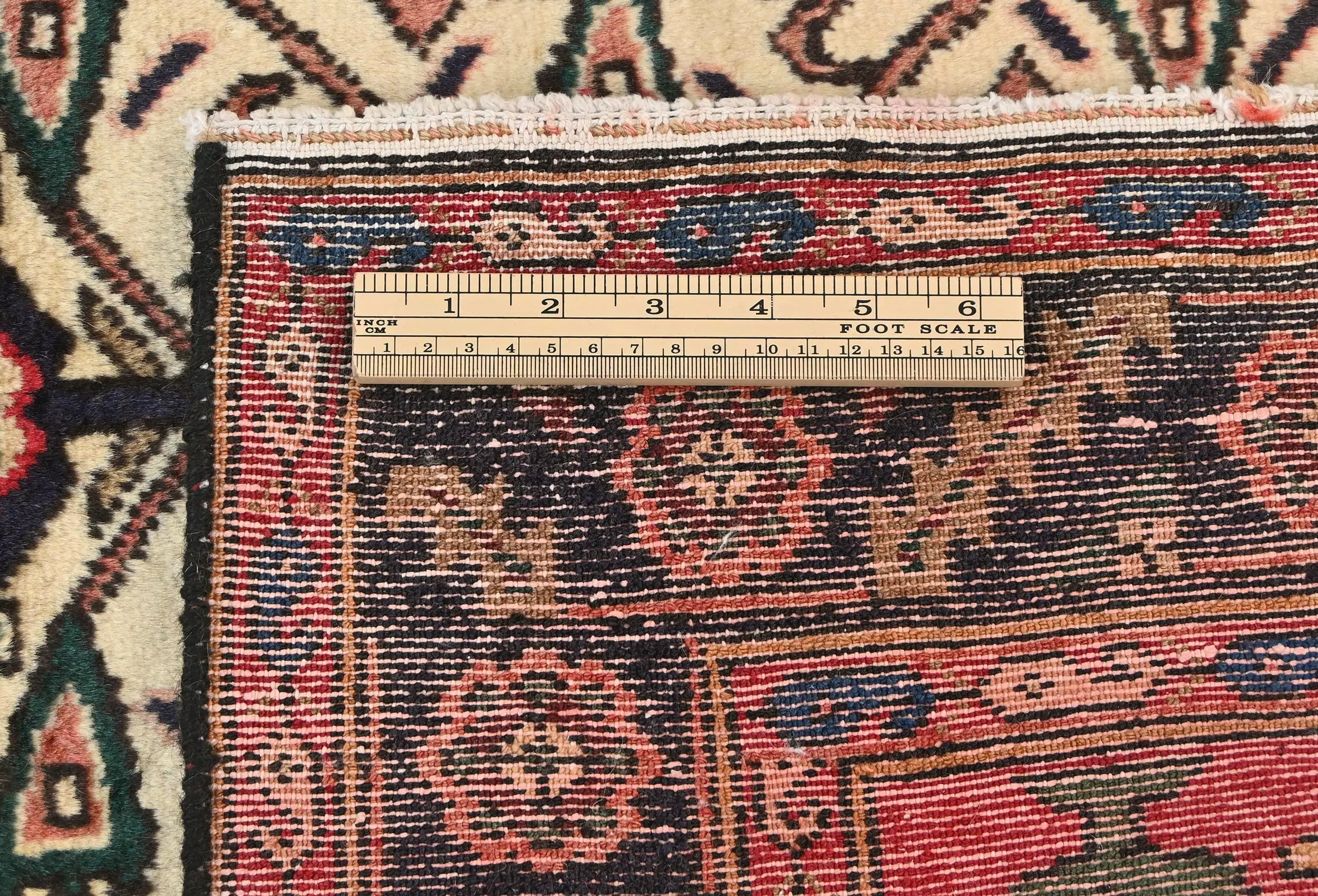This original 3X5 Cream vintage Persian rug was crafted by the hands of skilled weavers enthused by a variety of lovely artistic designs, to recreate the aged look of the unique piece with a richness of color and beautifully elaborated background field. What set this tribal Oriental area rug from the others are the material and dye used (wool pile and cotton foundation), knot count, ancient designs, fantastic grades, and its regional historical connection: it has deep roots, from the story of the people who produced it to the meaning of the symbols and colors displayed across its canvas that have been praised for centuries. This home décor carpet will be completely cozy and inviting that never will go out of style! Also, this Oriental rug would be among your most valuable treasures, it is a great investment that increase in value over time, and it will last for generations because was woven with high-quality, all-natural wool; it won’t rip, tear, or shed. Environmentally friendly, opulent yet affordable; this Persian rug will give you a thorough amount of character to help define your living space with sophistication and warmth that will capture the eyes and attention of your audience (homeowners, designers, decorators, family and friends). RT-7233