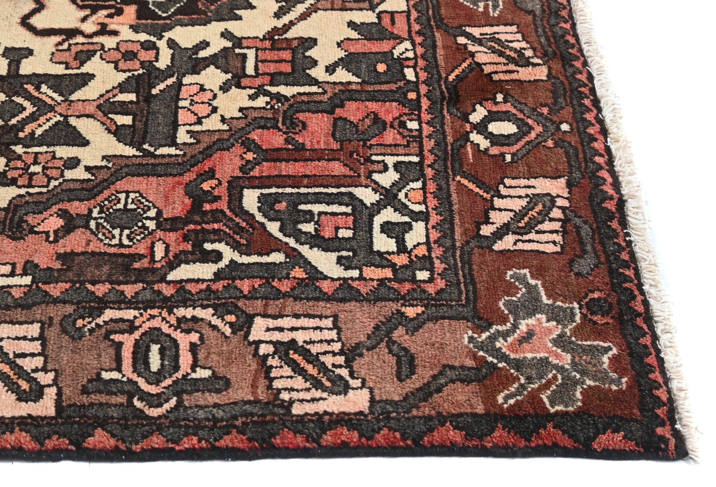 This original 5x8 Cream vintage Persian rug was crafted by the hands of skilled weavers enthused by a variety of lovely artistic designs, to recreate the aged look of the unique piece with a richness of color and beautifully elaborated background field. What set this tribal Oriental area rug from the others are the material and dye used (wool pile and cotton foundation), knot count, ancient designs, fantastic grades, and its regional historical connection: it has deep roots, from the story of the people who produced it to the meaning of the symbols and colors displayed across its canvas that have been praised for centuries. This home décor carpet will be completely cozy and inviting that never will go out of style! Also, this Oriental rug would be among your most valuable treasures, it is a great investment that increase in value over time, and it will last for generations because was woven with high-quality, all-natural wool; it won’t rip, tear, or shed. Environmentally friendly, opulent yet affordable; this Persian rug will give you a thorough amount of character to help define your living space with sophistication and warmth that will capture the eyes and attention of your audience (homeowners, designers, decorators, family and friends). RT-7183