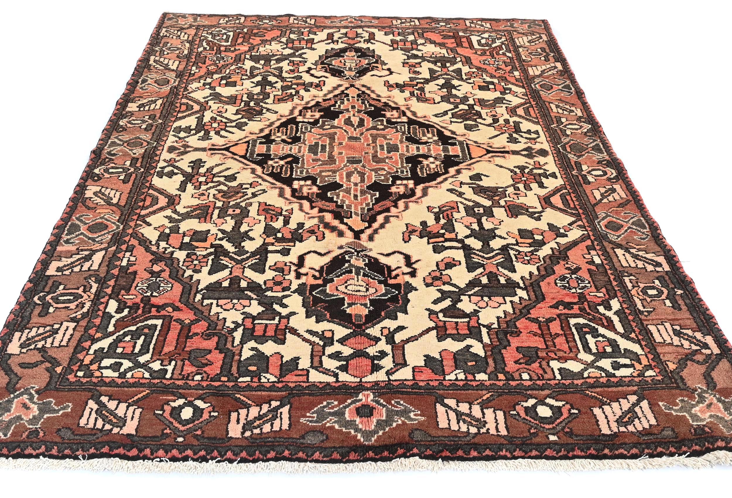 Vintage Cream Floral Tribal 5x8 Hamedan Persian Rug