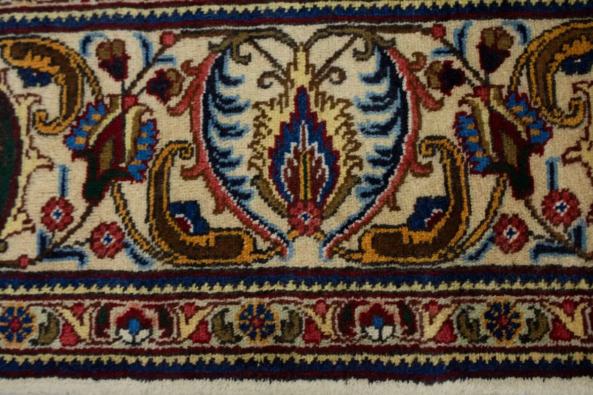 This authentic 10X13 vintage Persian rug was masterly knotted by the hands of weavers inspired by a variety of wonderful artistic designs, to recreate the aged look of the original piece with a richness of color and intricate patterned floral background field. What set this Oriental rug/runner from the others are the material and dye used (wool pile and cotton foundation), knot count, antique designs, fantastic grades, and its regional historical connection: it has deep roots, from the story of the people who produced it to the meaning of the symbols and colors displayed across its canvas that have been praised for centuries. This classic floral décor carpet will be completely cozy and inviting that never will go out of style! Also, this Oriental rug/runner would be among your most valuable treasures, it is a great investment that accrues value over time, and it will last for generations because was woven with high-quality, all-natural wool; it won’t rip, tear, or shed. Environmentally friendly, opulent yet affordable; this Persian rug will give you a thorough amount of character to help define your living space with luxury and warmth that will capture the eyes and attention of your audience (homeowners, designers, decorators, family and friends). RT-7602