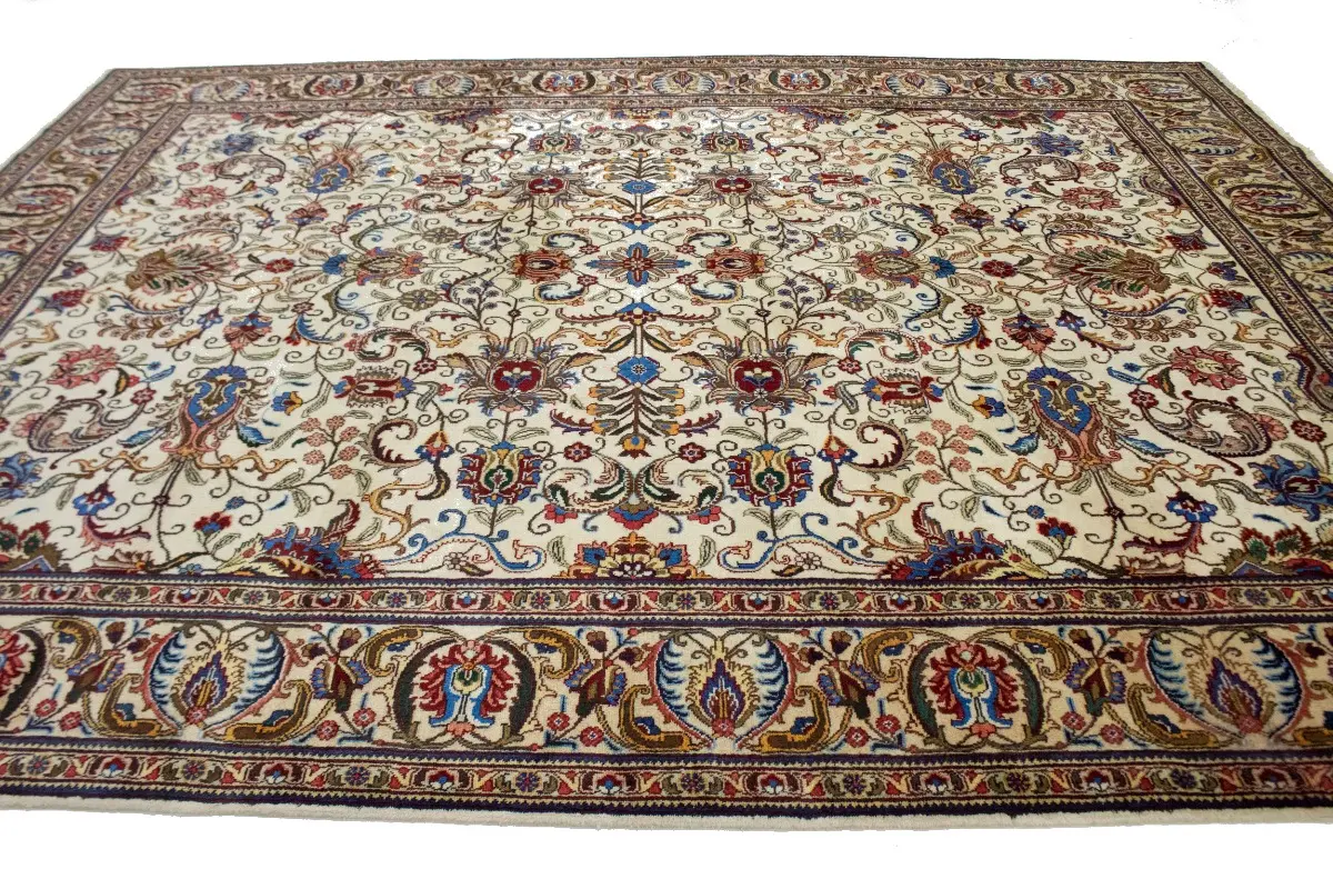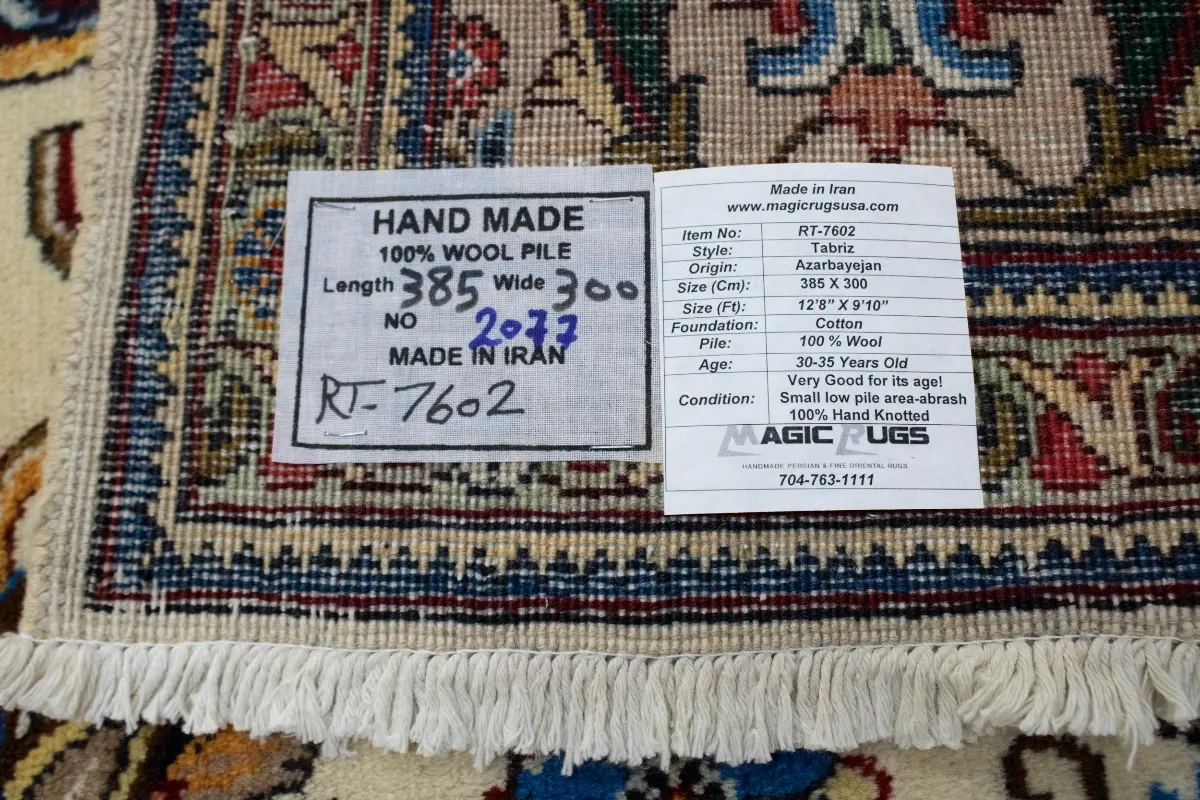 Vintage Cream Floral Classic 10X13 Tabriz Persian Rug