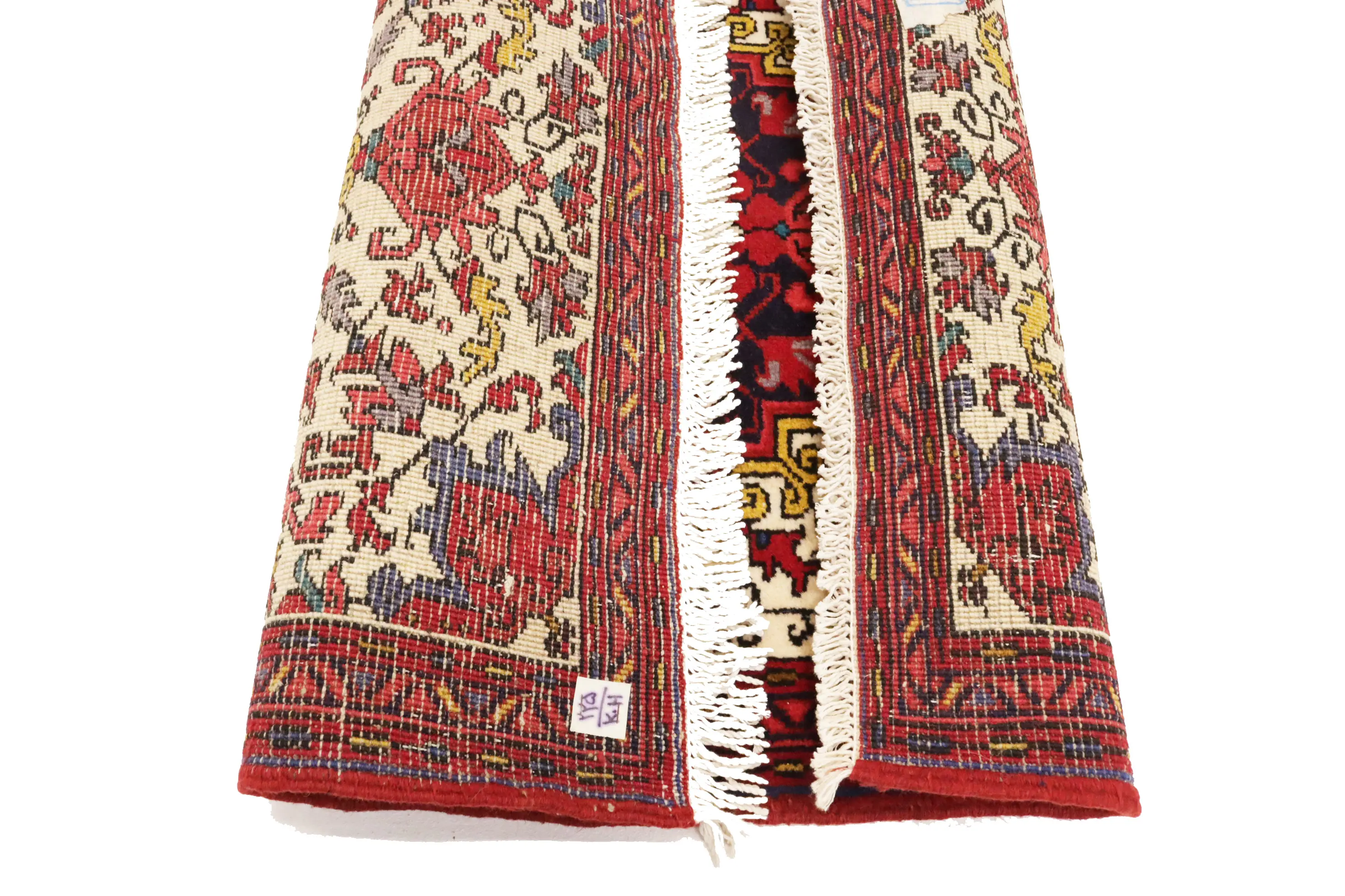 Hand Knotted vintage 2'5X3'2 cream Persian rug made with natural dyes (fine wool pile and cotton foundation), superior knot count, and alluring ancient designs. This Oriental rug never will go out of style and would be among your most valuable treasures.