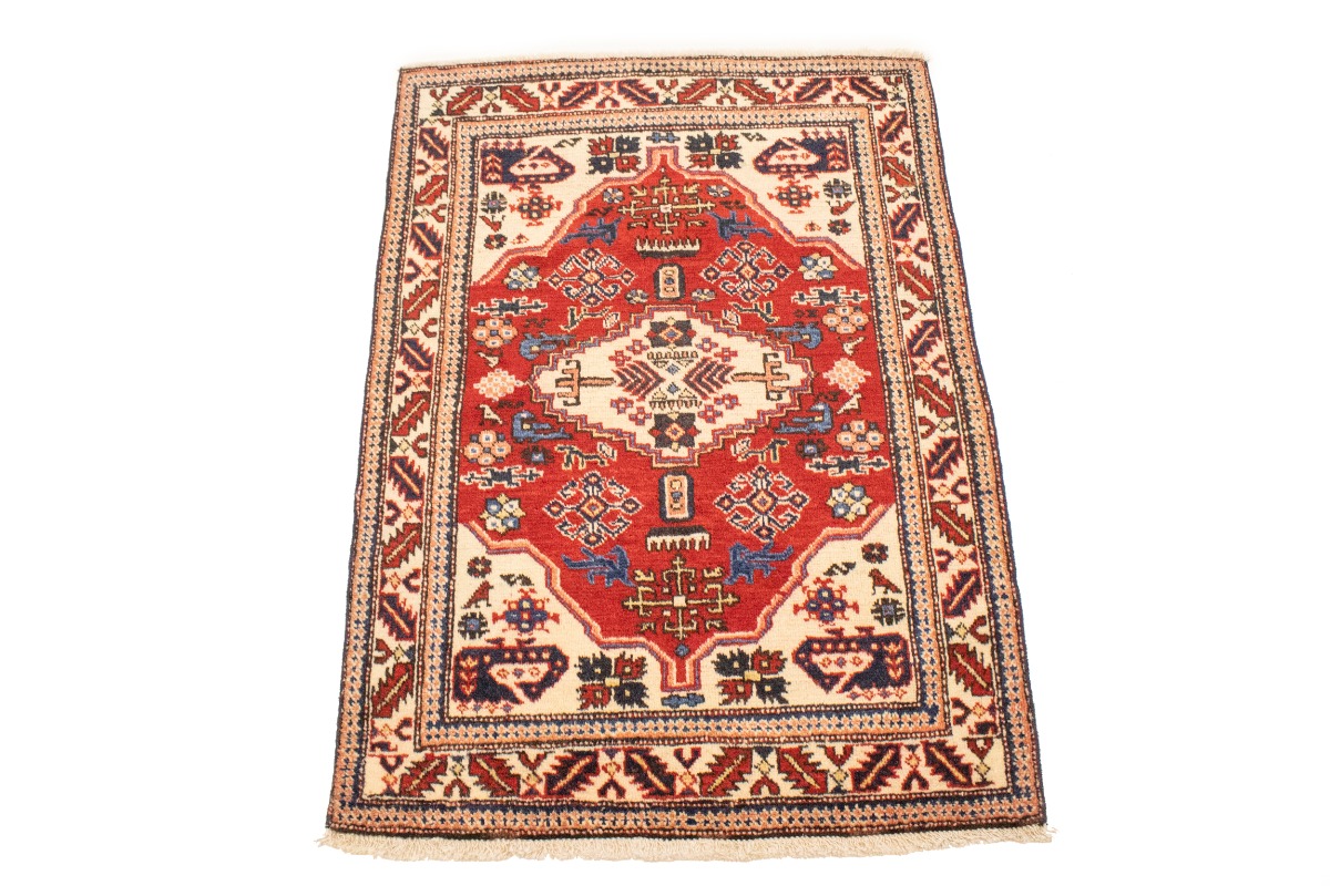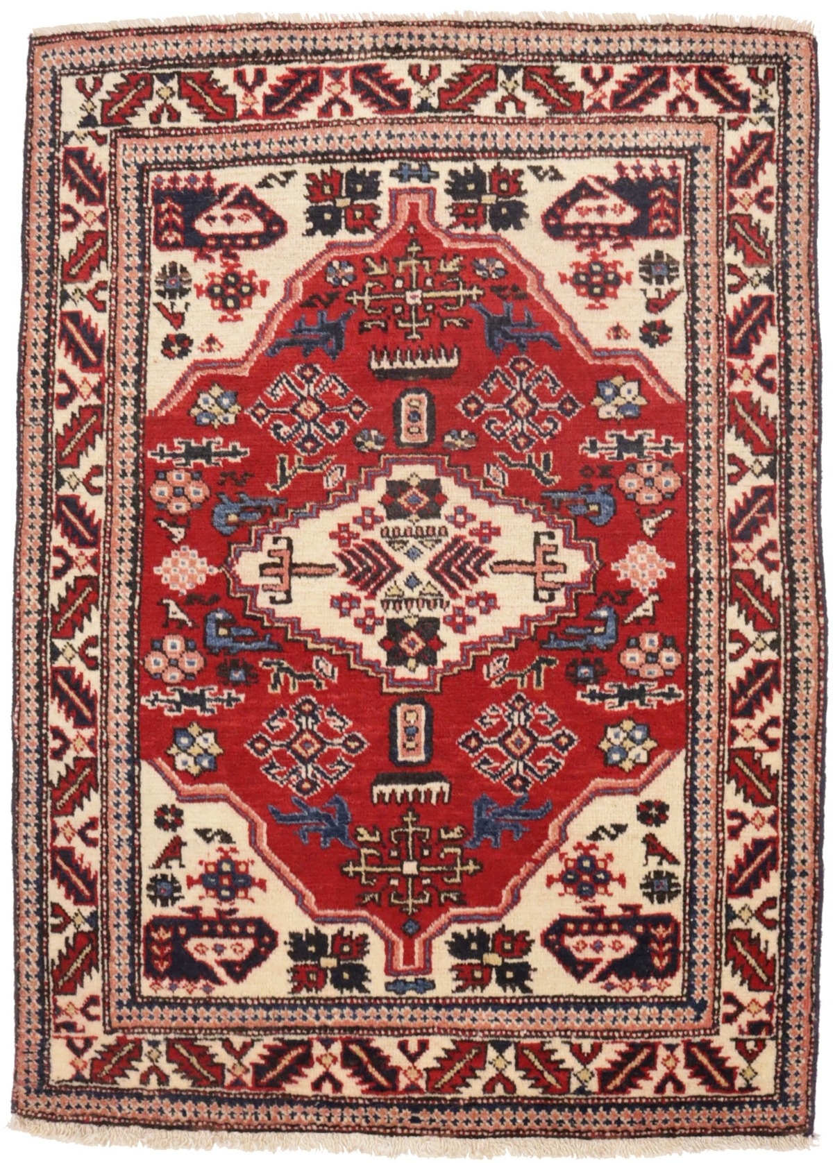 This authentic 2'5X3'5 cream vintage Persian rug was masterly knotted by the hands of weavers inspired by a variety of wonderful artistic designs, to recreate the aged look of the original piece with a richness of color and intricate patterned background field. What set this tribal Oriental area rug from the others are the material and dye used (wool pile and cotton foundation), knot count, antique designs, fantastic grades, and its regional historical connection: it has deep roots, from the story of the people who produced it to the meaning of the symbols and colors displayed across its canvas that have been praised for centuries. This home décor carpet will be completely cozy and inviting that never will go out of style! Also, this Oriental rug would be among your most valuable treasures, it is a great investment that accrues value over time, and it will last for generations because was woven with high-quality, all-natural wool; it won’t rip, tear, or shed. Environmentally friendly, opulent yet affordable; this Persian rug will give you a thorough amount of character to help define your living space with luxury and warmth that will capture the eyes and attention of your audience (homeowners, designers, decorators, family and friends). RT-10099