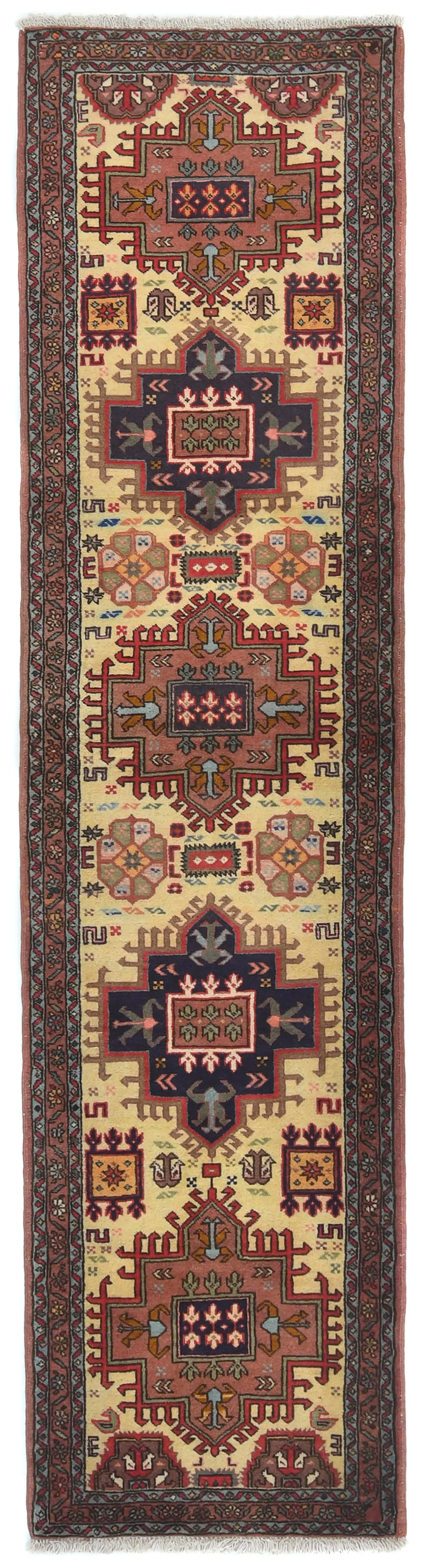 This authentic 2'5X9'5 Cream vintage Persian Runner rug was finely knotted by the hands of weavers influenced by a variety of amazing artistic designs, to recreate the aged look of the exceptional piece with a richness of color and embellished floral background field. What set this traditional Oriental area rug from the others are the material and dye used (wool pile and cotton foundation), knot count, antique designs, fantastic grades, and its regional historical connection: it has deep roots, from the story of the people who produced it to the meaning of the symbols and colors displayed across its canvas that have been praised for centuries. This classic home décor carpet will be completely cozy and inviting that never will go out of style! Also, this Oriental rug would be among your most valuable treasures, it is a great investment that increase in value over time, and it will last a lifetime because was woven with high-quality, all-natural wool; it won’t rip, tear, or shed. Eco-friendly, opulent yet affordable; this Persian rug will give you an extra pop of character to help define your home environment with luxury and warmth that will capture the eyes and attention of your audience (homeowners, designers, decorators, family and friends). RT-7268