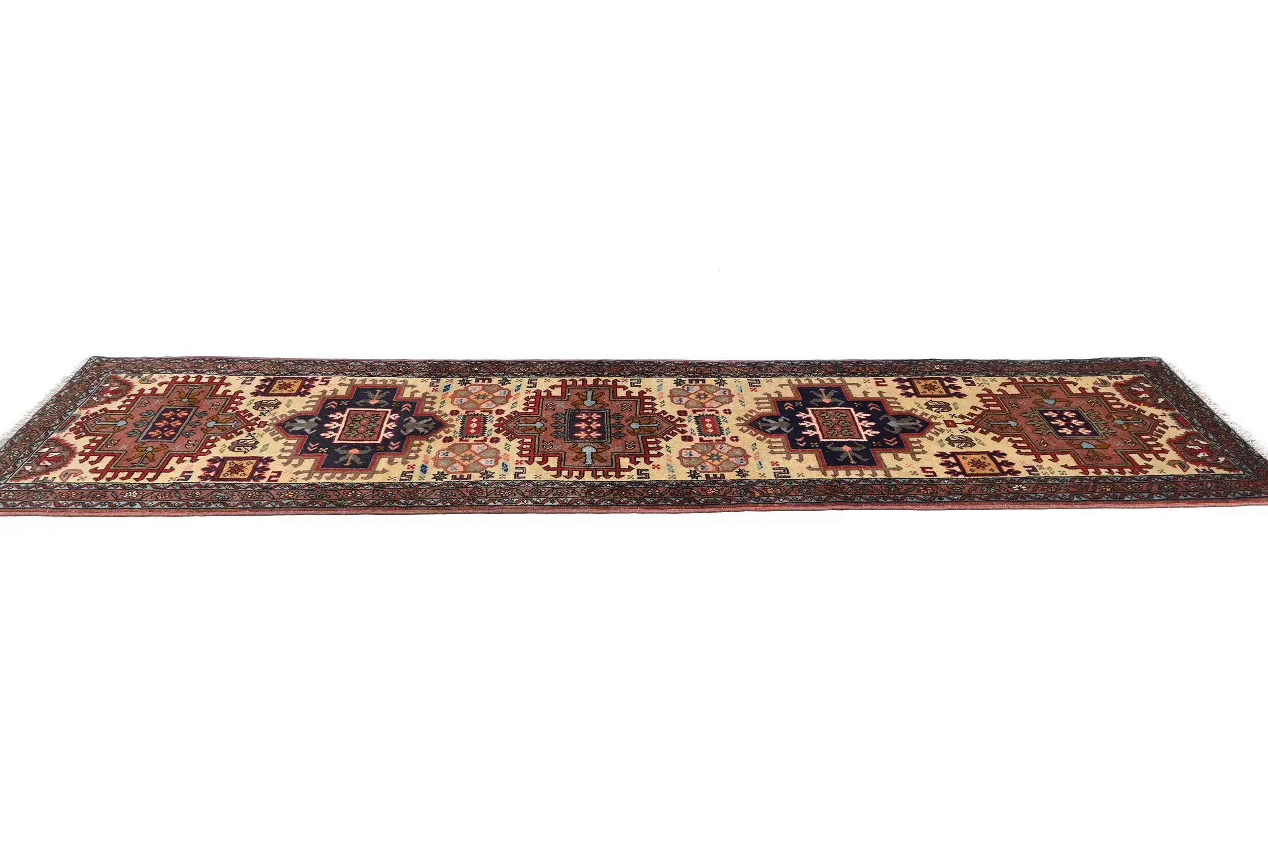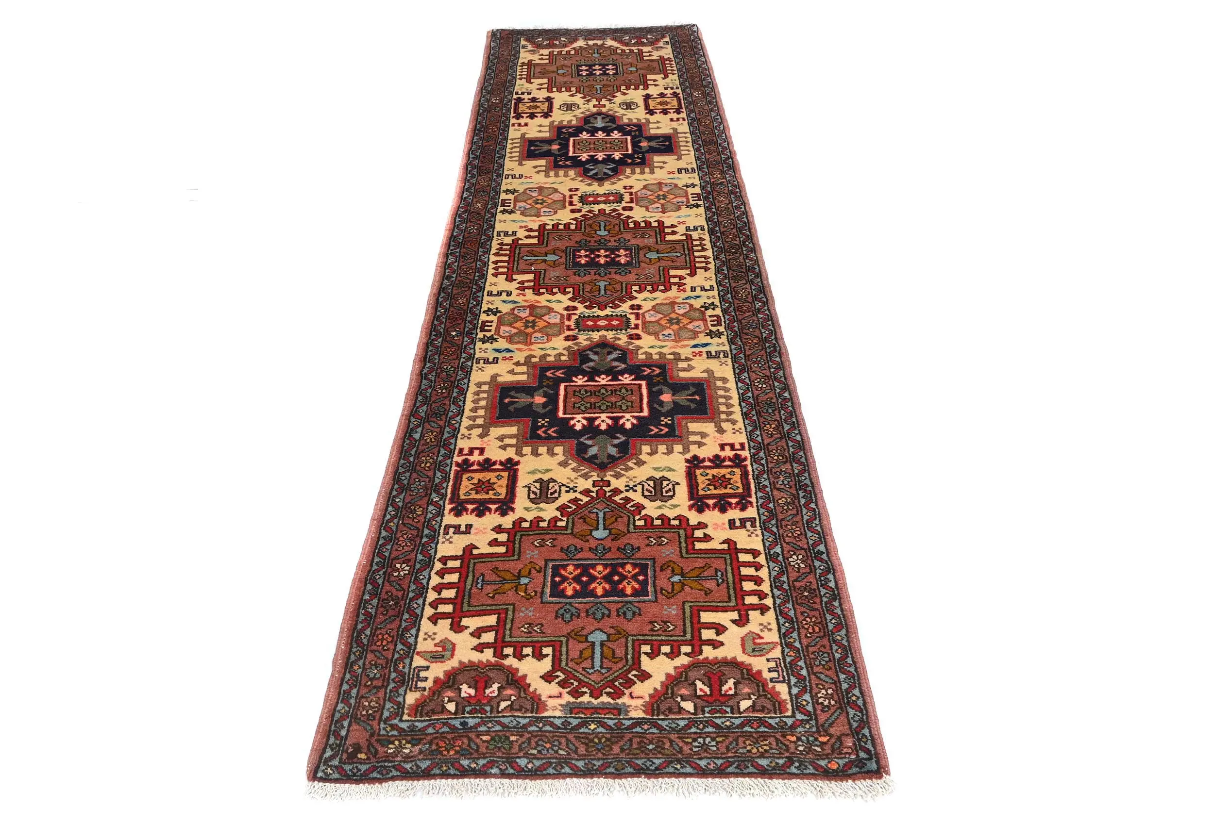 Vintage Cream Geometric 2'5X9'5 Ardabil Persian Runner Rug