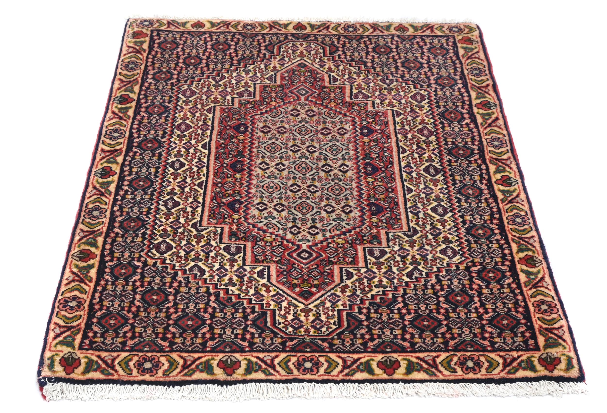 This genuine 2'5X3'2 Cream vintage Persian rug was made by the hands of gifted weavers inspired by a variety of spectacular artistic designs, to recreate the aged look of the original piece with a richness of color and ornately patterned background field. What set this geometric Oriental area rug from the others are the material and dye used (wool pile and cotton foundation), knot count, ancient designs, fantastic grades, and its regional historical connection: it has deep roots, from the story of the people who produced it to the meaning of the symbols and colors displayed across its canvas that have been praised for centuries. This home decor carpet will be completely cozy and inviting that never will go out of style! Also, this Oriental rug would be among your most valuable treasures, it is a great investment that accrues value over time, and it will last for generations because was woven with high-quality, all-natural wool; it won’t rip, tear, or shed. Environmentally friendly, opulent yet affordable; this Persian rug will give you a thorough amount of character to help define your living space with elegance and warmth that will capture the eyes and attention of your audience (homeowners, designers, decorators, family and friends). RT-7343