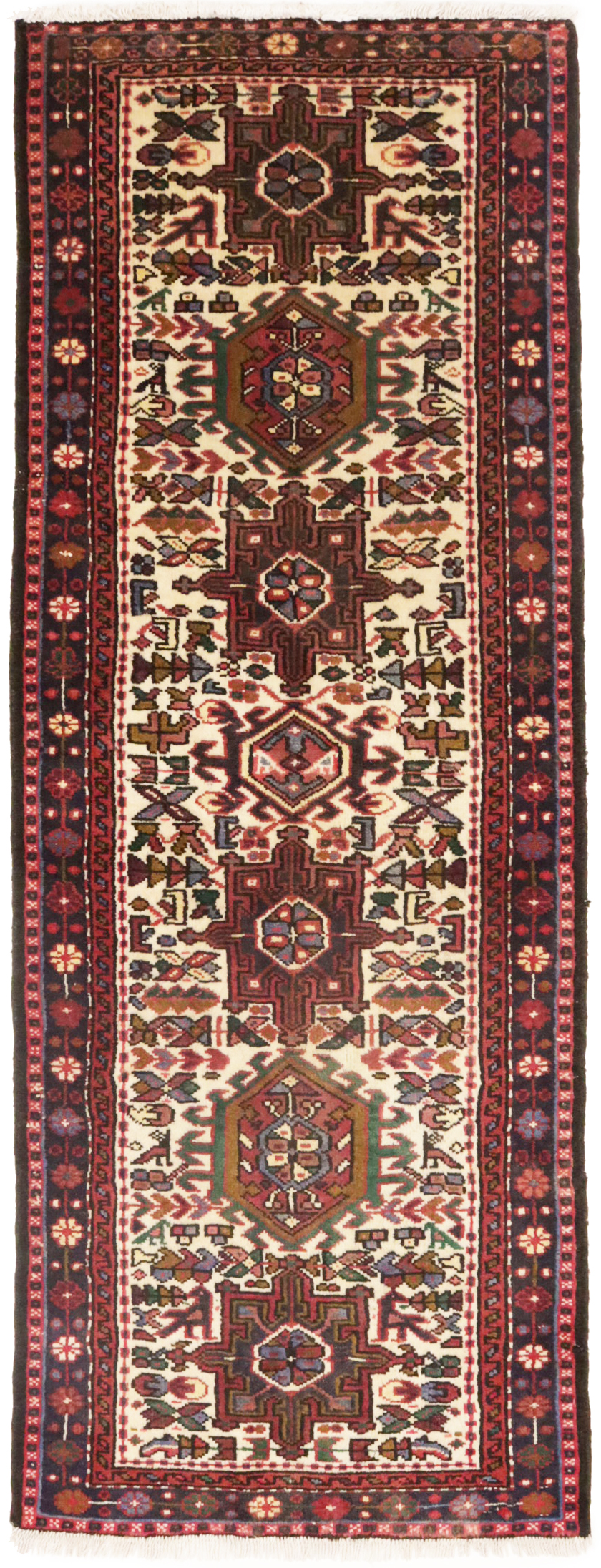 Vintage Cream Geometric 2X6 Karajeh Persian Runner Rug