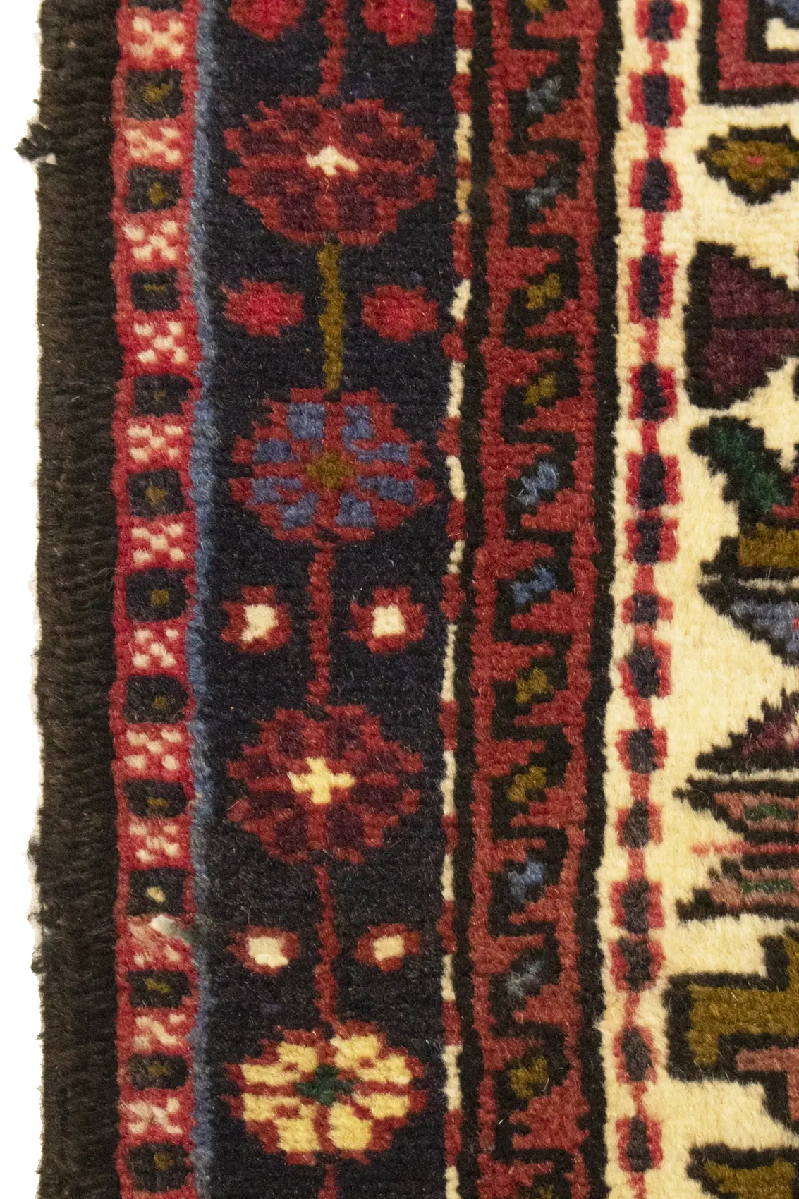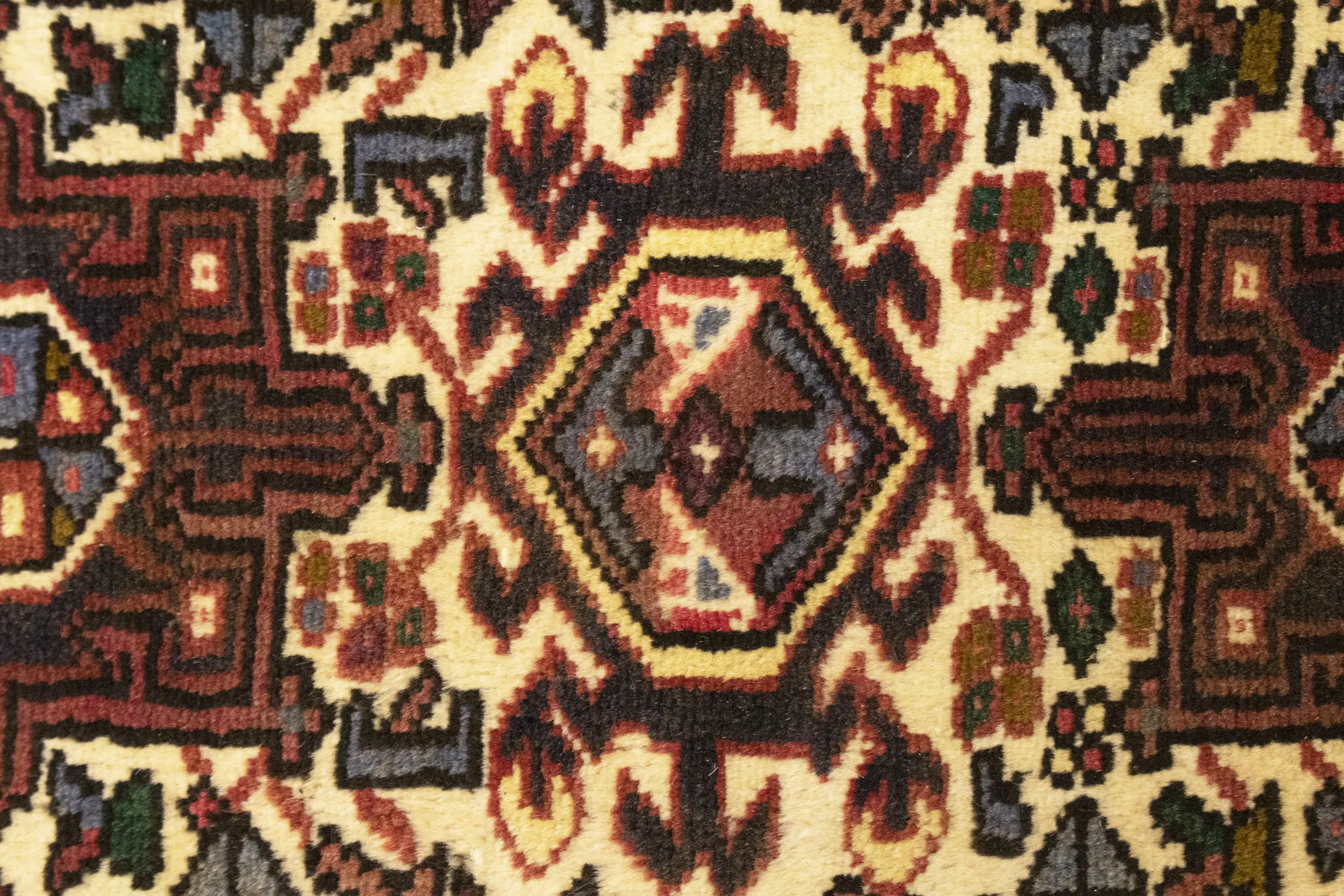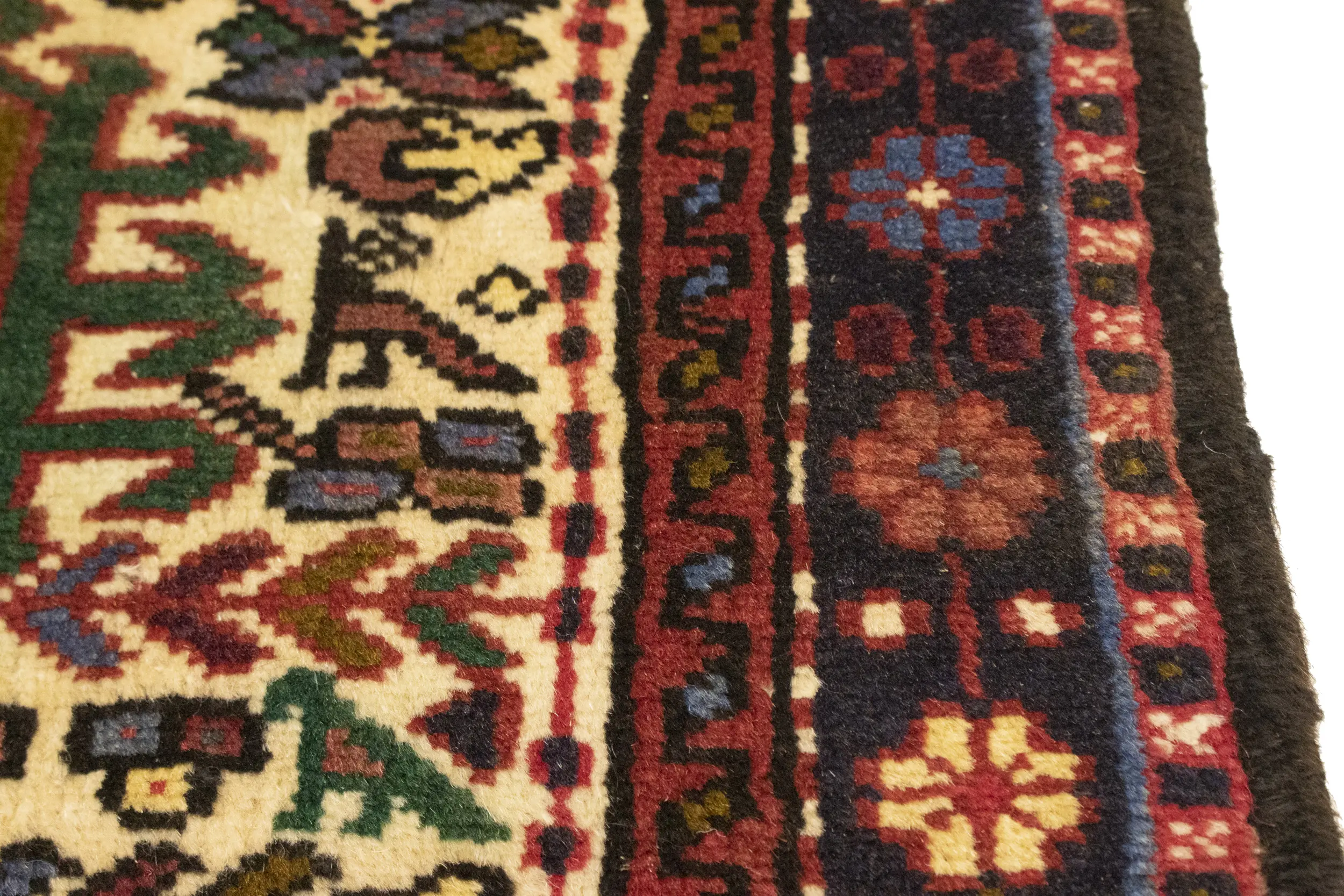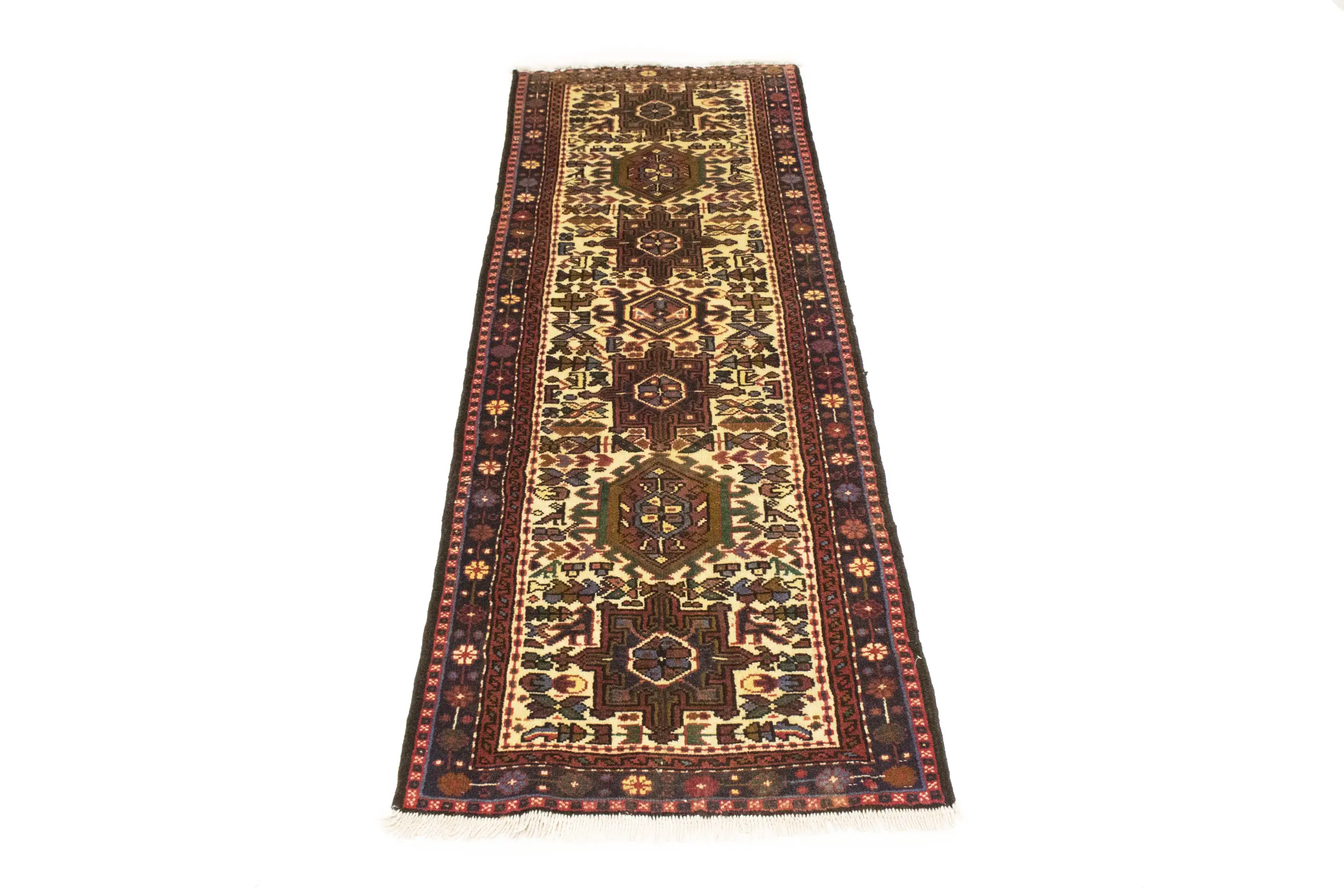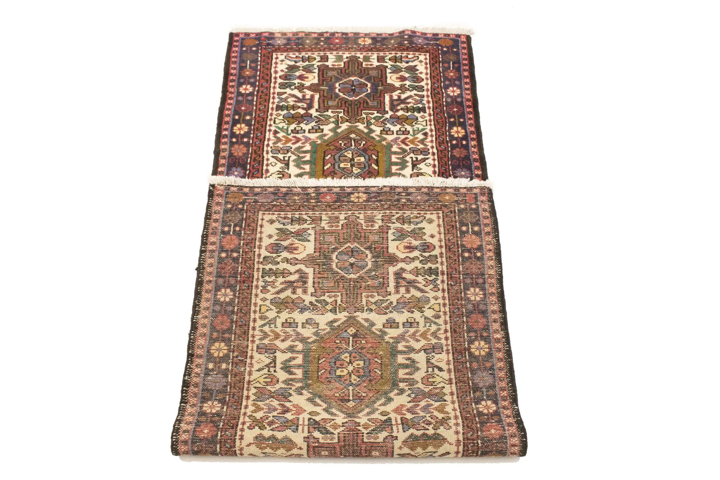 This authentic 2X6 cream vintage Persian runner was finely knotted by the hands of weavers influenced by a variety of amazing artistic designs, to recreate the aged look of the exceptional piece with a richness of color and embellished background field. What set this tribal Oriental area runner from the others are the material and dye used (wool pile and cotton foundation), knot count, antique designs, fantastic grades, and its regional historical connection: it has deep roots, from the story of the people who produced it to the meaning of the symbols and colors displayed across its canvas that have been praised for centuries. This home décor carpet will be completely cozy and inviting that never will go out of style!