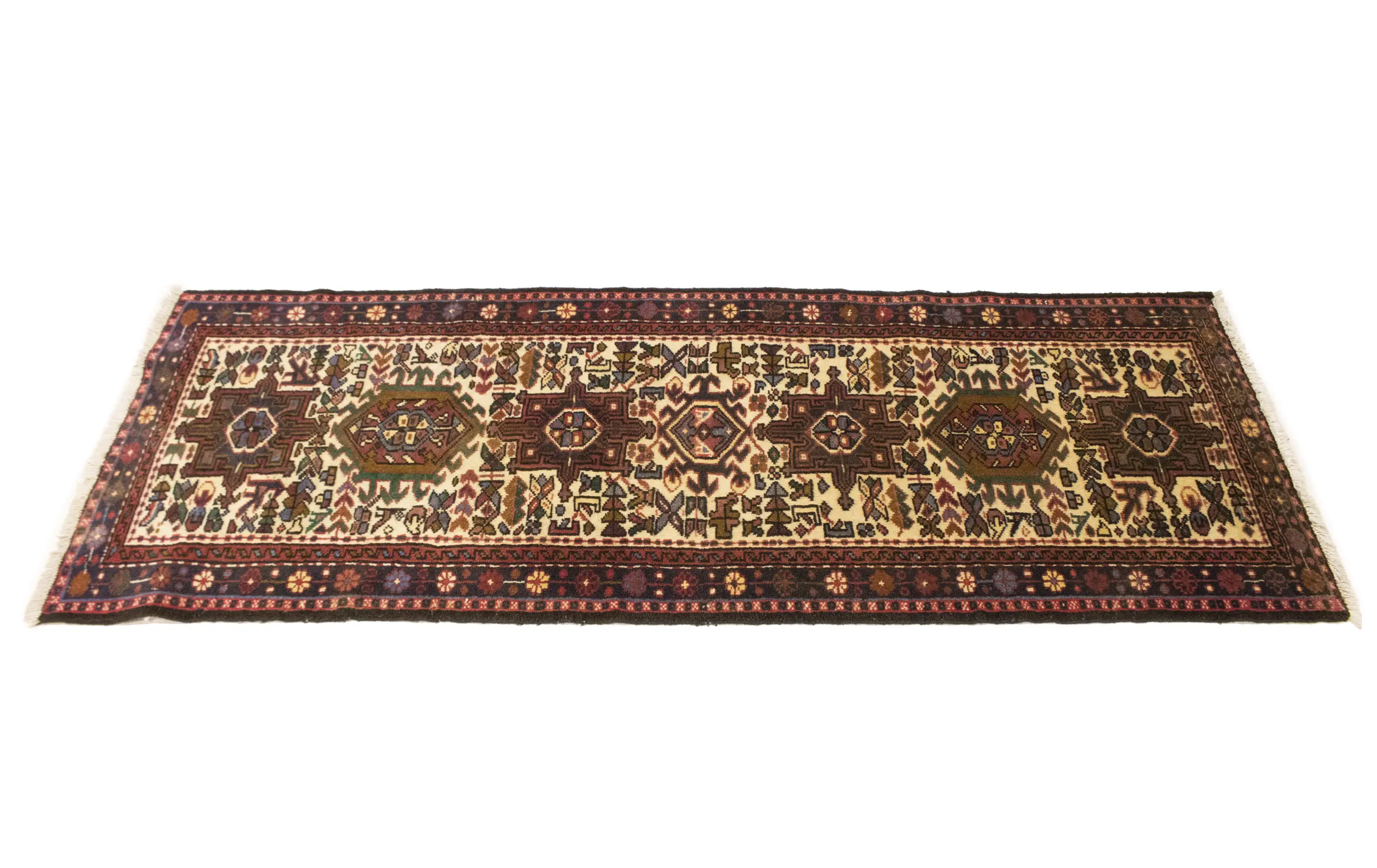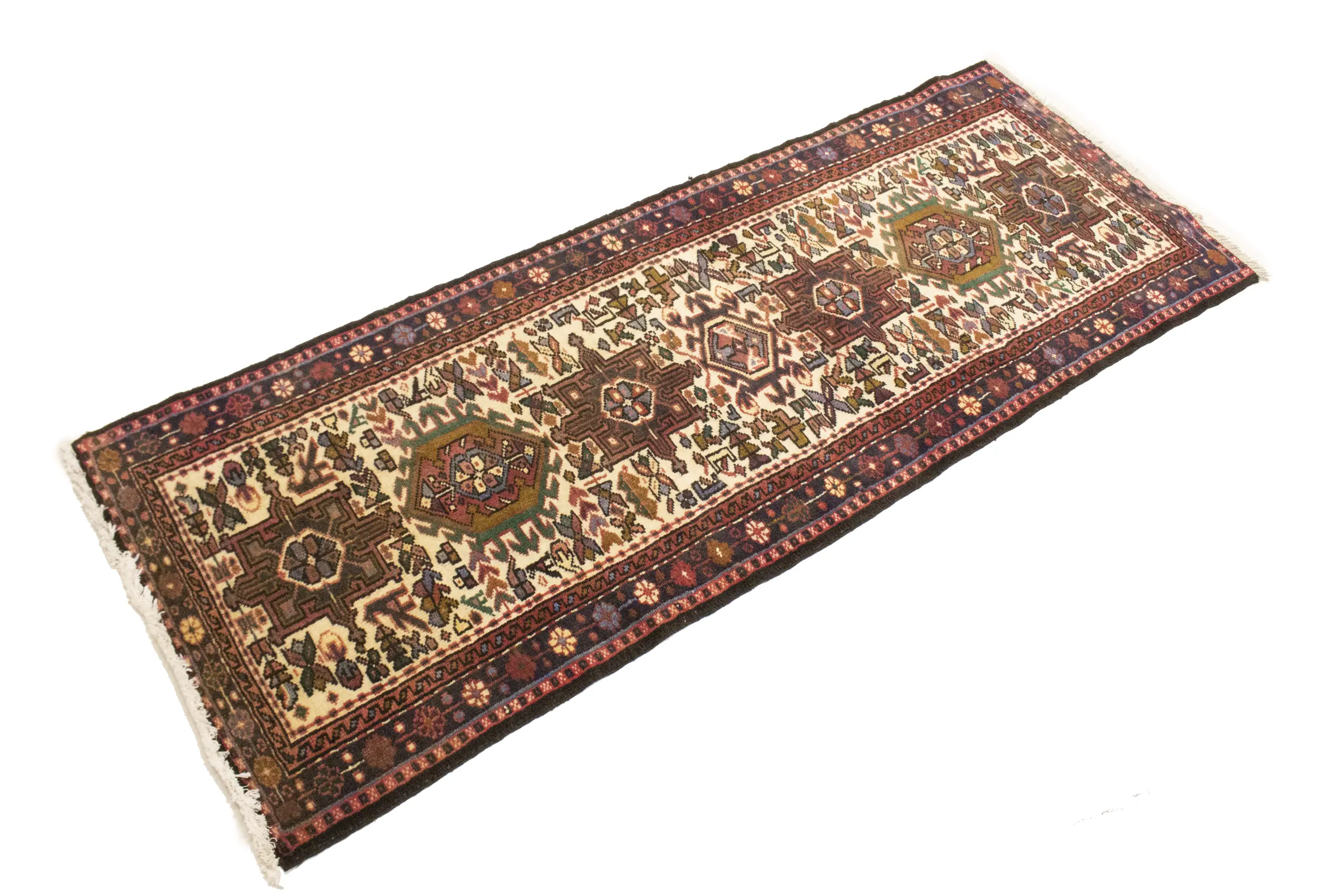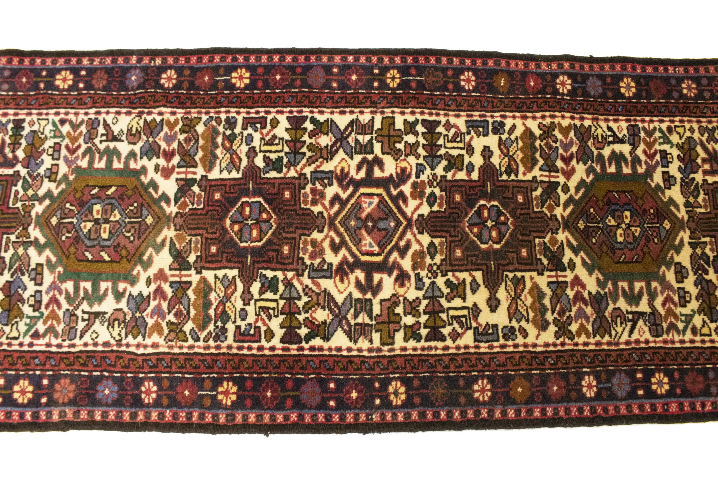 Handmade vintage 2X6 cream Persian runner made with vegetable dyes (fine wool pile and cotton foundation), exceptional knot count, and appealing ancient designs. This Oriental runner never will go out of style and would be among your most valuable treasures.