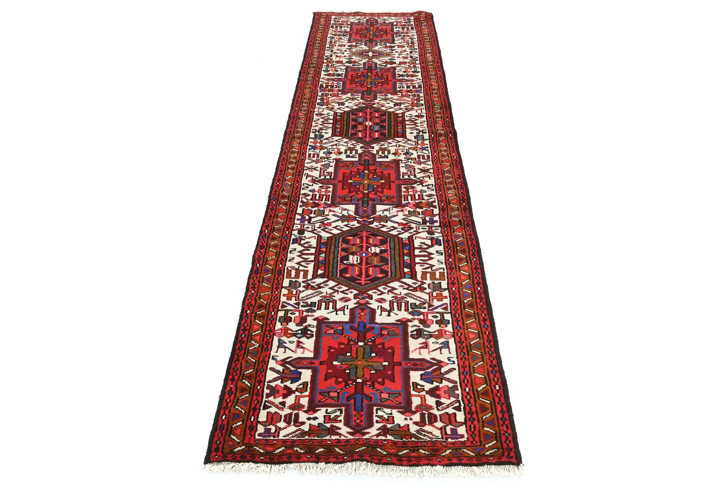 Hand Knotted vintage 2X9 cream Persian runner made with vegetable dyes (fine wool pile and cotton foundation), superior knot count, and appealing ancient designs. This Oriental runner never will go out of style and would be among your most valuable treasures.