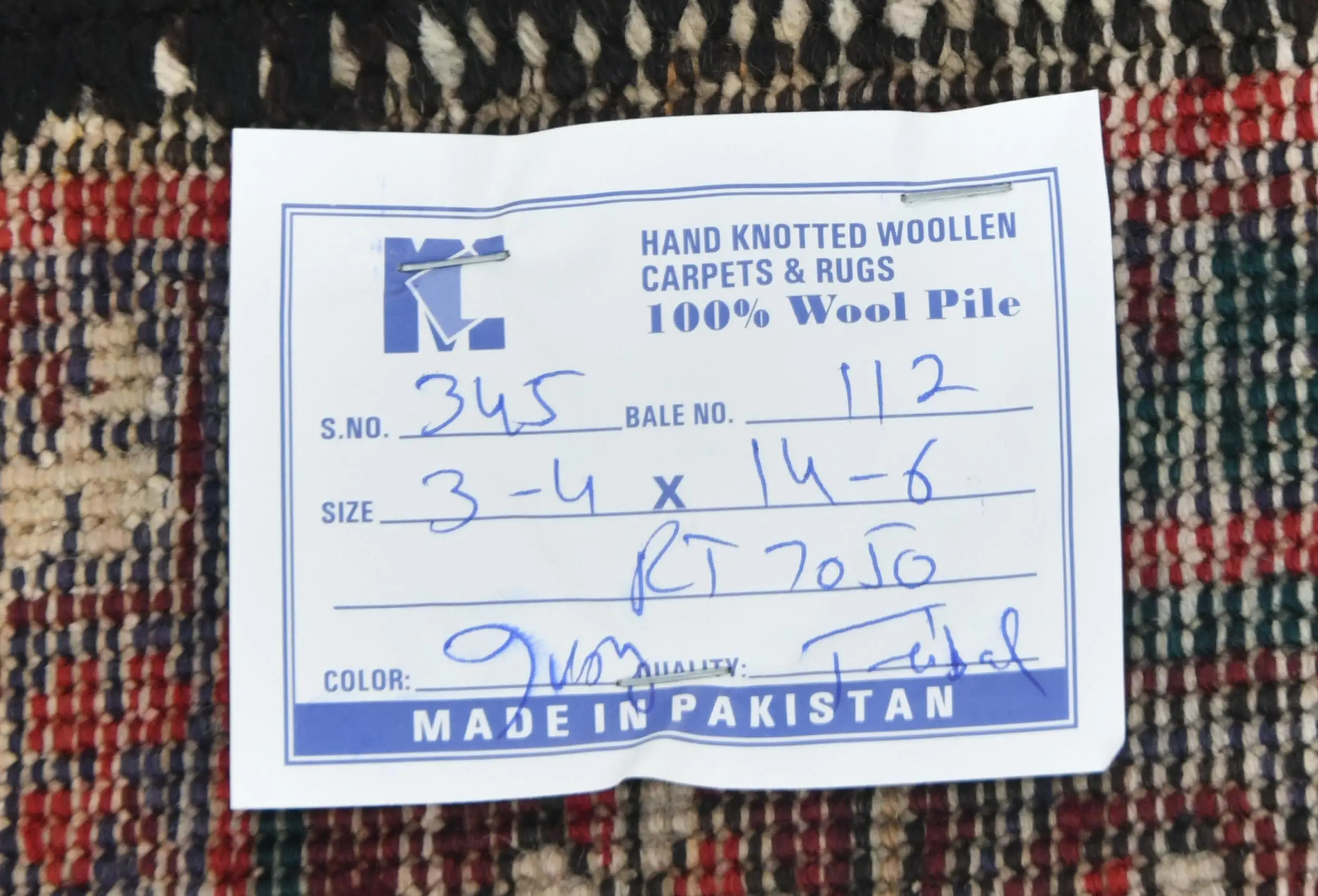 Vintage Cream Geometric 3'4X14'6 Karajeh Persian Runner Rug