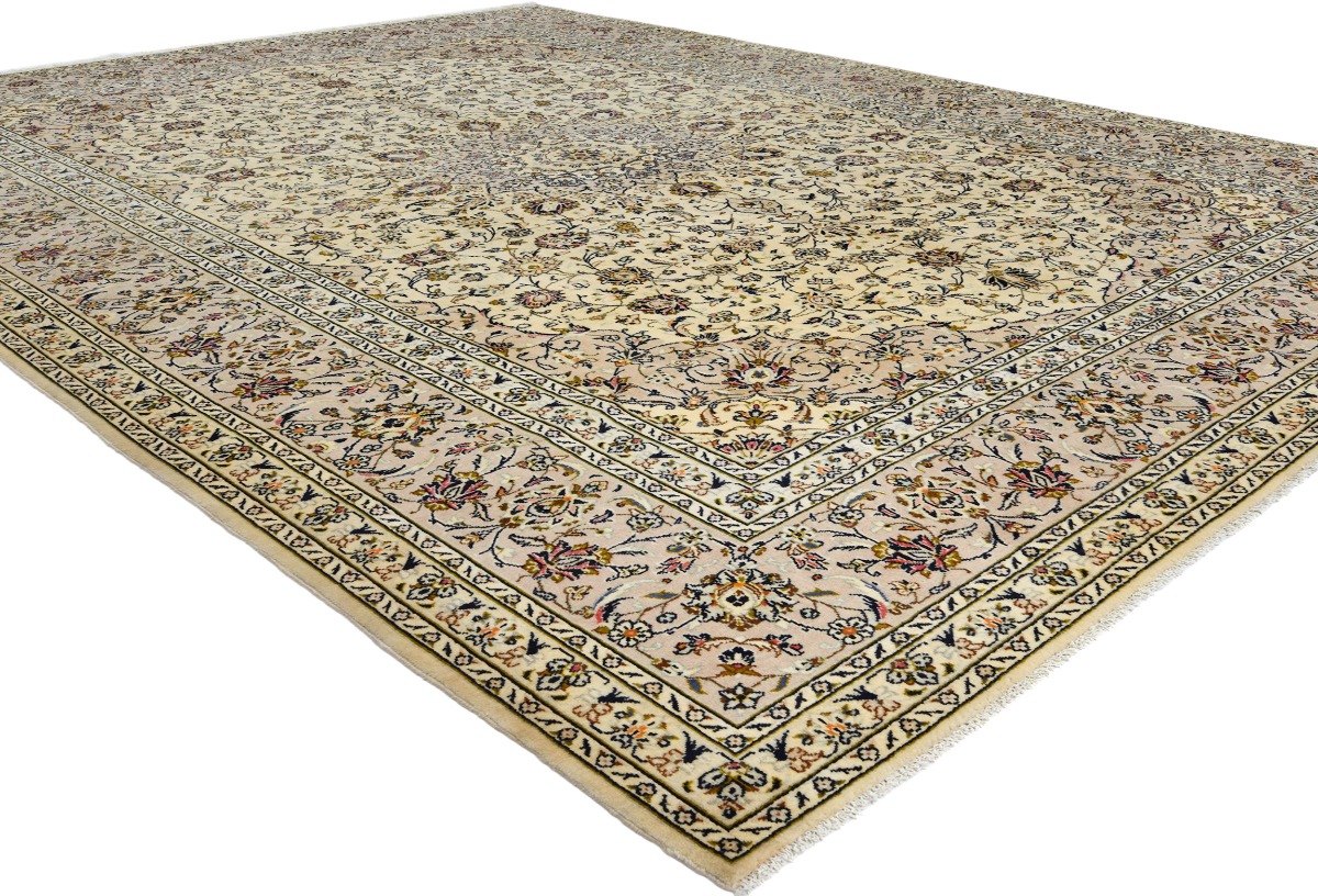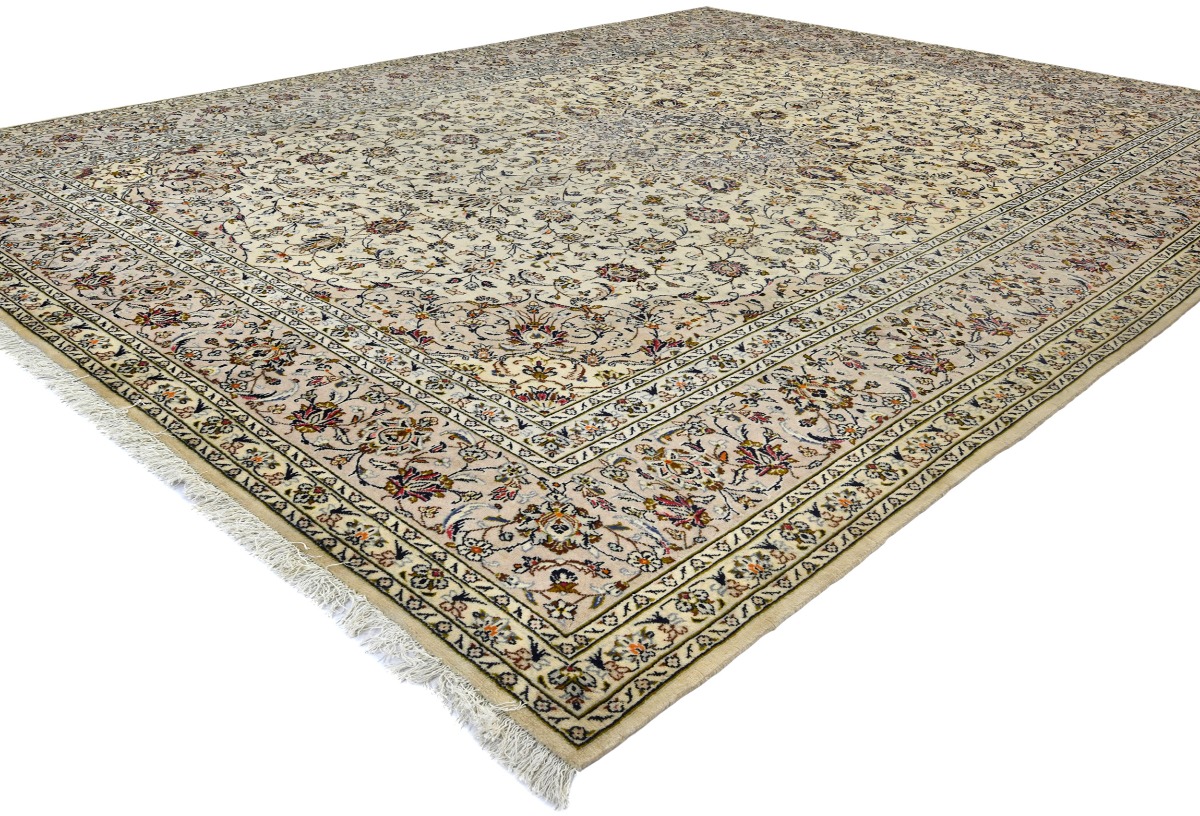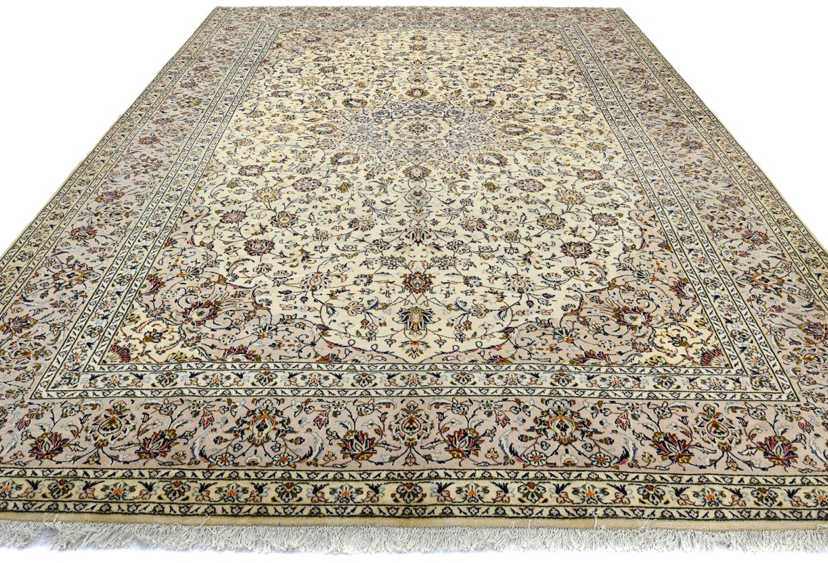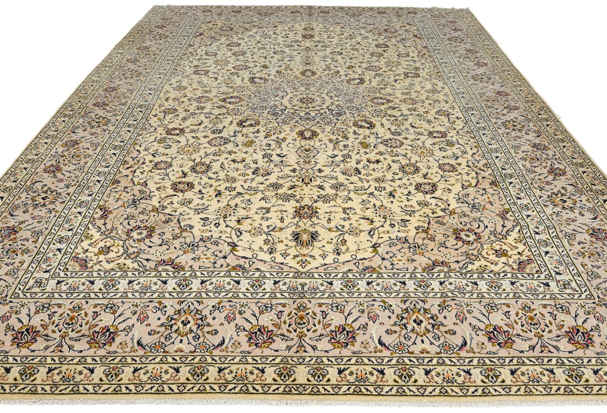 Vintage Cream Traditional 10X13 Kashan Persian Rug